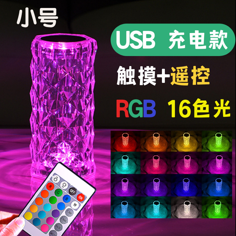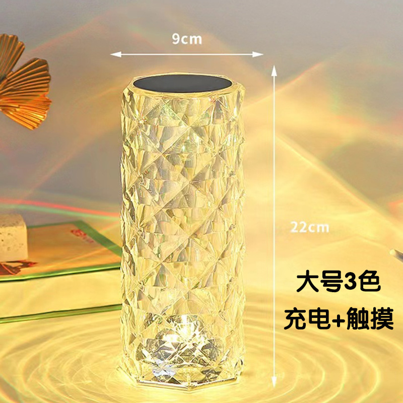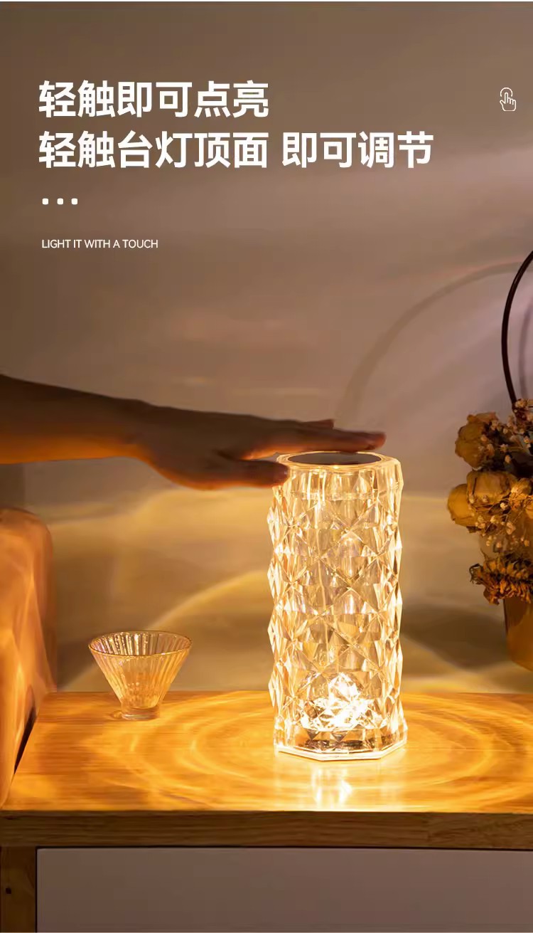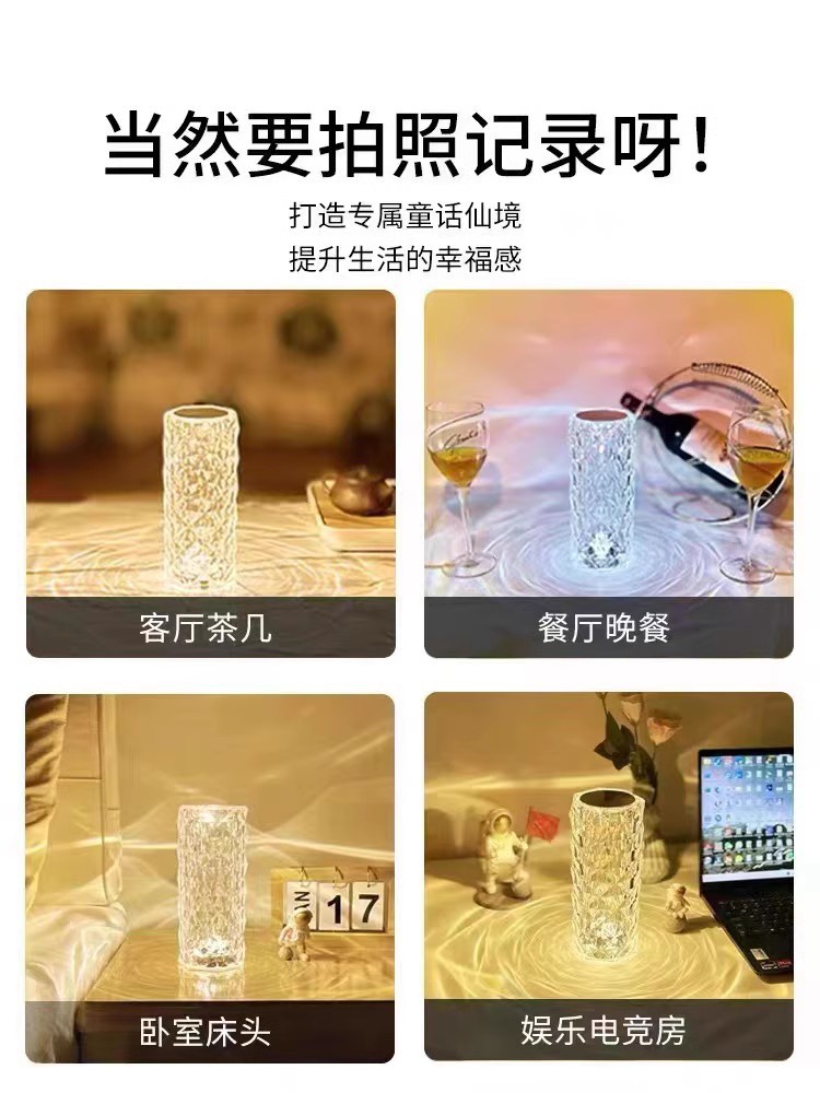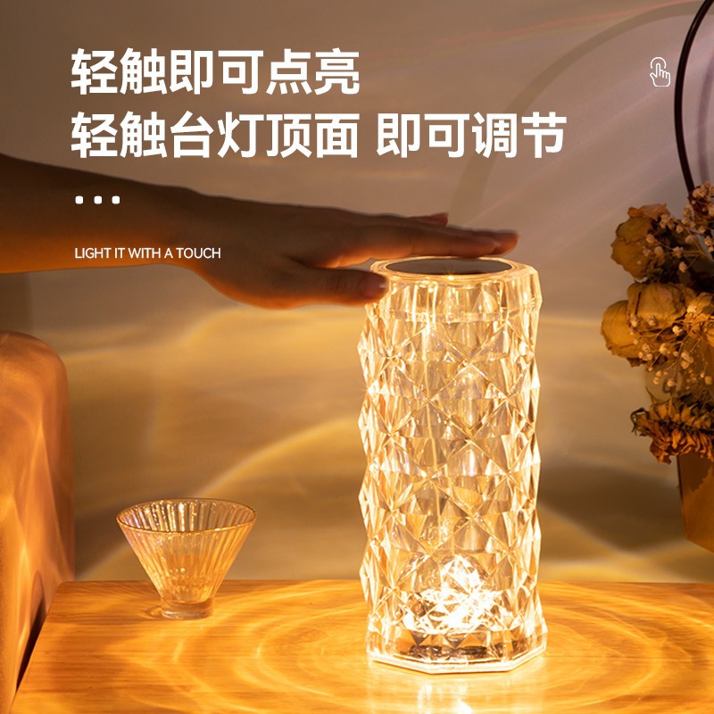 水晶玫瑰花氛围台灯网红ins风卧室床头LED触摸小夜灯浪漫情调礼物