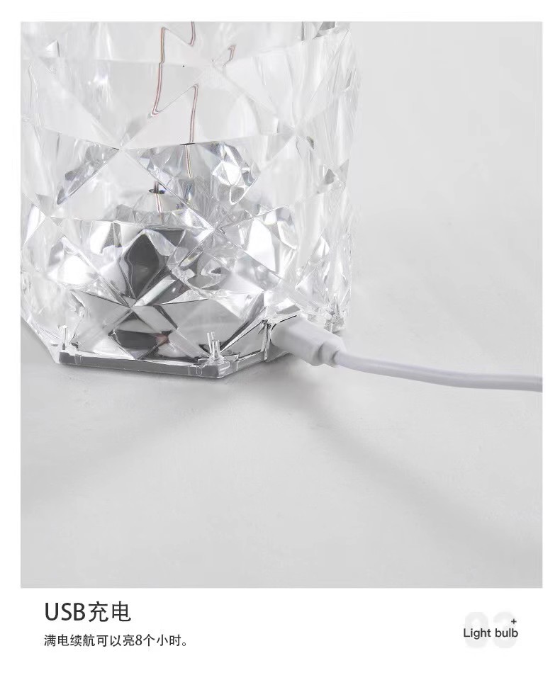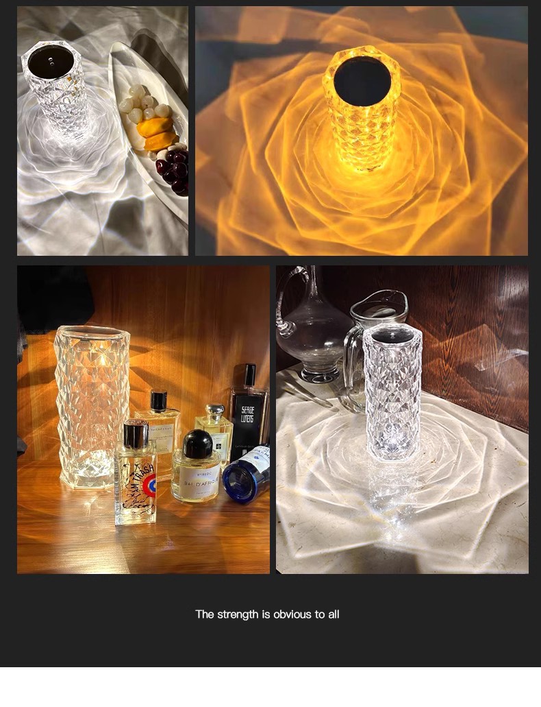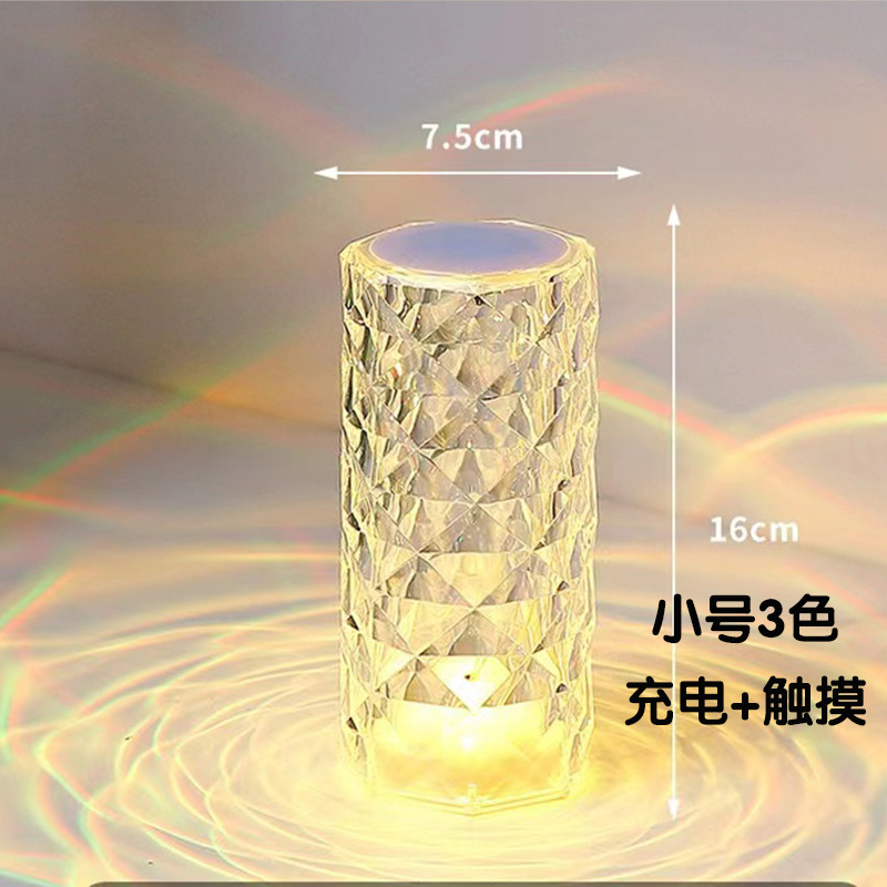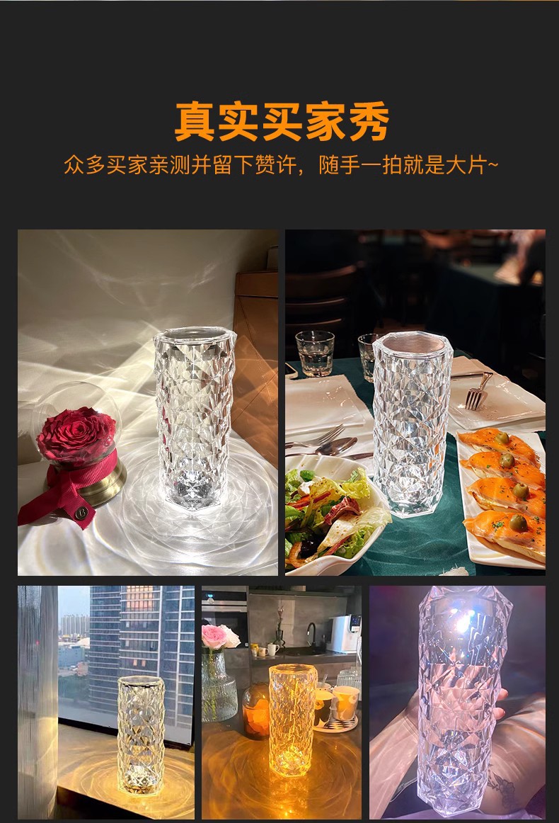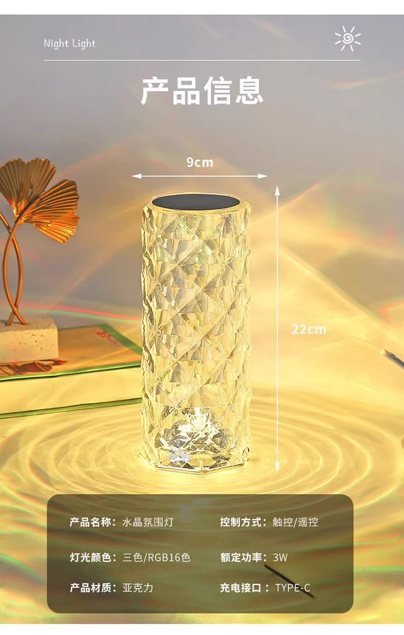 水晶玫瑰花氛围台灯网红ins风卧室床头LED触摸小夜灯浪漫情调礼物