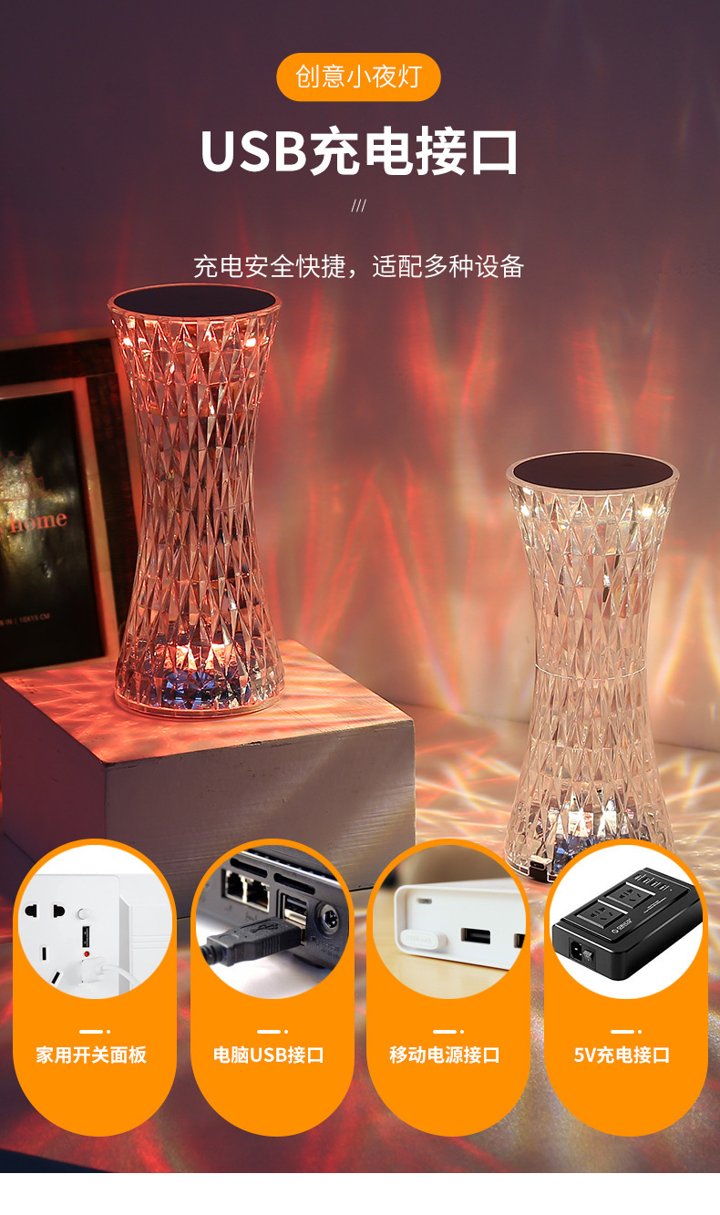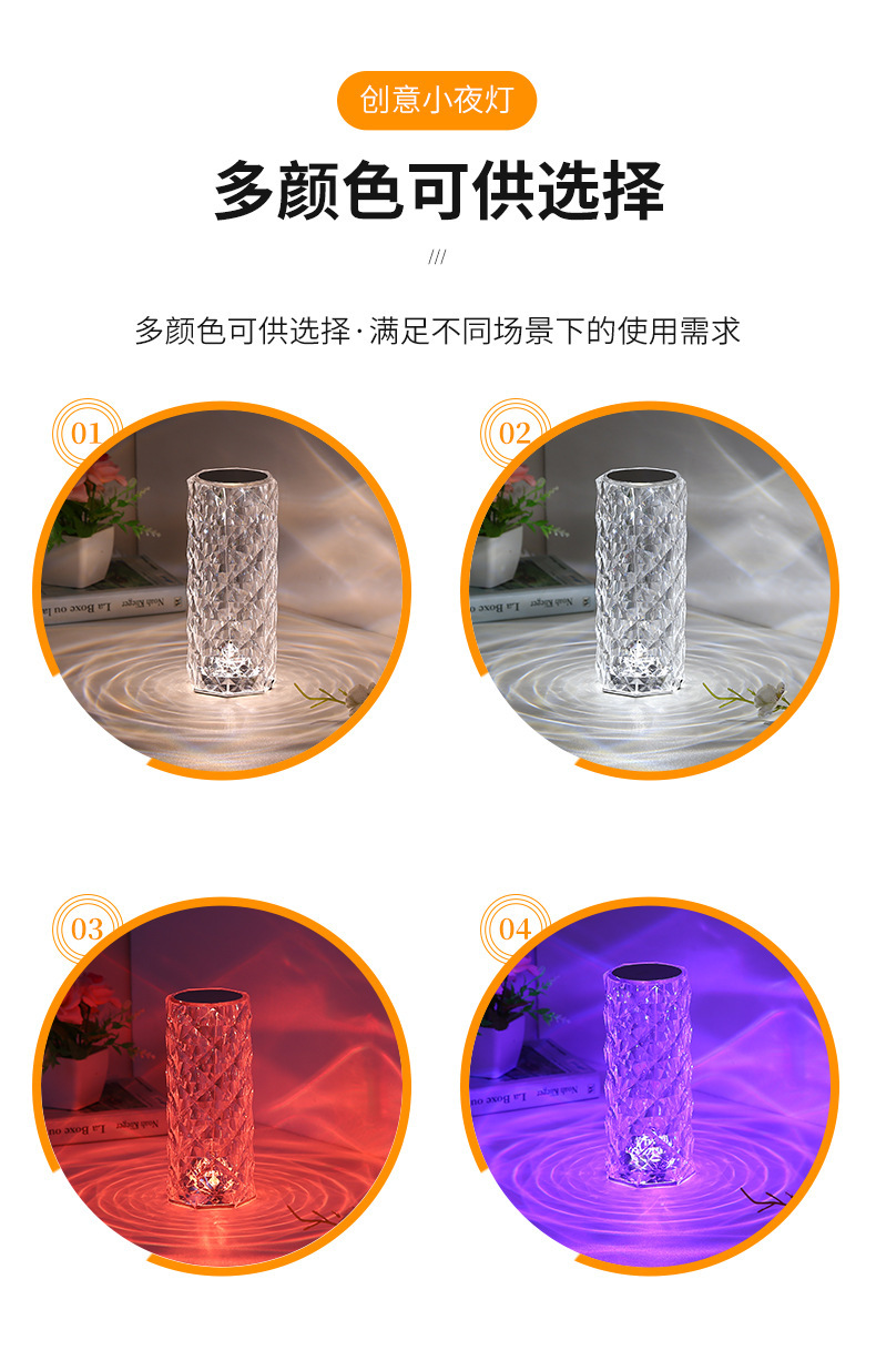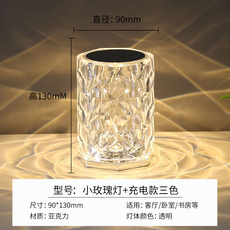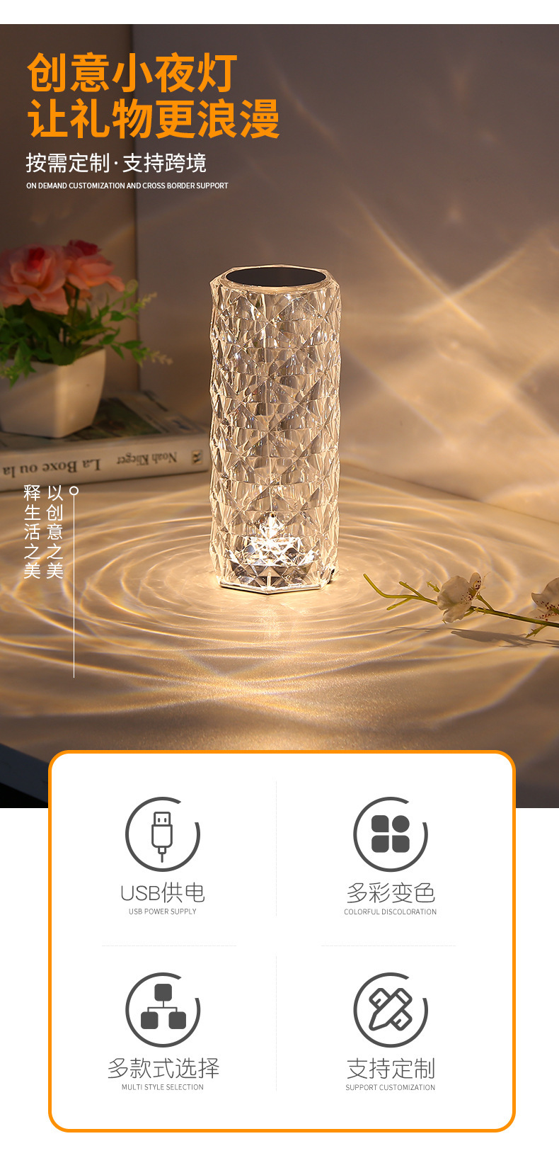 ins风网红情调水晶浪漫玫瑰花氛围台灯充电卧室睡眠床头小夜 灯具