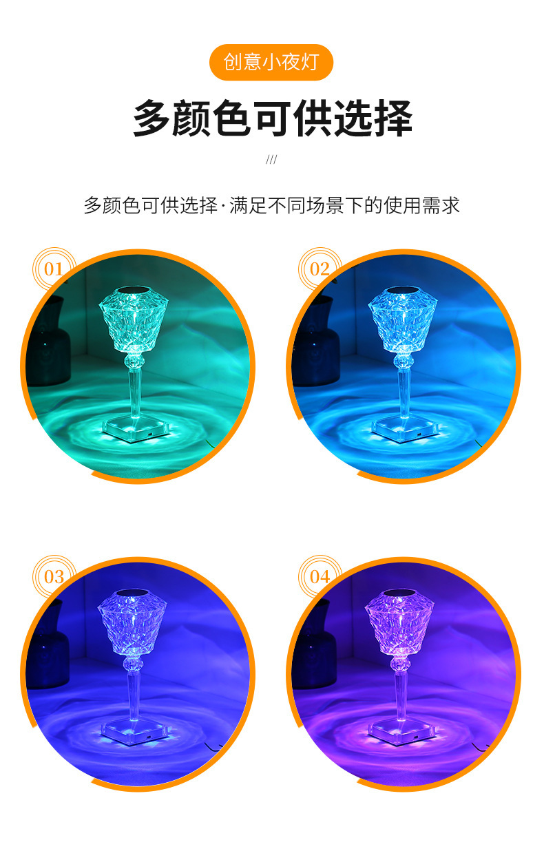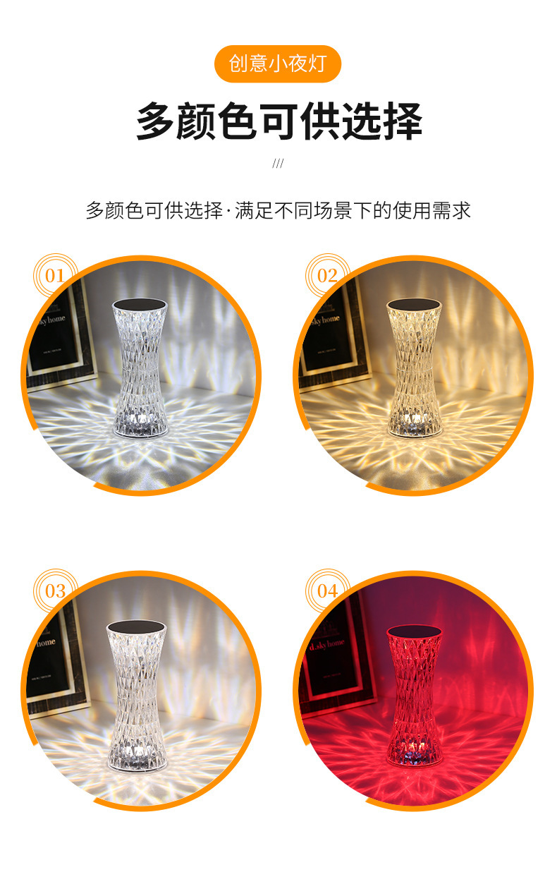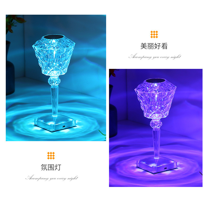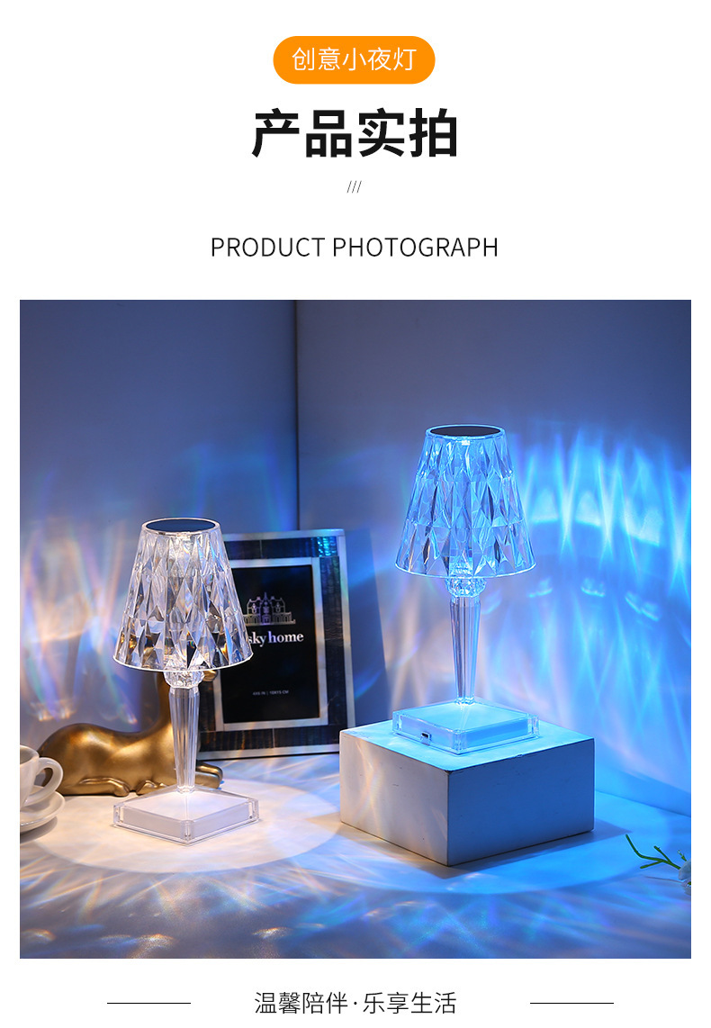 ins风网红情调水晶浪漫玫瑰花氛围台灯充电卧室睡眠床头小夜 灯具