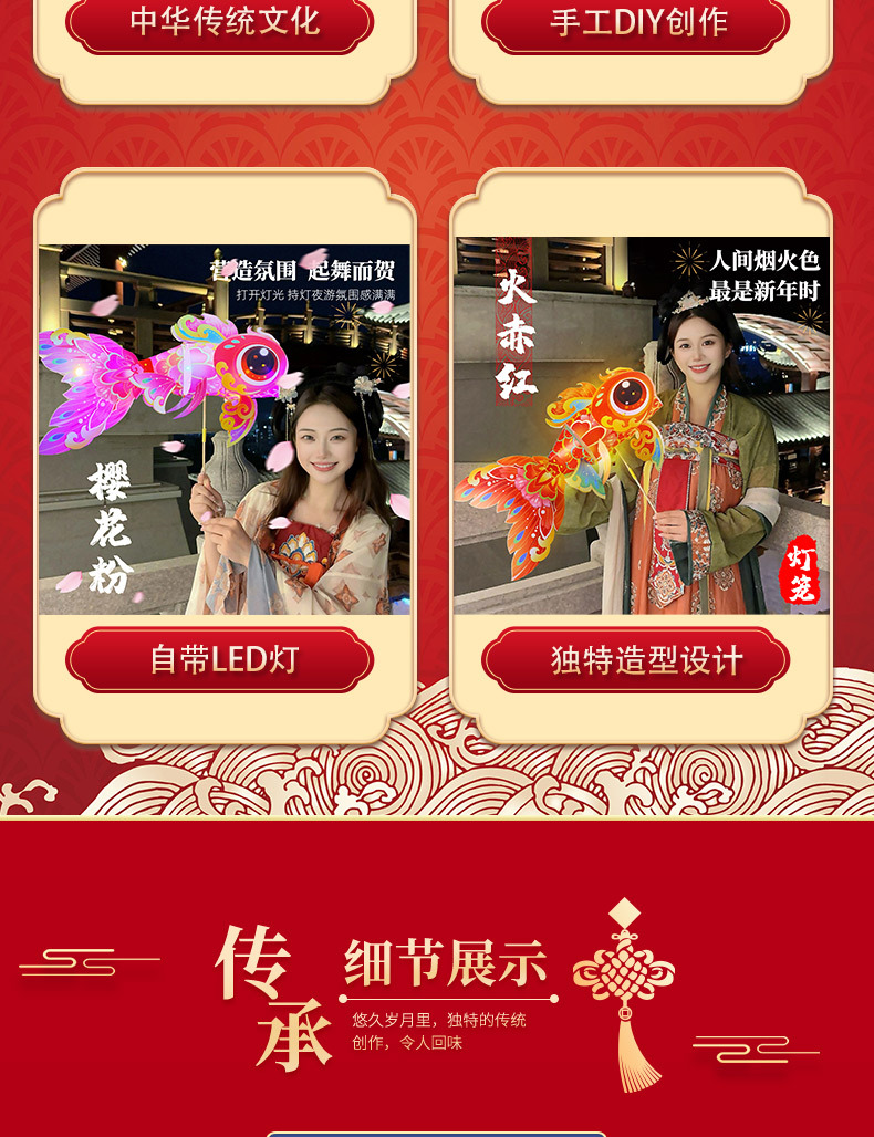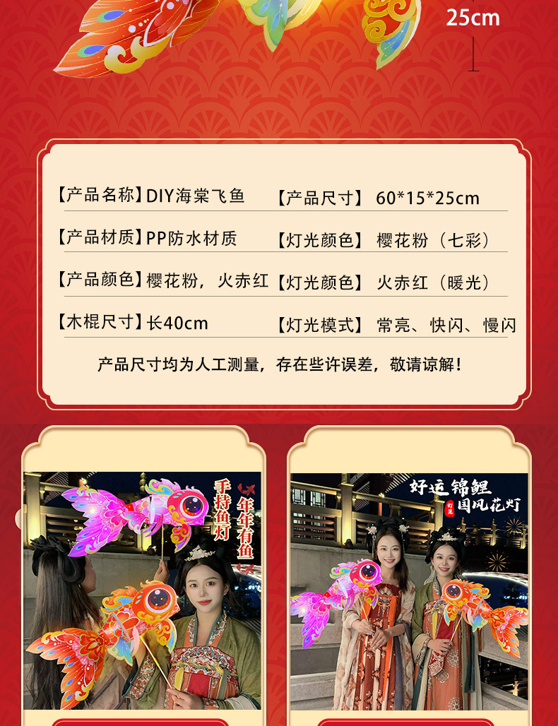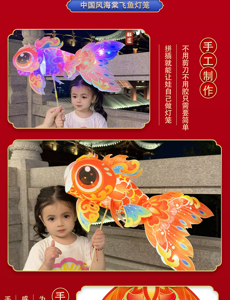 手工花灯DIY海棠飞鱼灯元宵节灯笼儿童手提春节新年灯笼蛇年摆摊