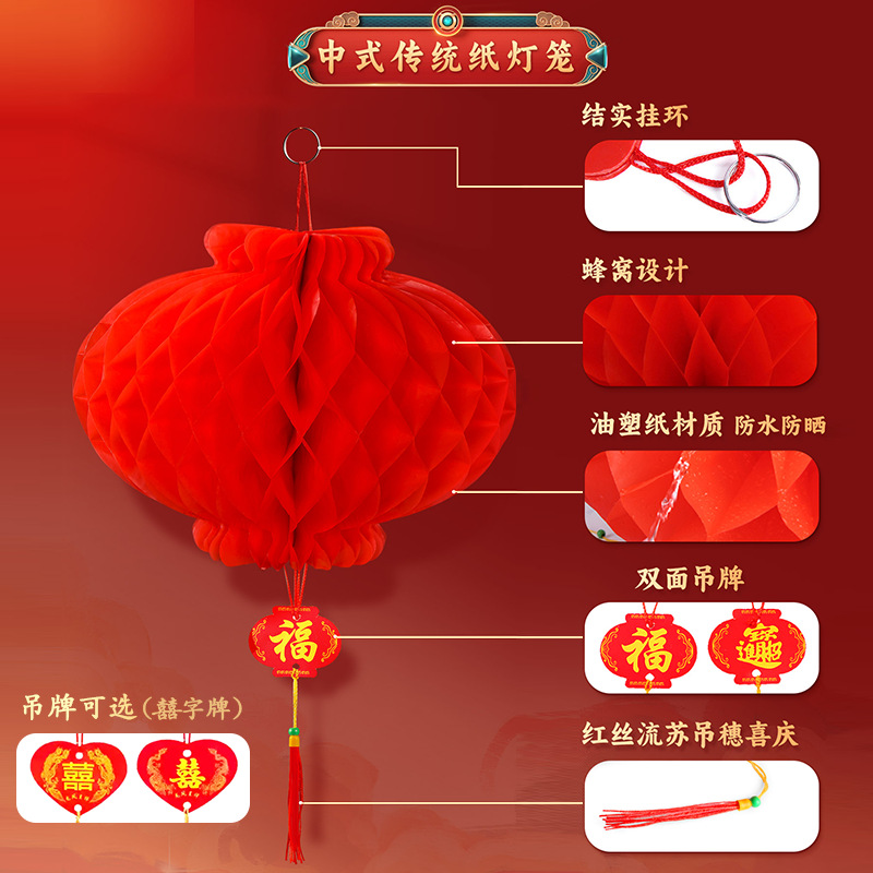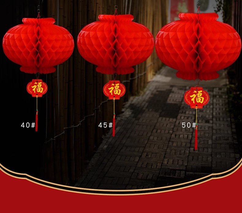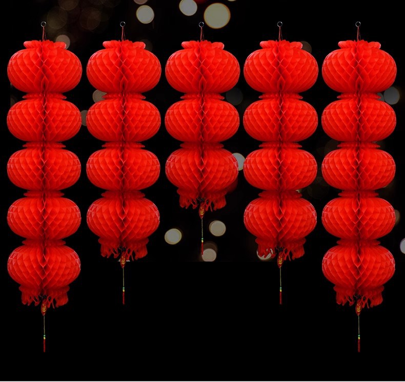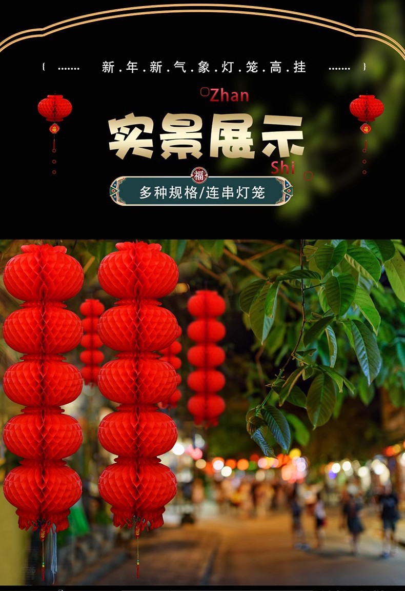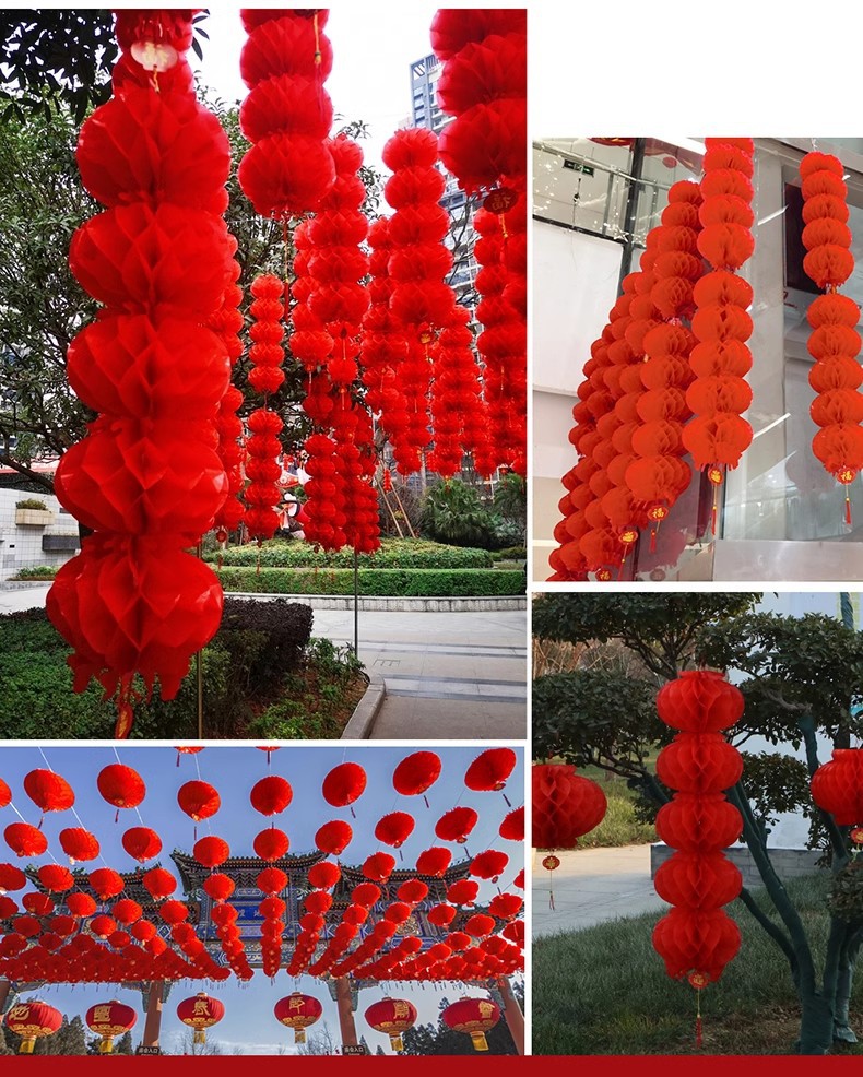 新年小纸灯笼装饰结婚小灯笼挂饰树上院子户外婚庆开业节日蜂窝球