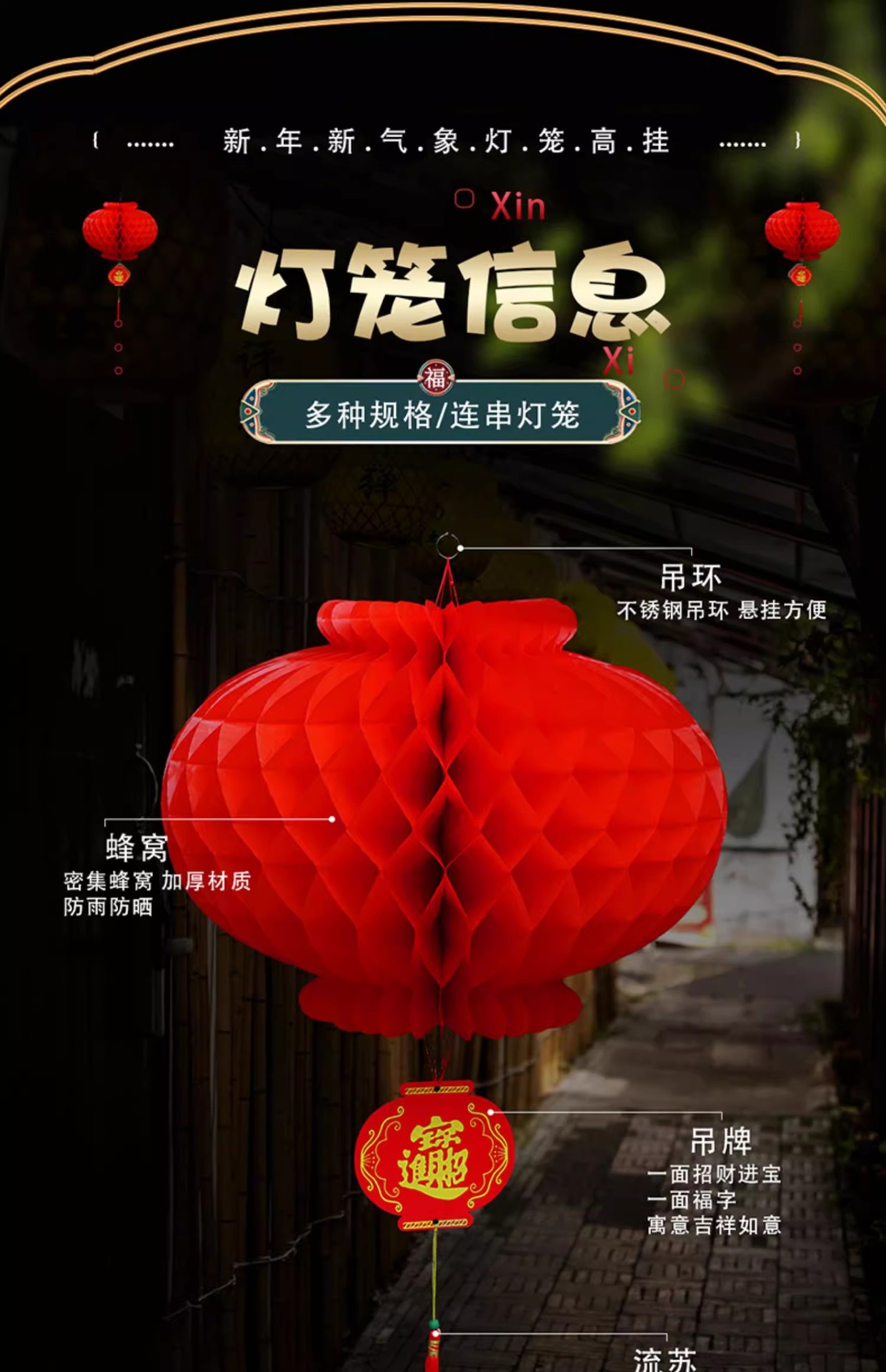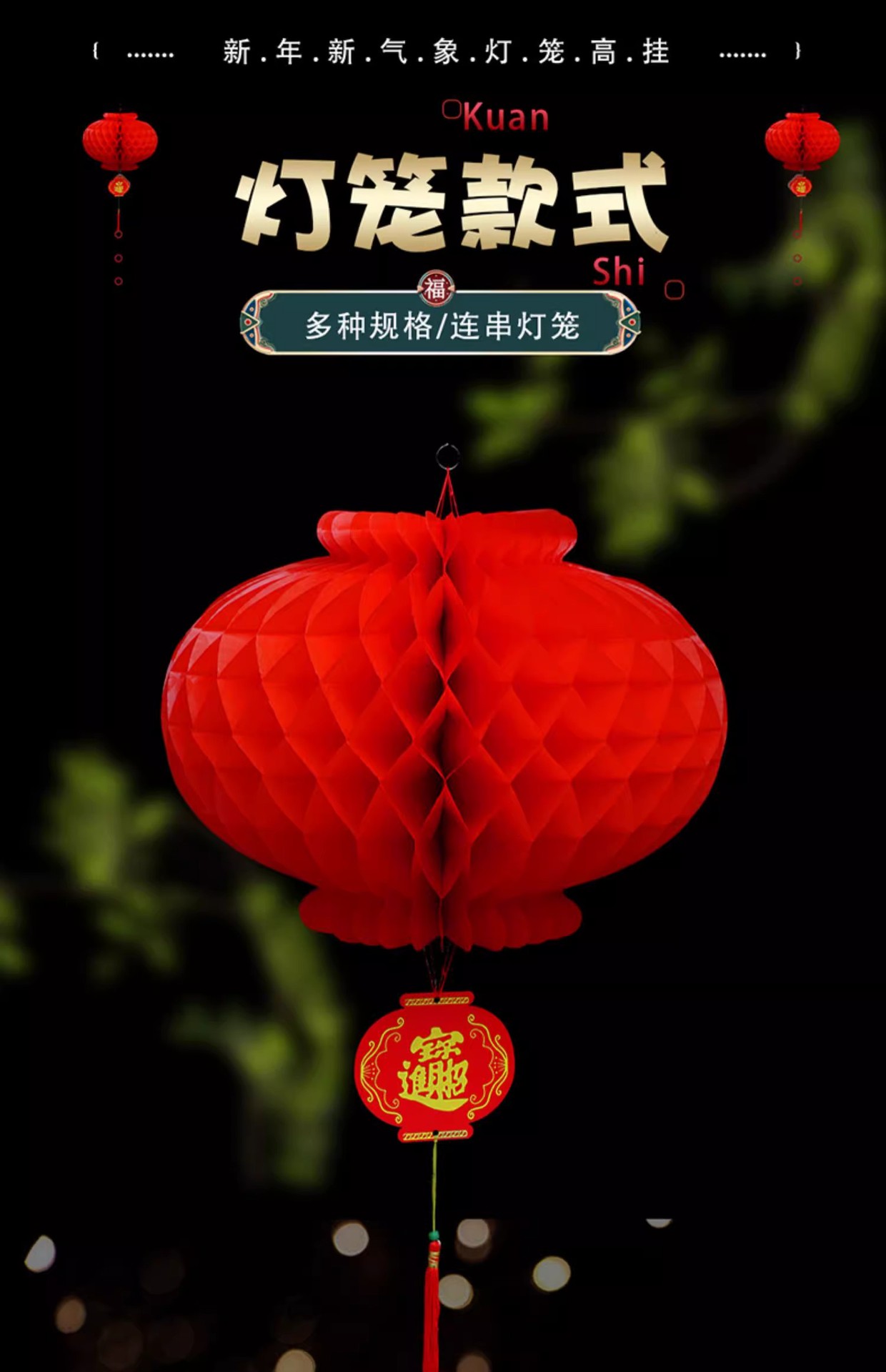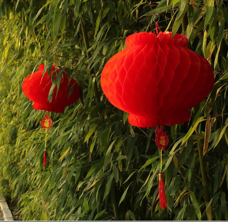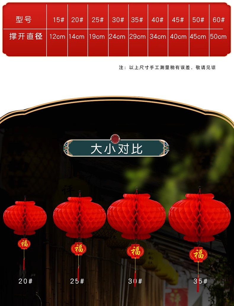 新年小纸灯笼装饰结婚小灯笼挂饰树上院子户外婚庆开业节日蜂窝球