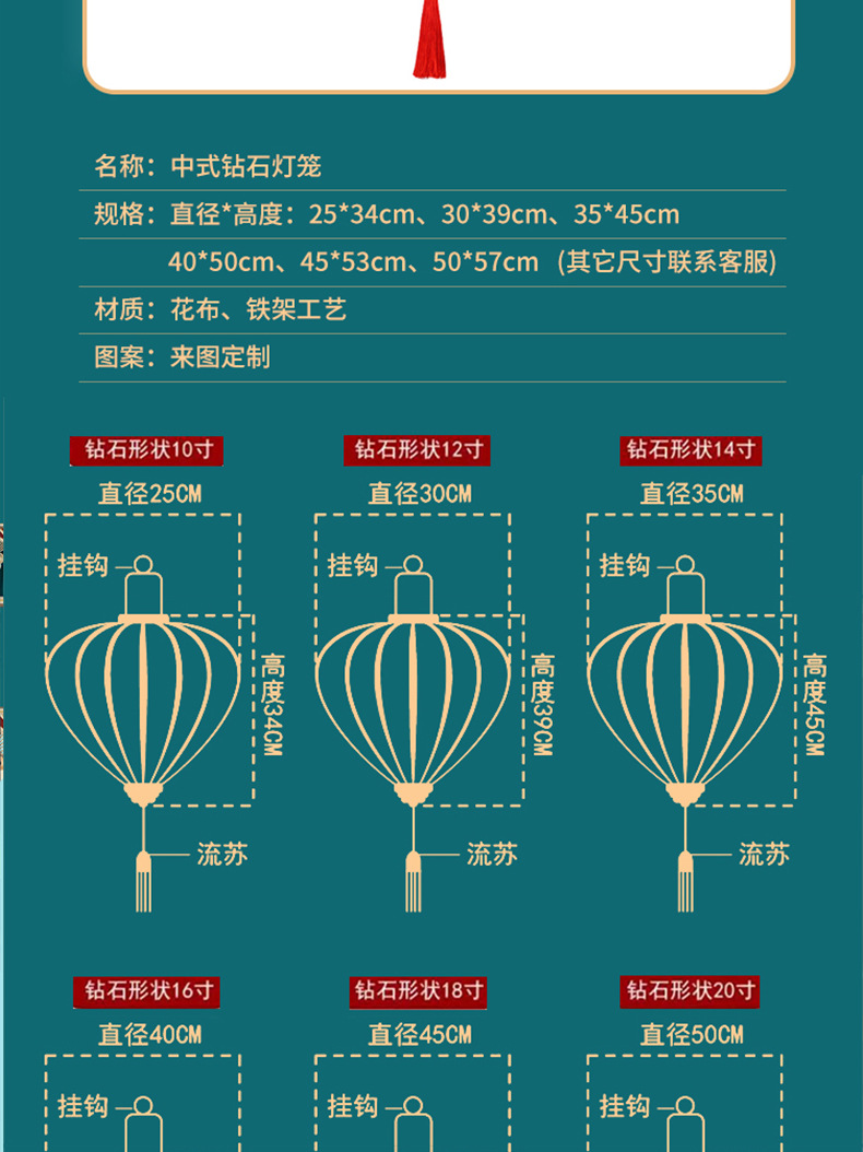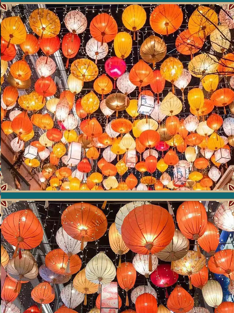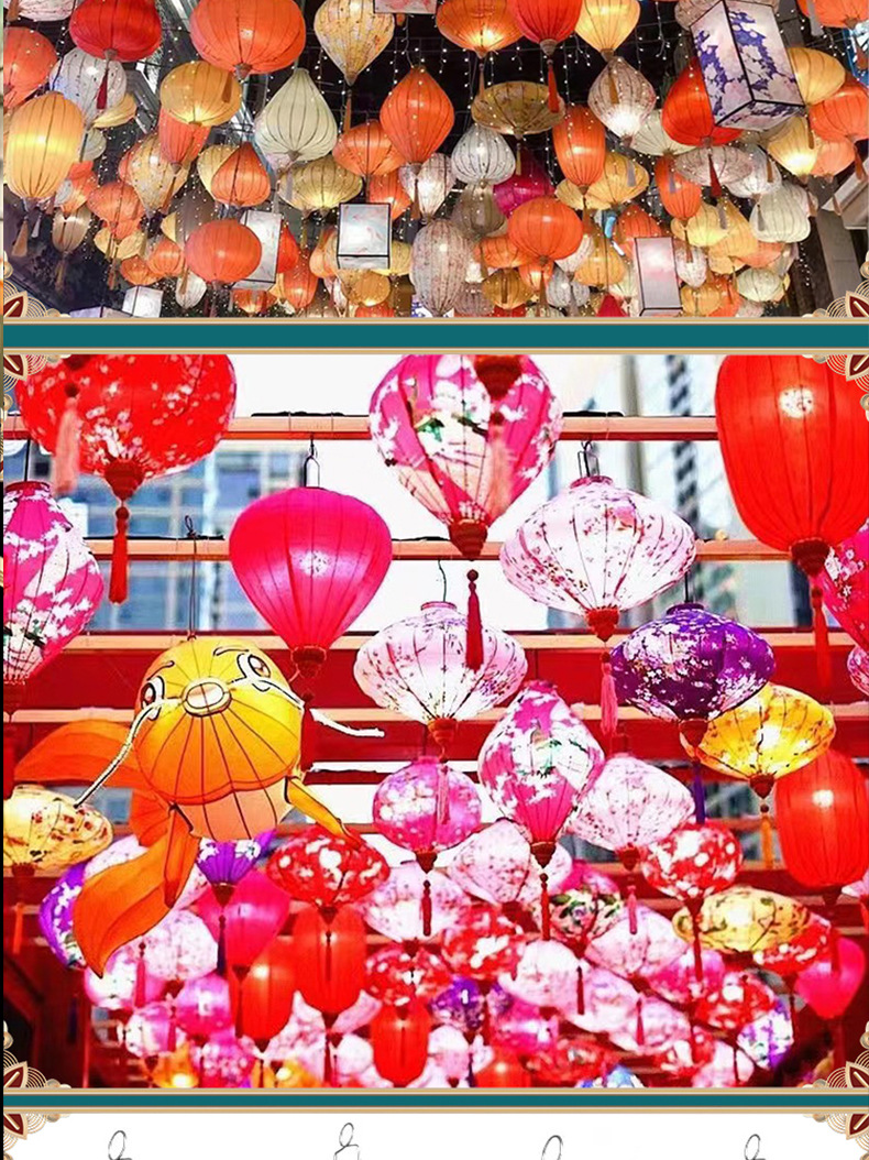 欢度中秋国庆越南钻石绸缎防水灯笼户外倒钻中式景区网红夜景装饰