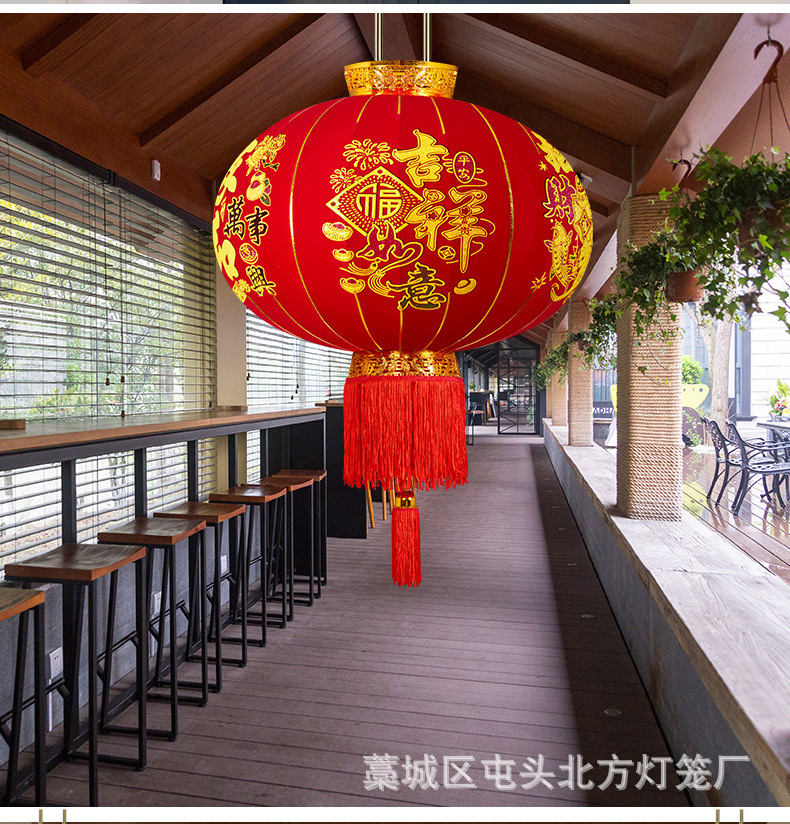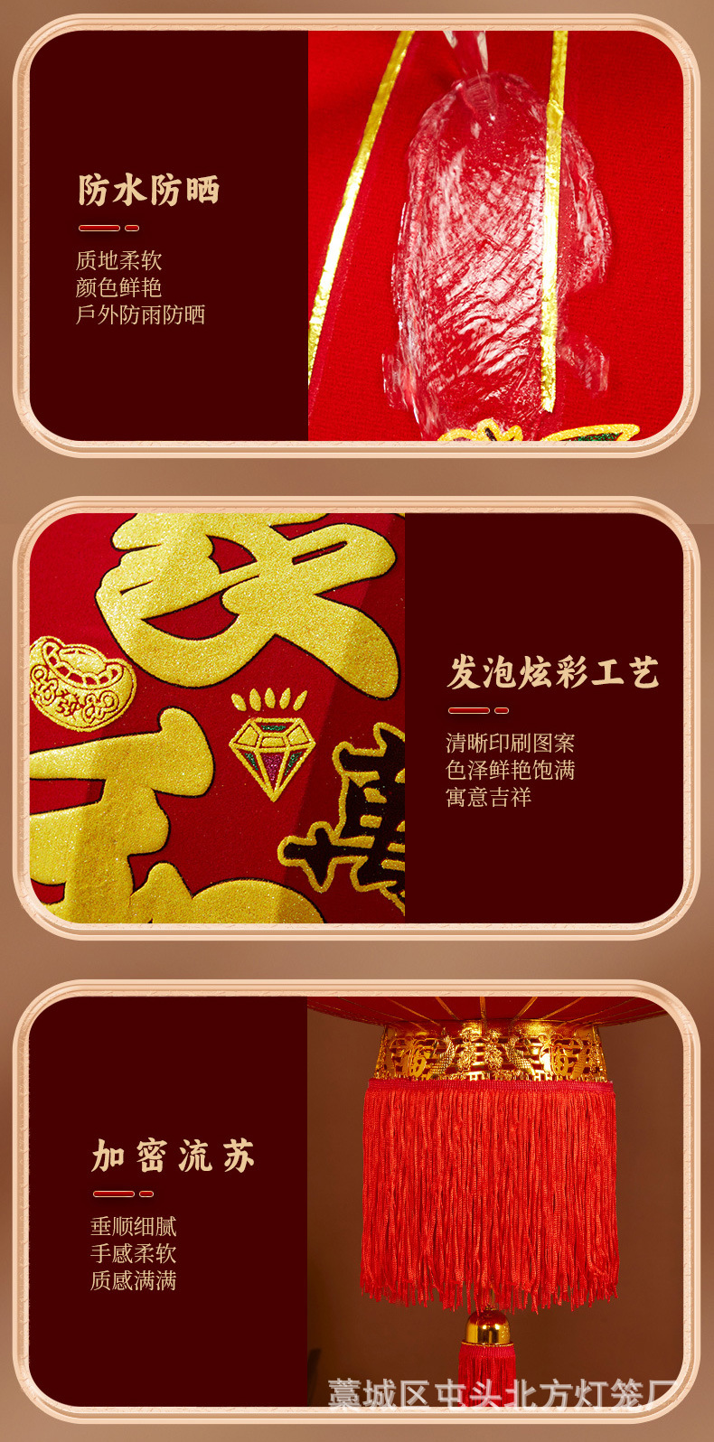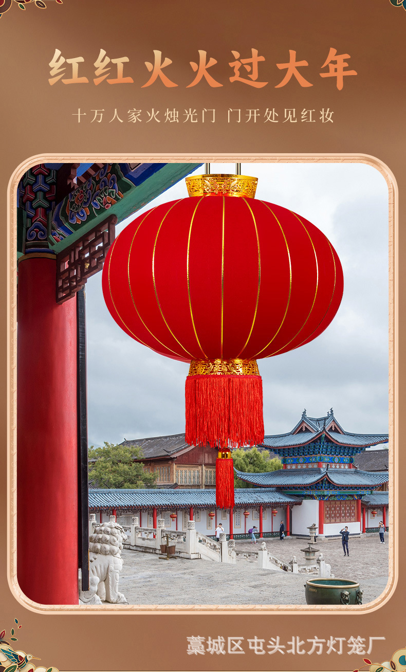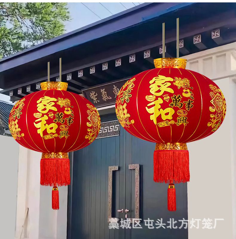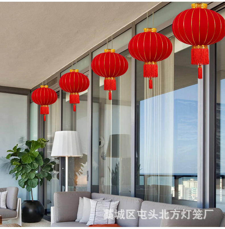 厂家批发新款伞杆高档植绒布红灯笼喜庆灯笼新年春节长杆植绒灯笼