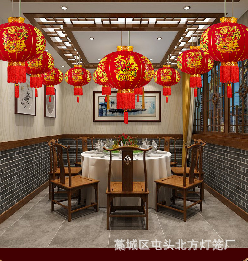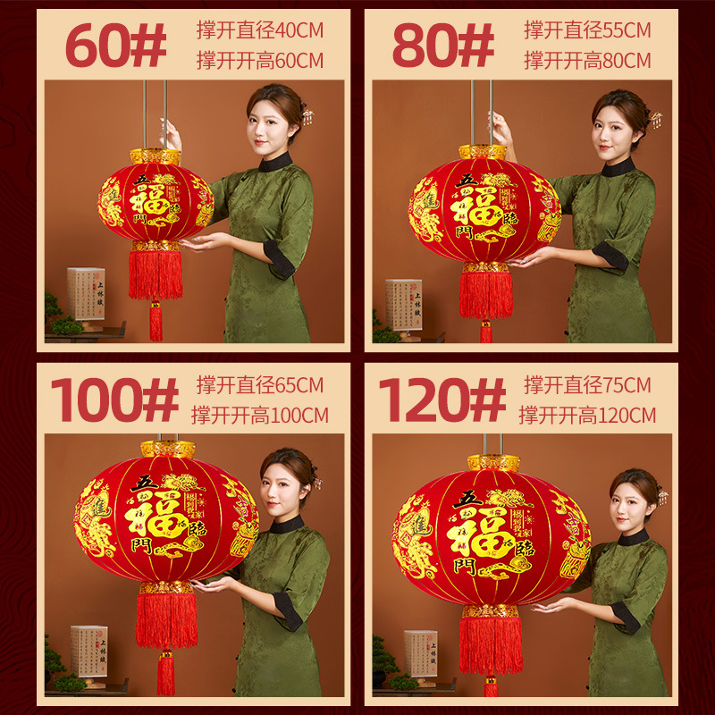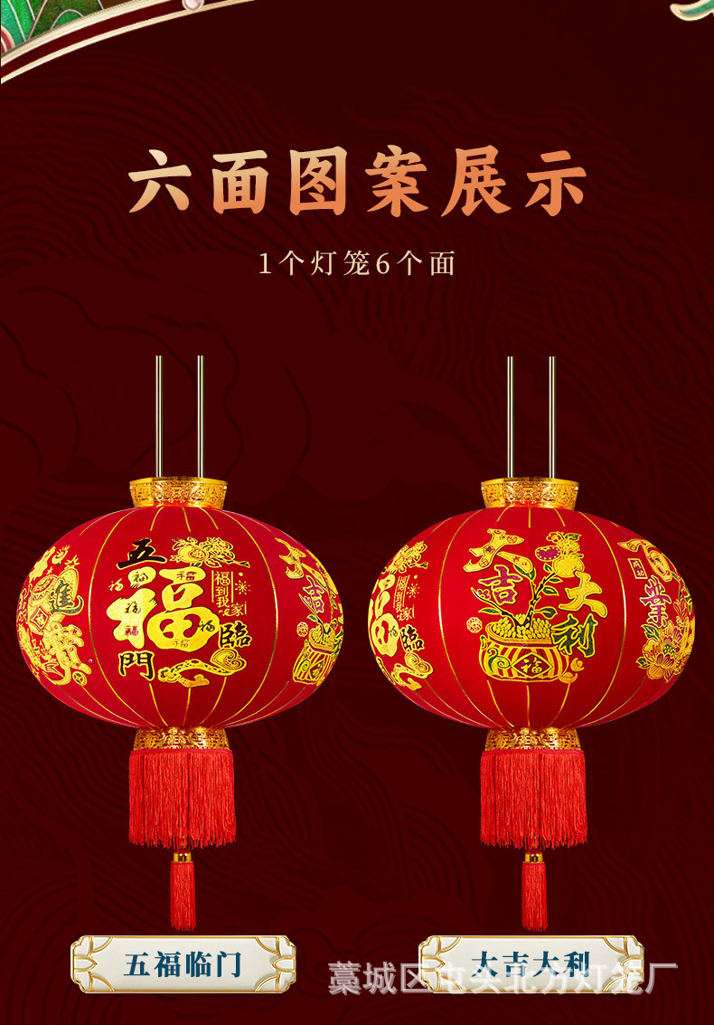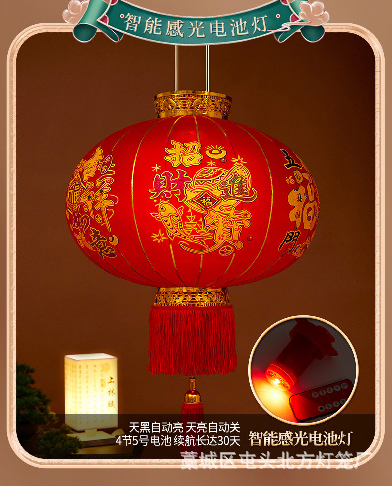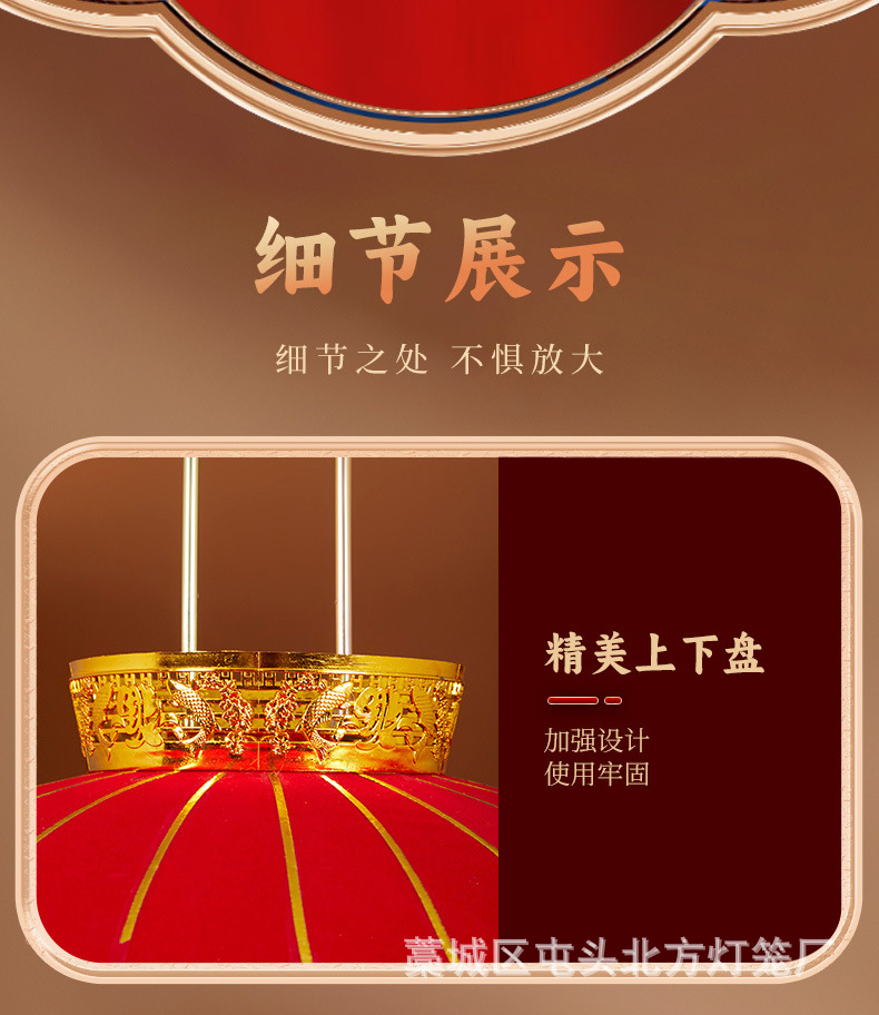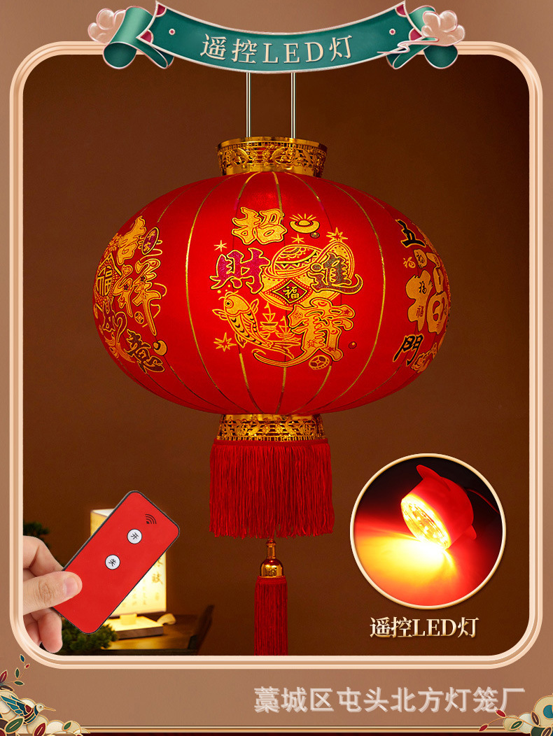 厂家批发新款伞杆高档植绒布红灯笼喜庆灯笼新年春节长杆植绒灯笼