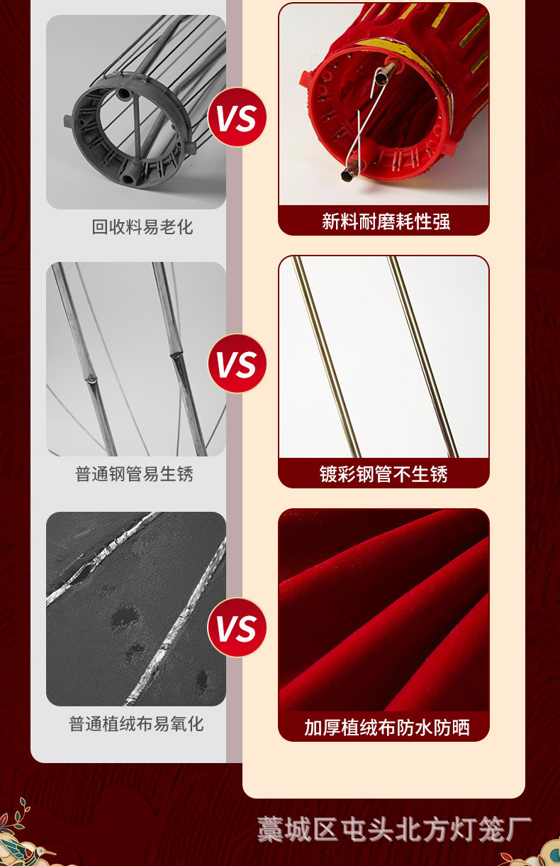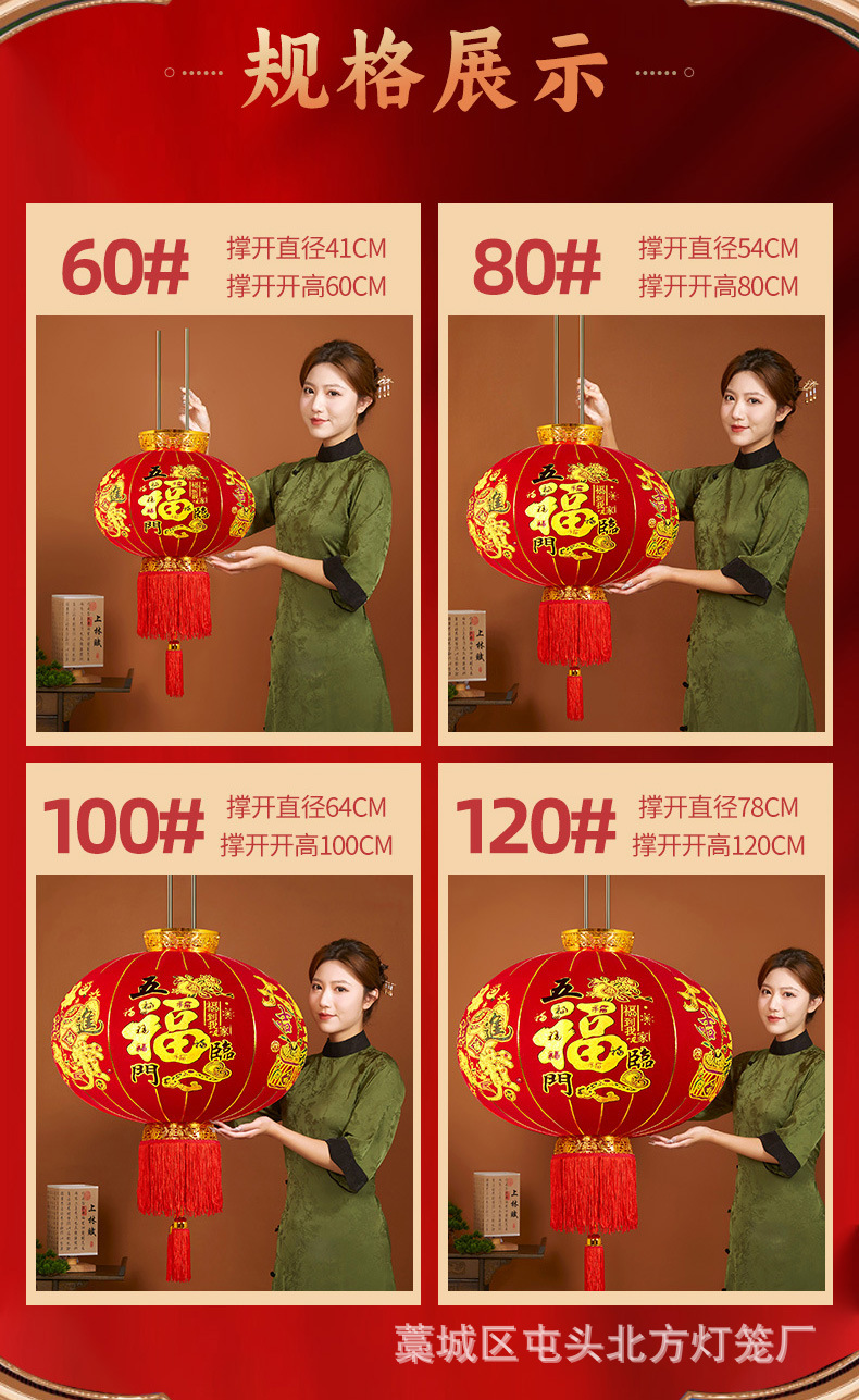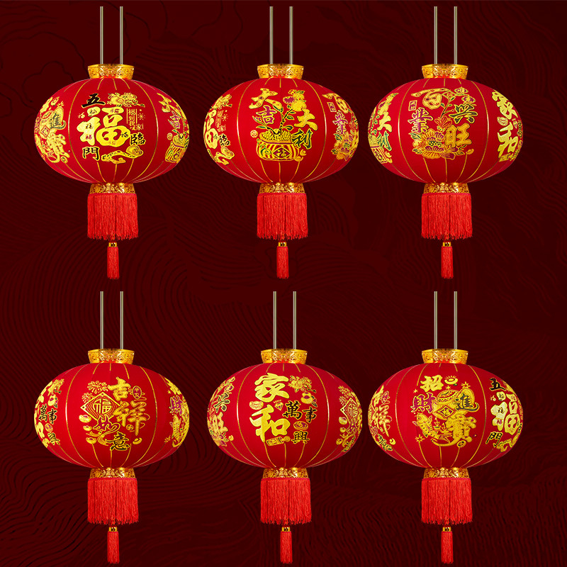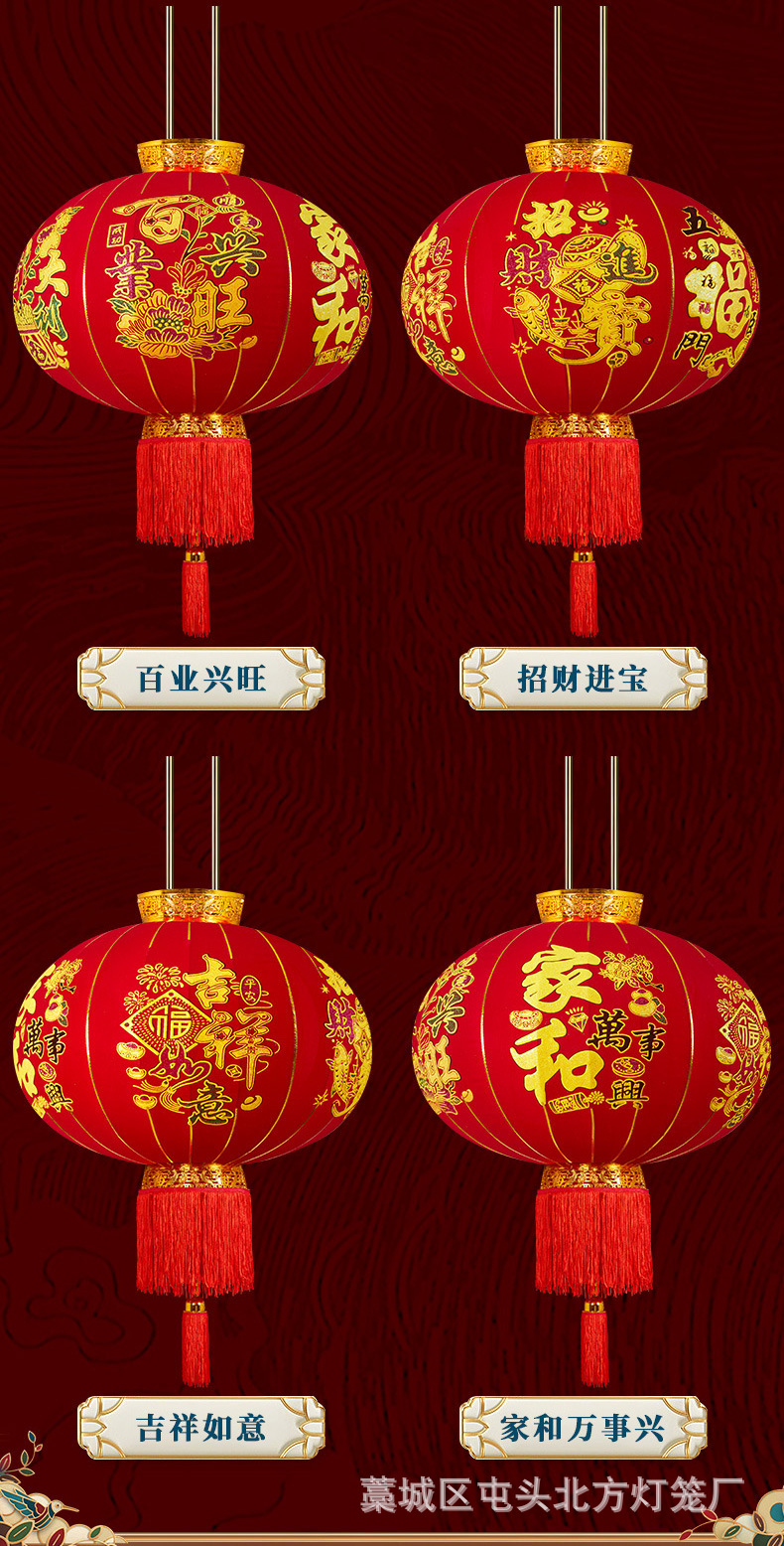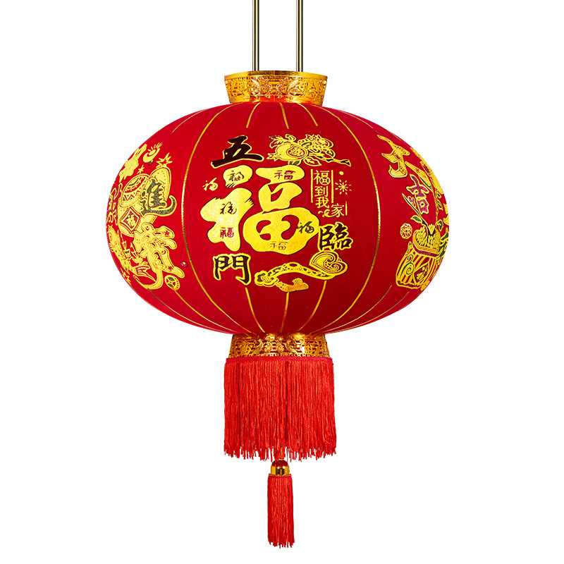 厂家批发新款伞杆高档植绒布红灯笼喜庆灯笼新年春节长杆植绒灯笼