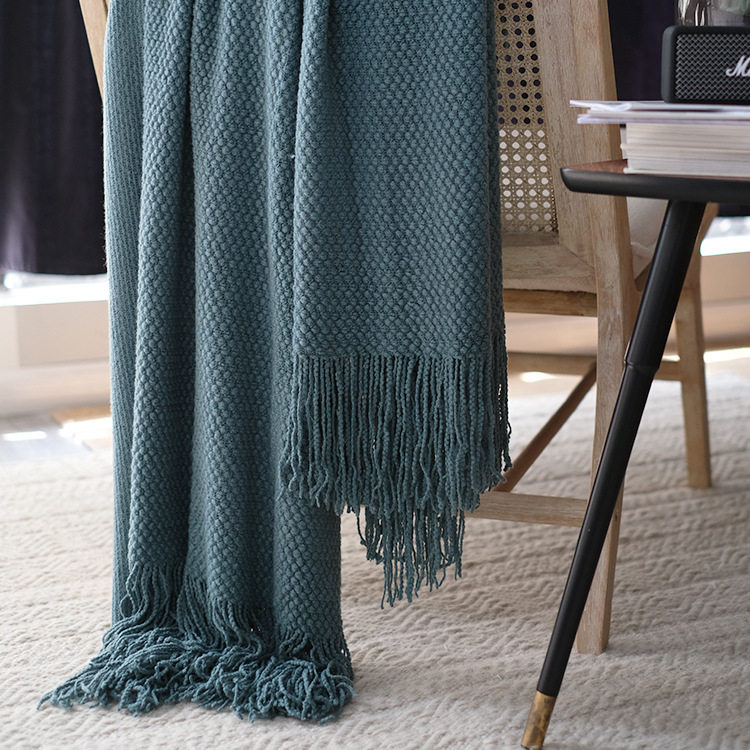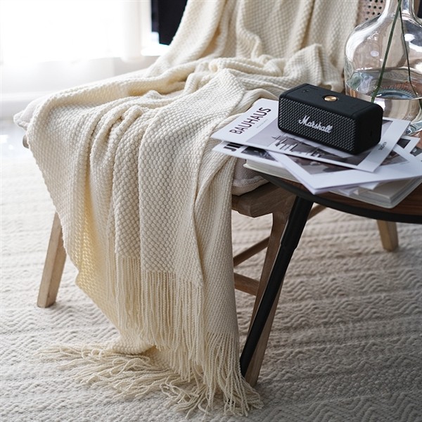 简约现代针织线毯毛毯白色午睡午休盖毯北欧纯色米色单人沙发毯子