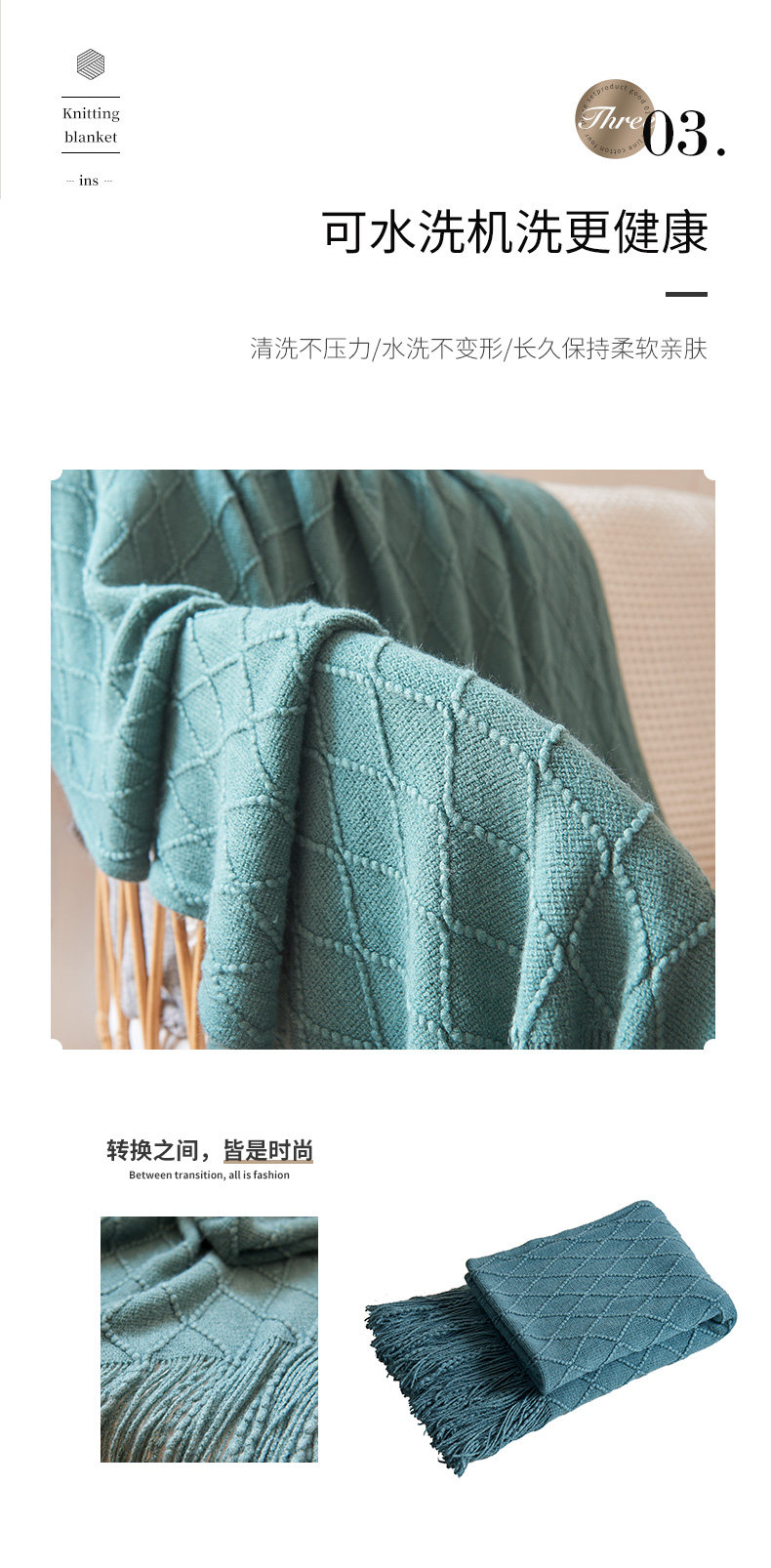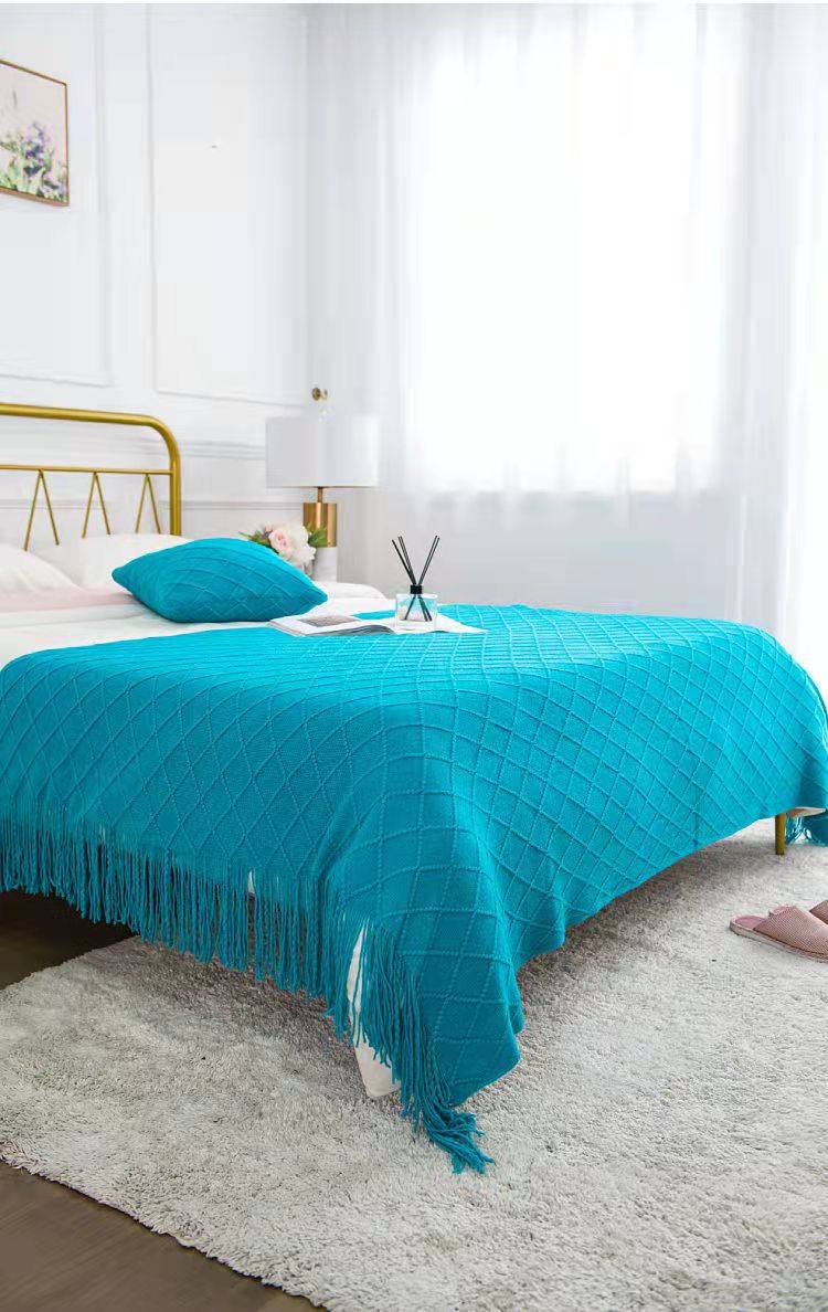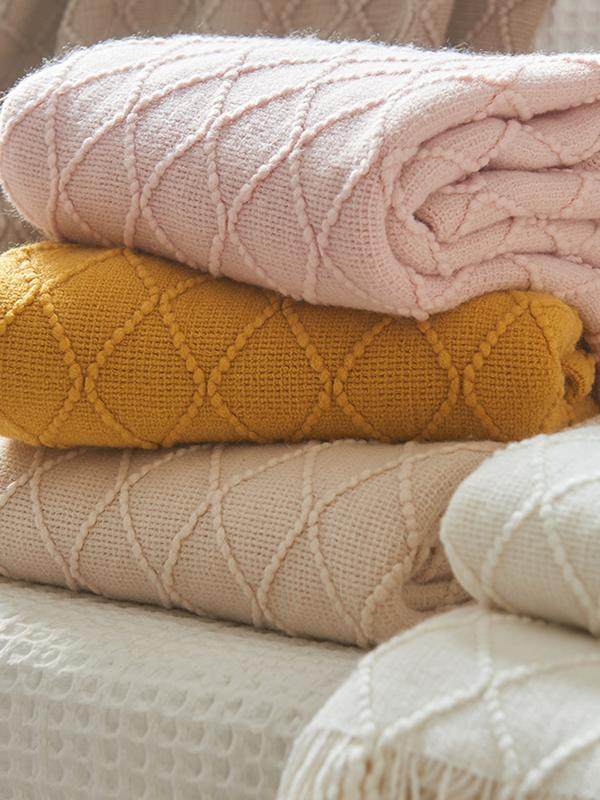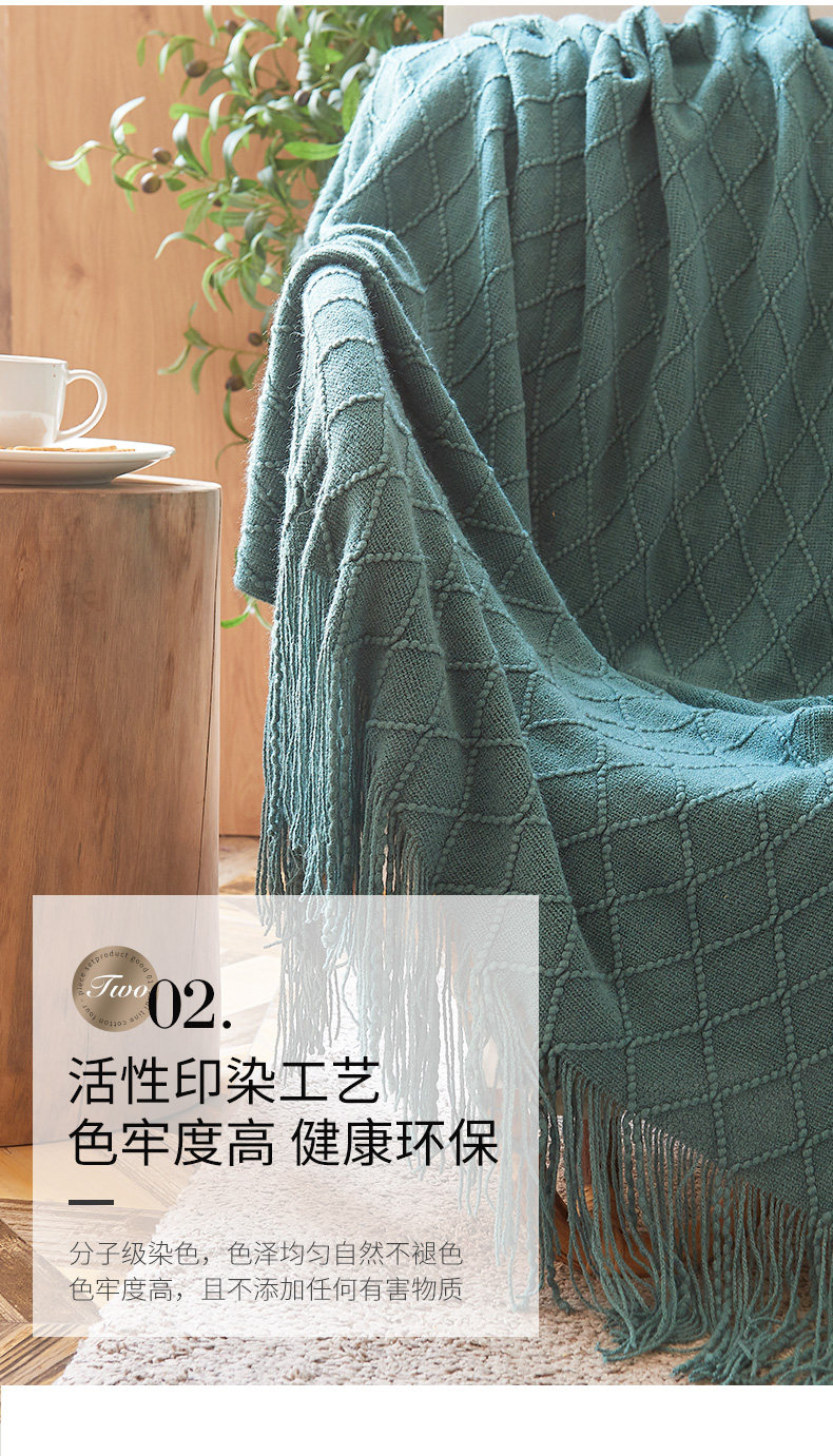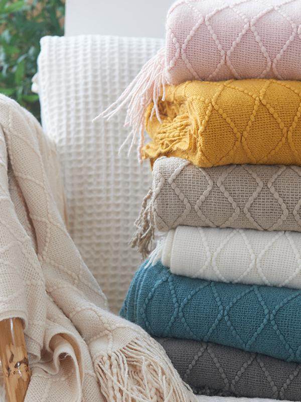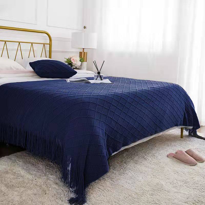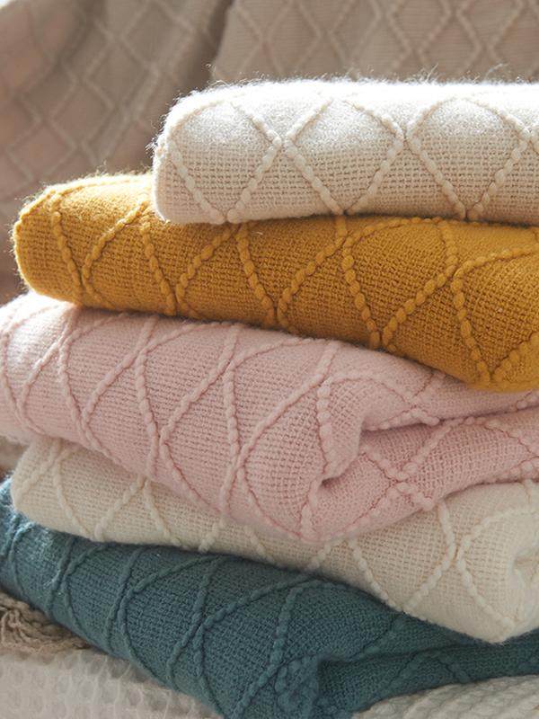 北欧复古菱格毛线毯子纯色针织盖毯床尾毯床搭沙发毯搭巾床尾巾