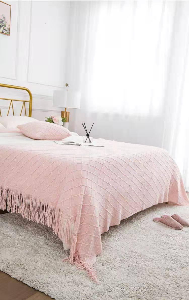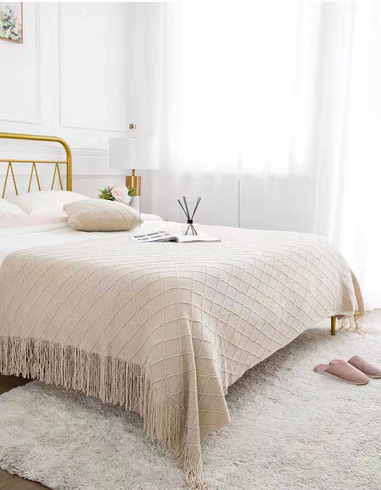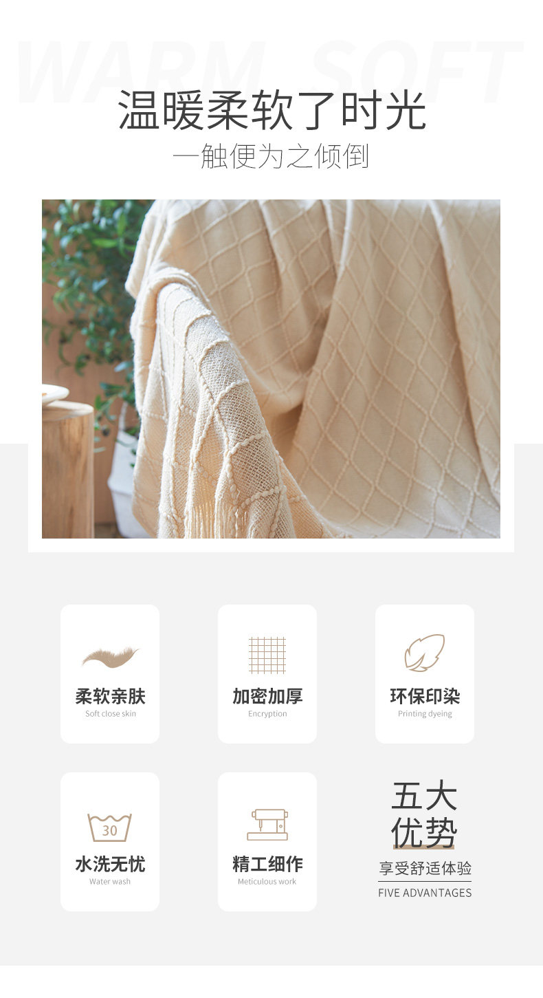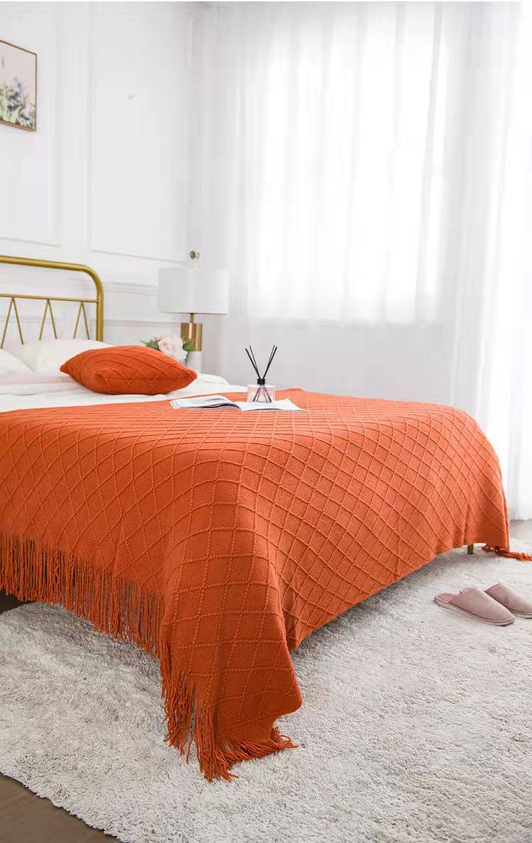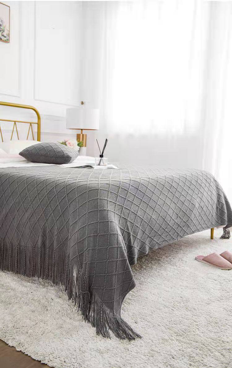 北欧复古菱格毛线毯子纯色针织盖毯床尾毯床搭沙发毯搭巾床尾巾
