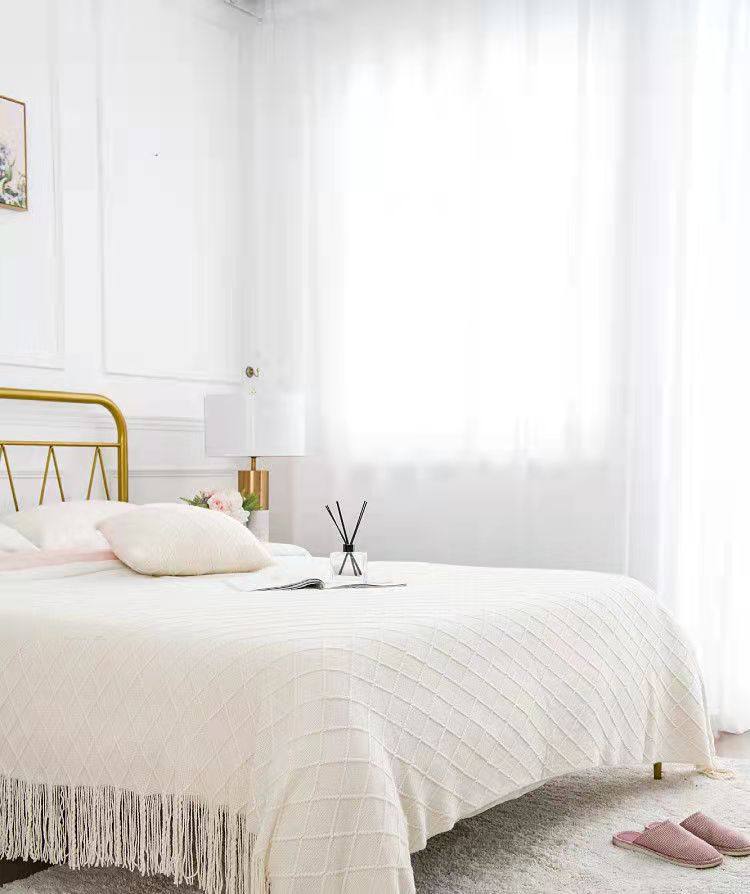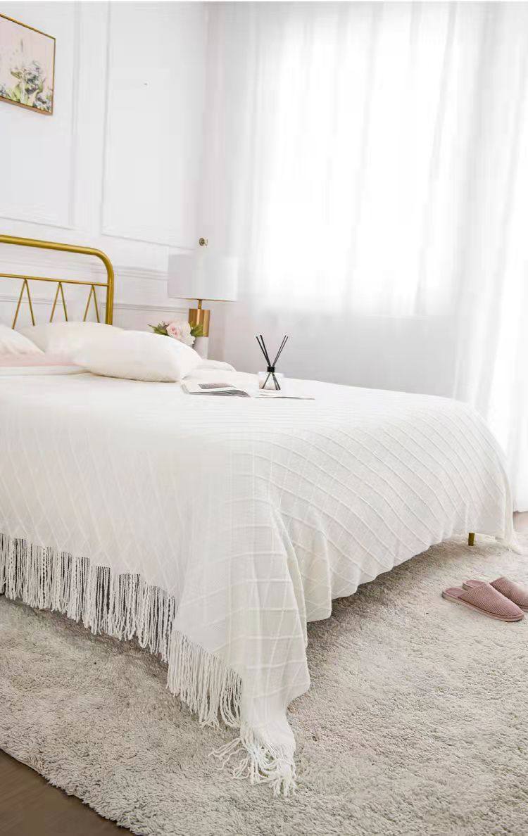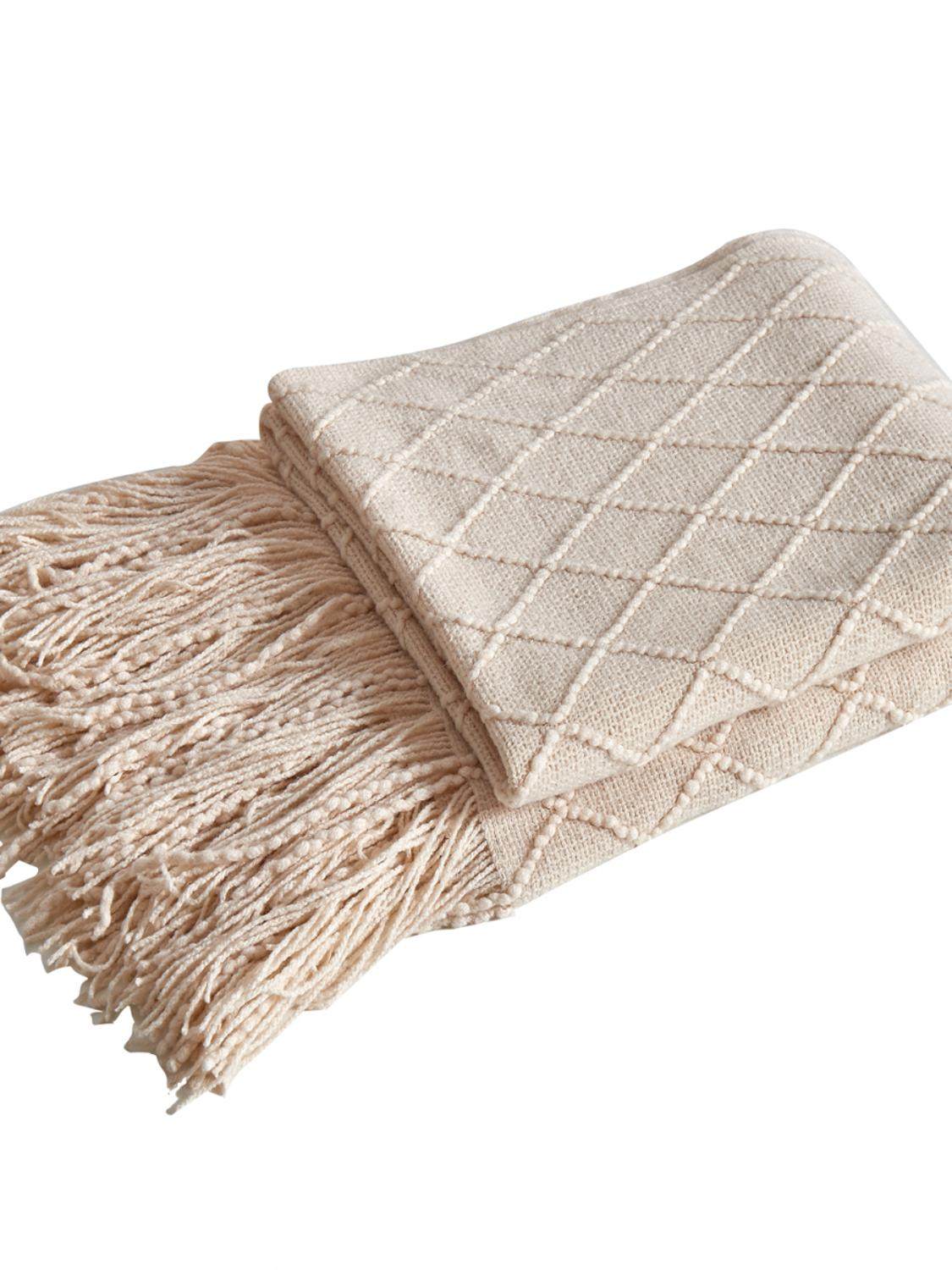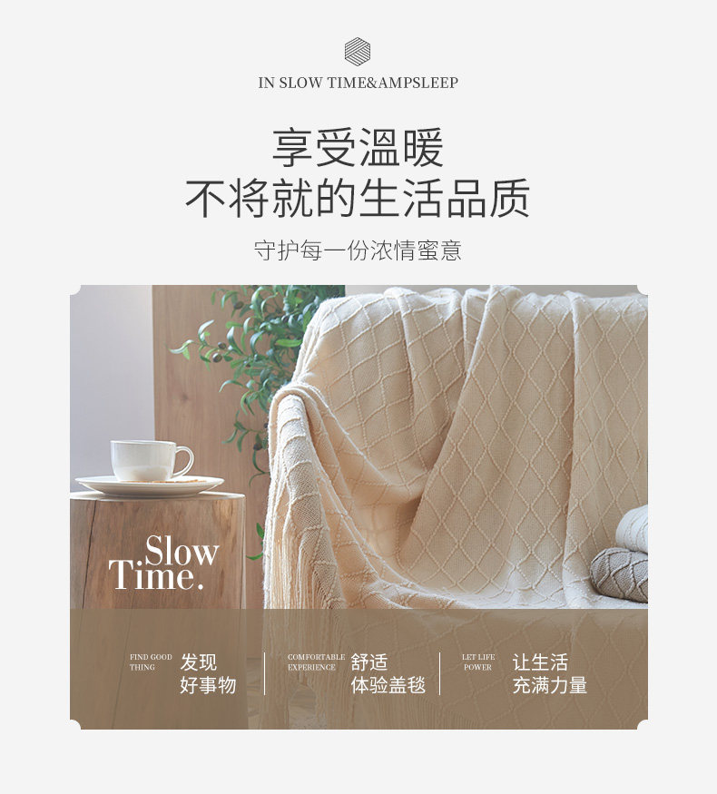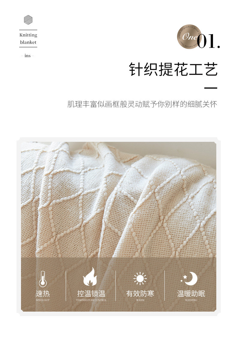 北欧复古菱格毛线毯子纯色针织盖毯床尾毯床搭沙发毯搭巾床尾巾