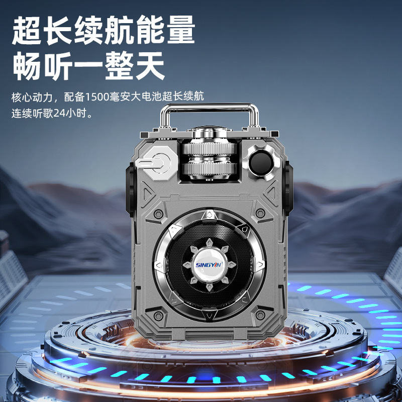 新款机甲风电商爆款蓝牙小音响,复古元素搭载机甲时尚简约风格,10瓦大功率,1500毫安电池持久续航,户外健身骑行便携式无线音箱