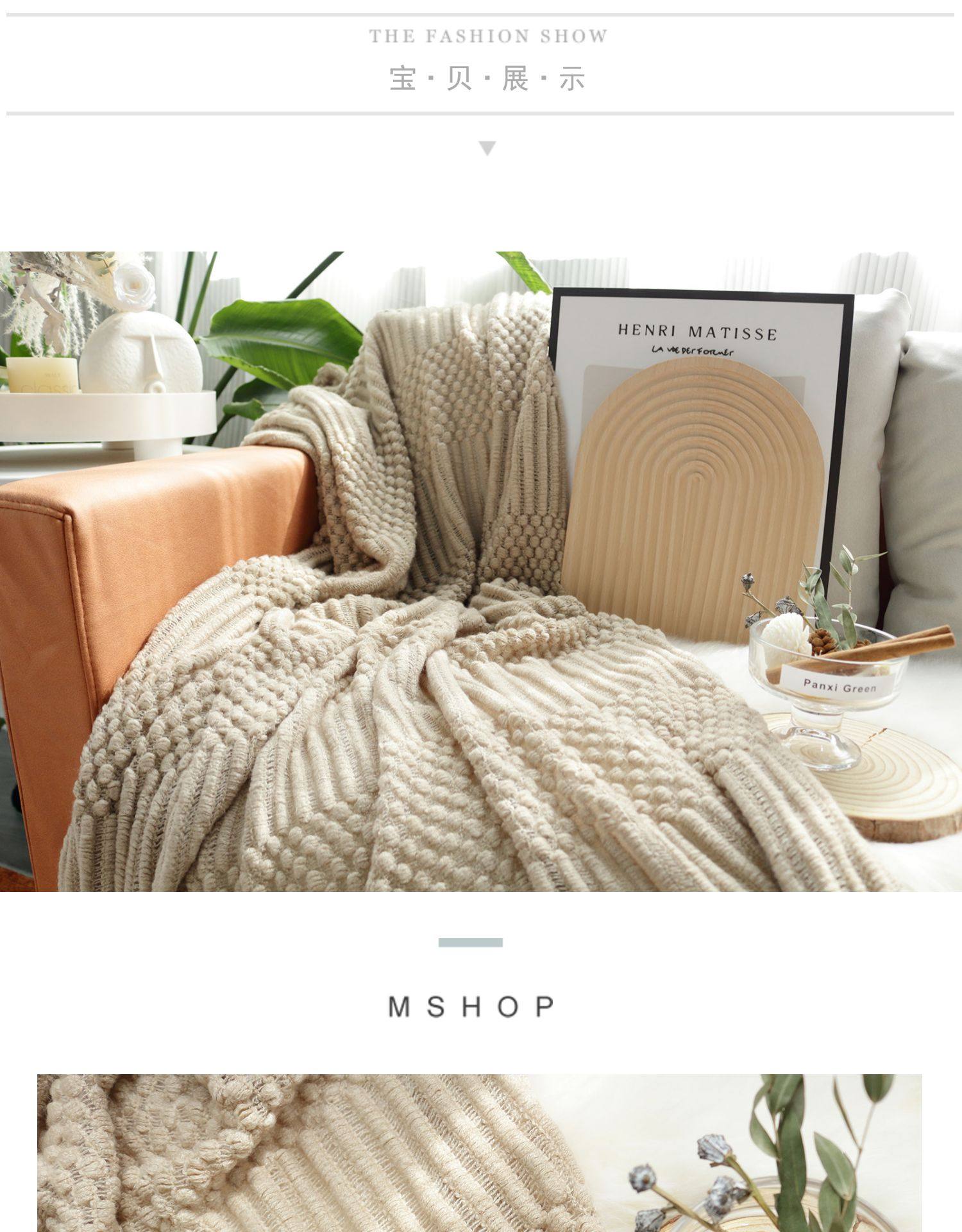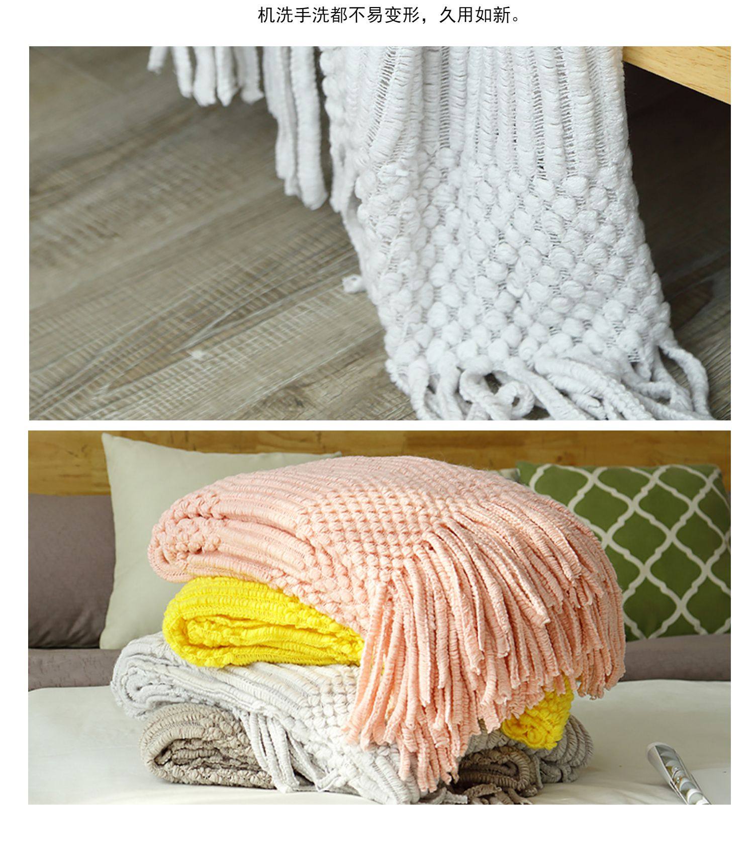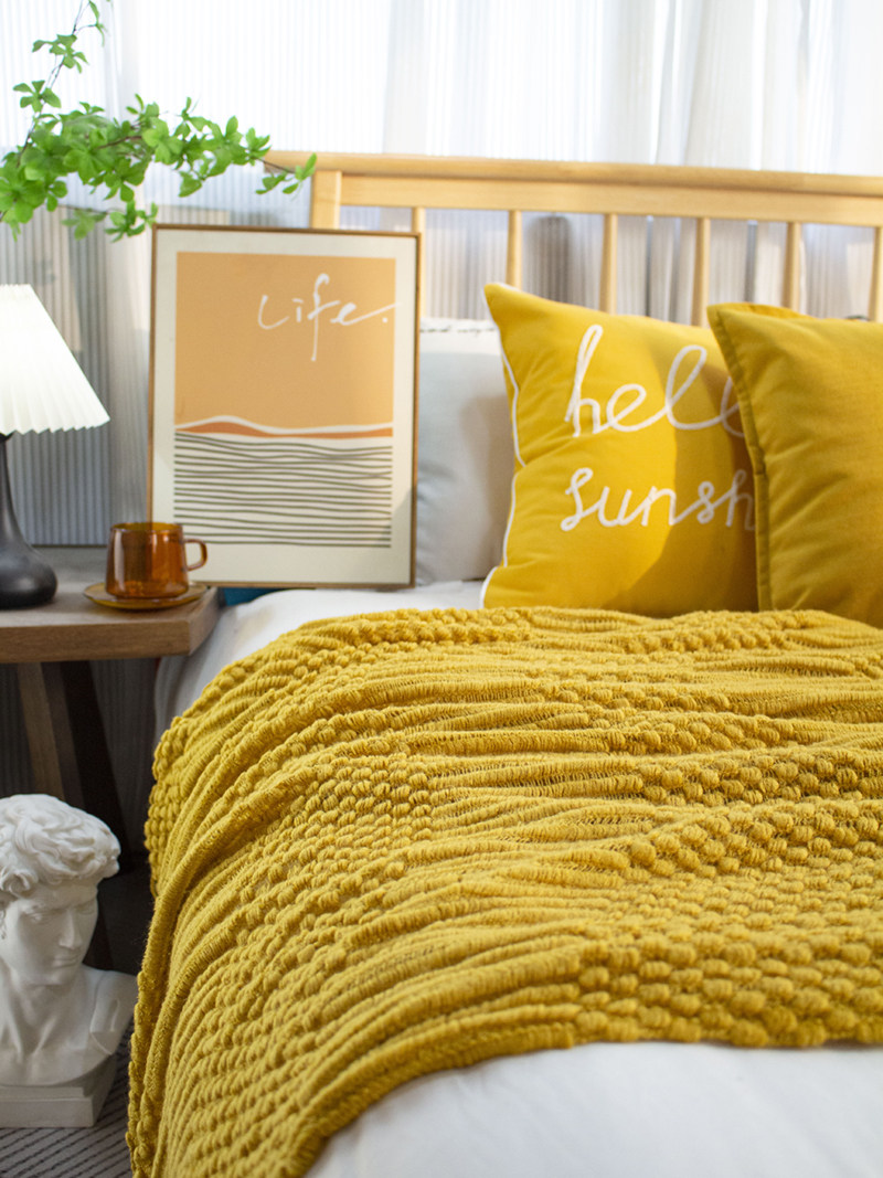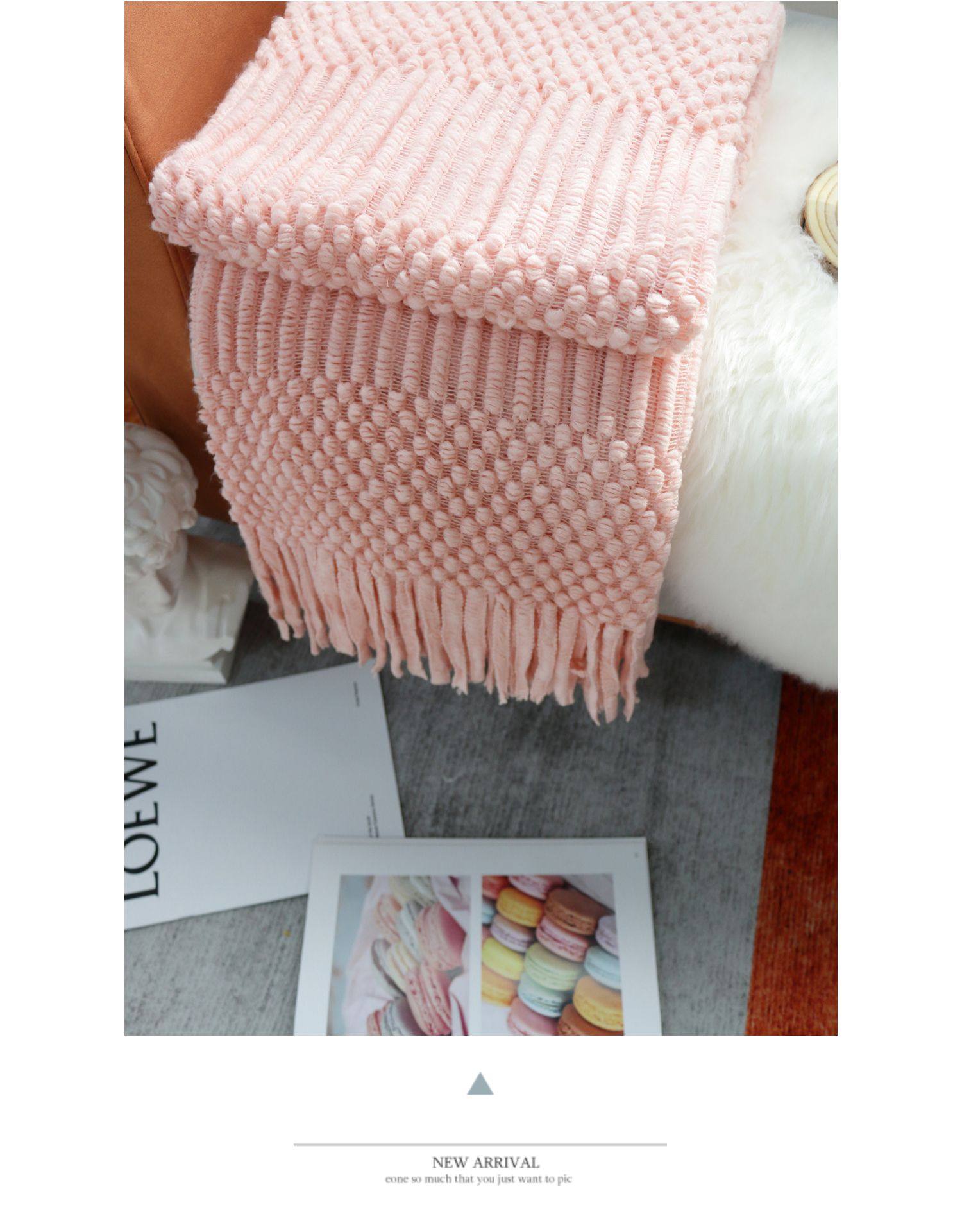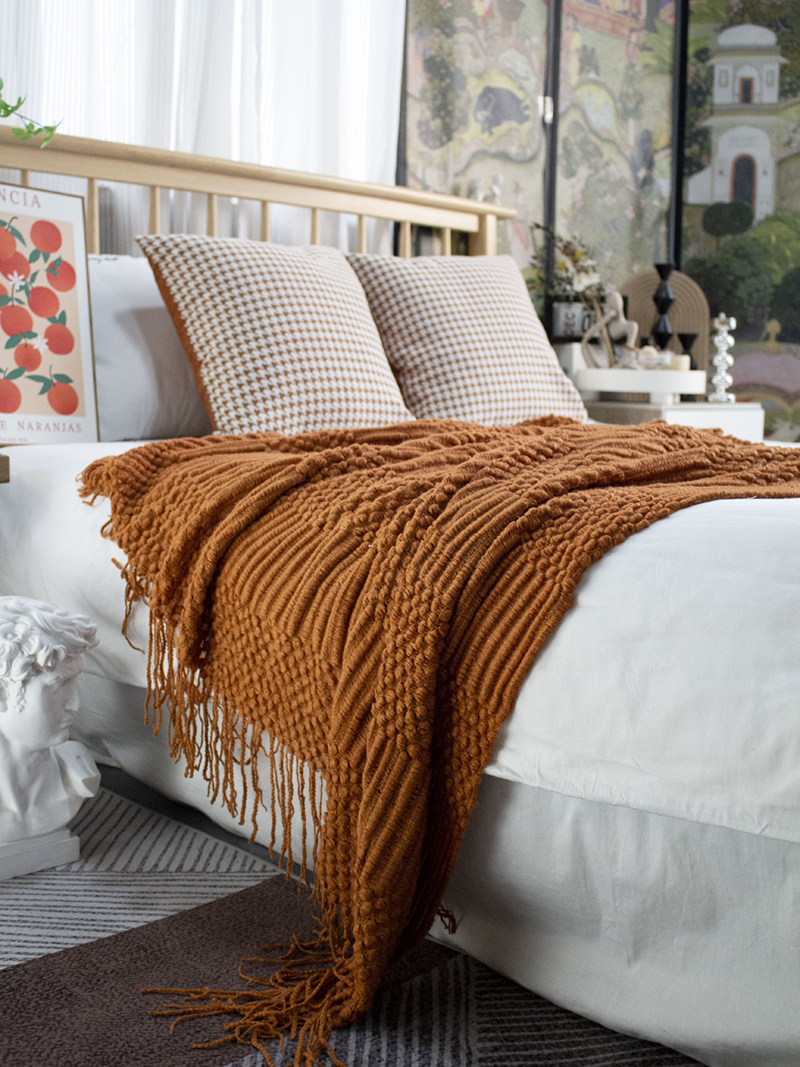 北欧美式纯色菠萝纹浅灰色沙发毯桔色搭巾针织毯样板装饰毯床尾毯