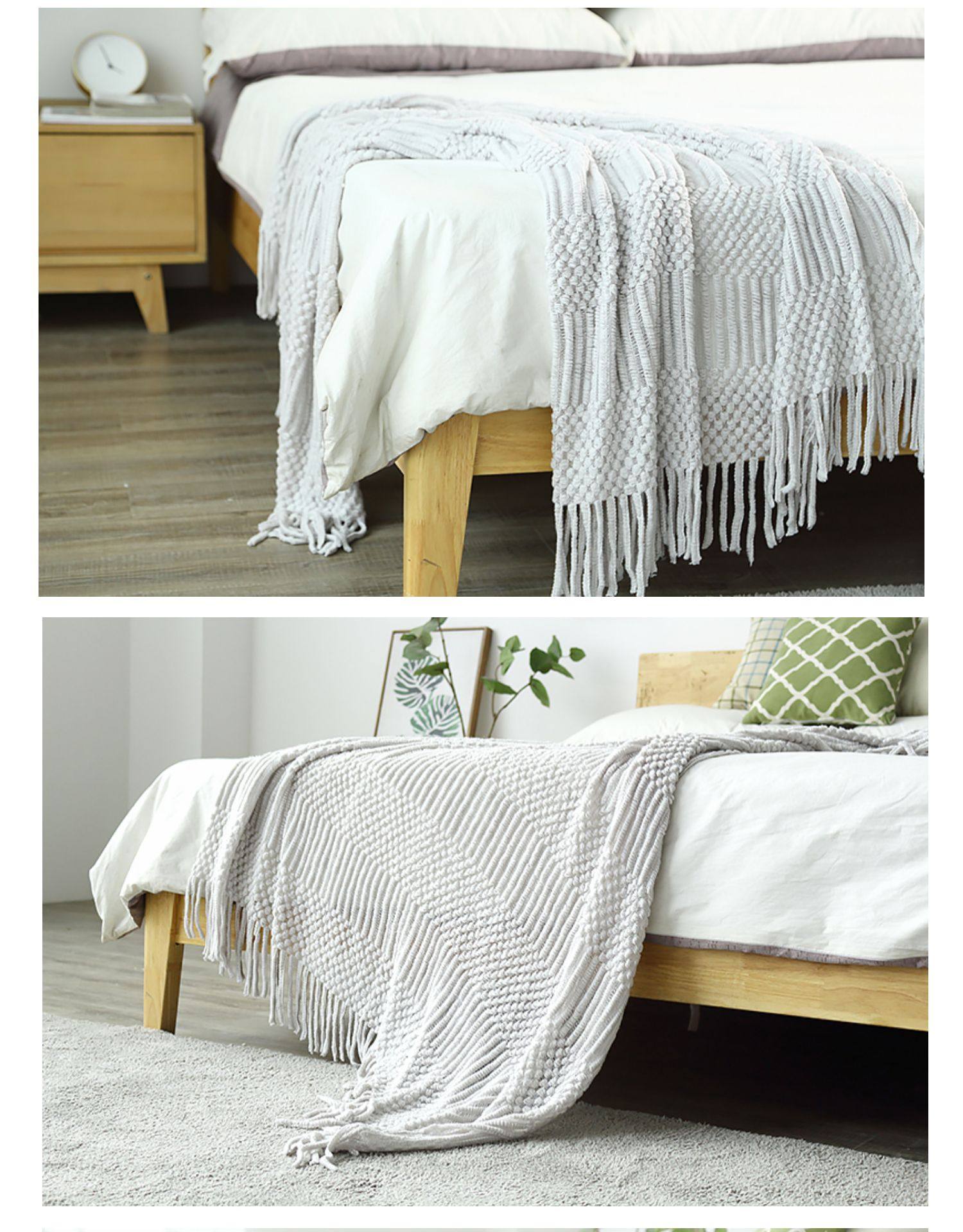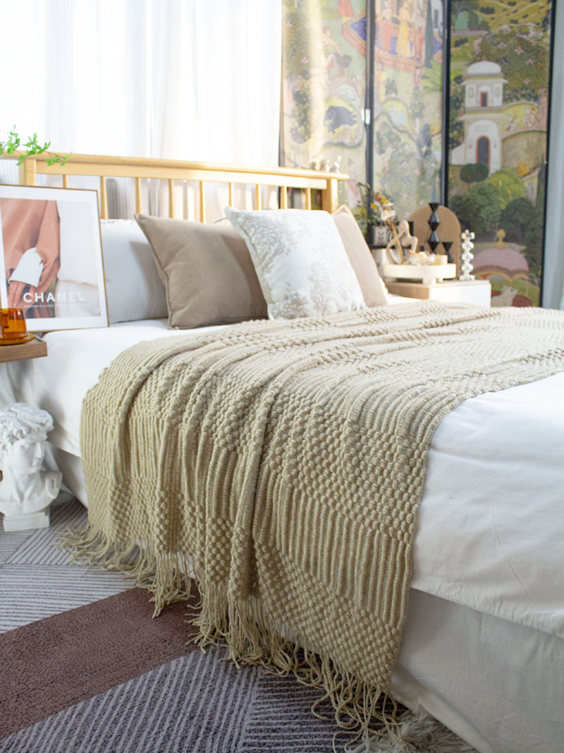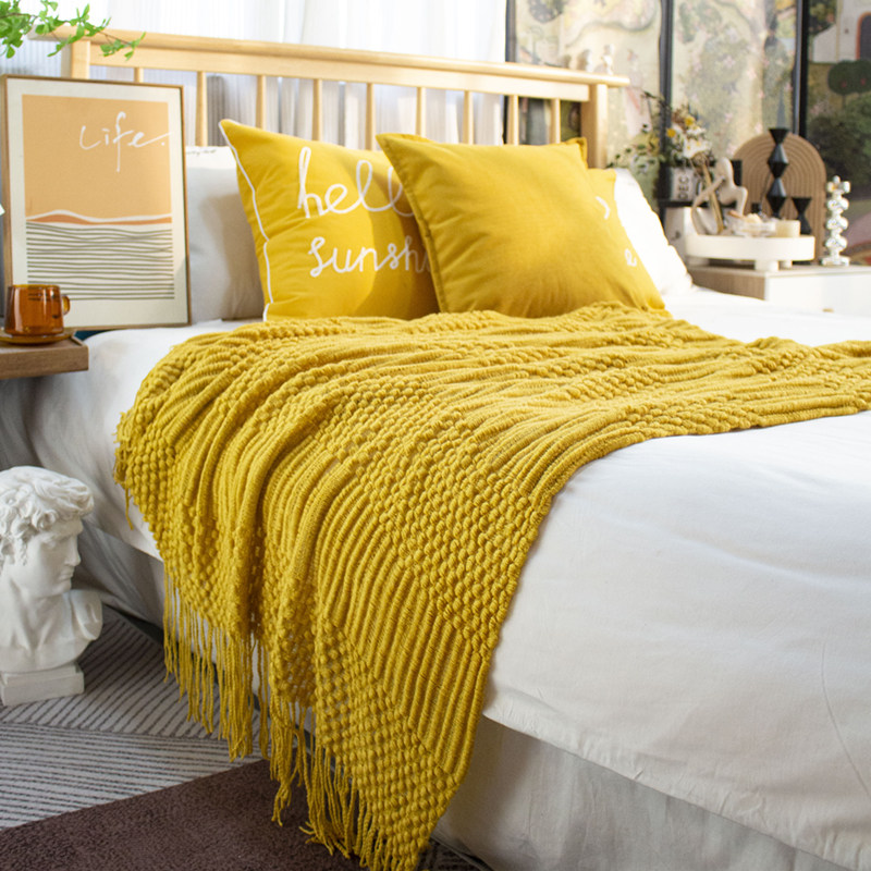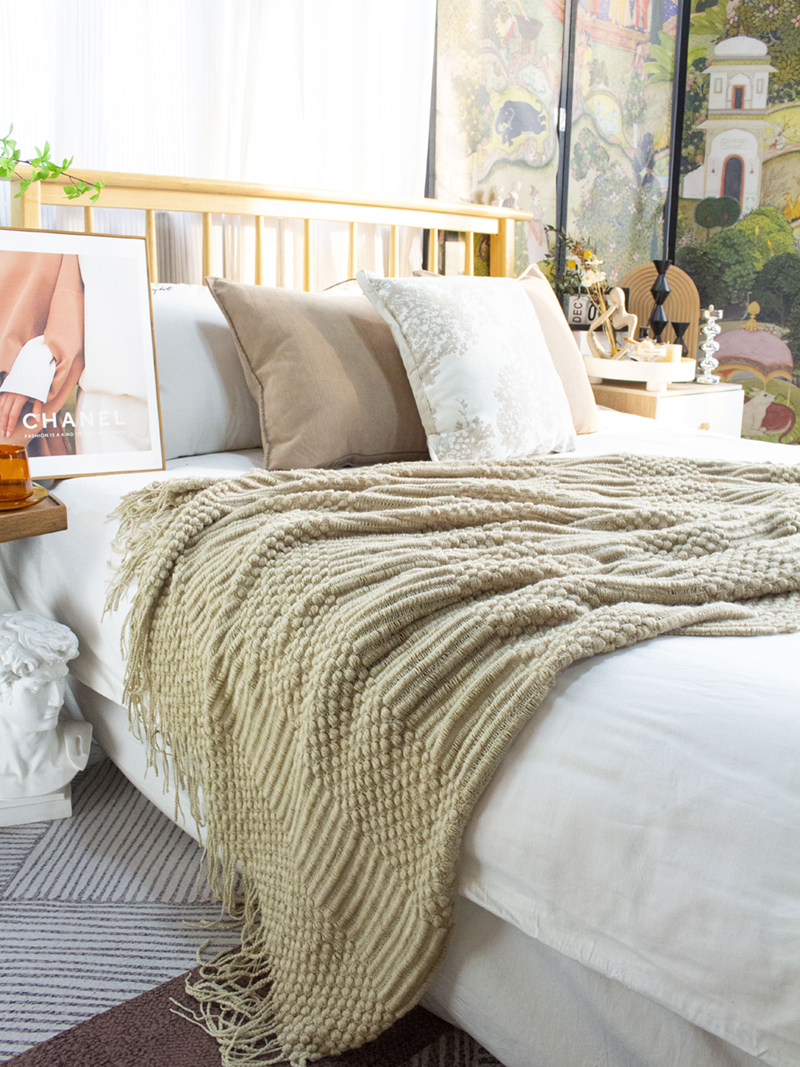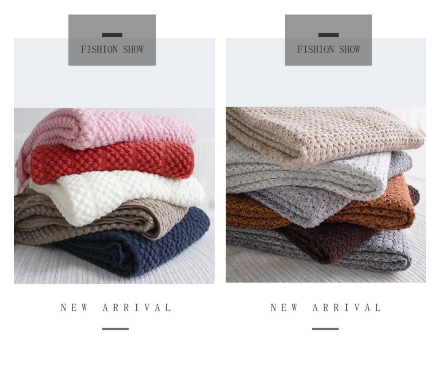 北欧美式纯色菠萝纹浅灰色沙发毯桔色搭巾针织毯样板装饰毯床尾毯
