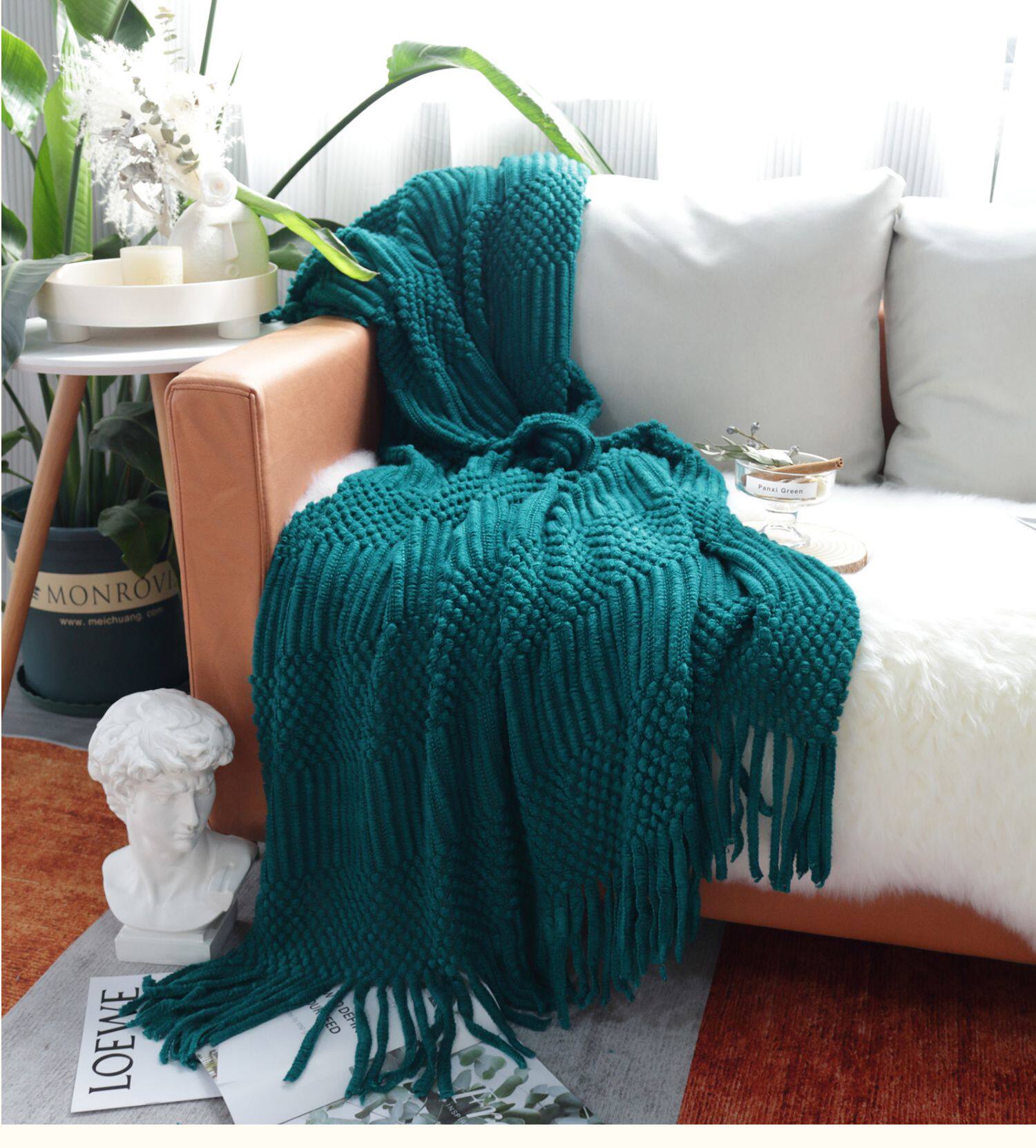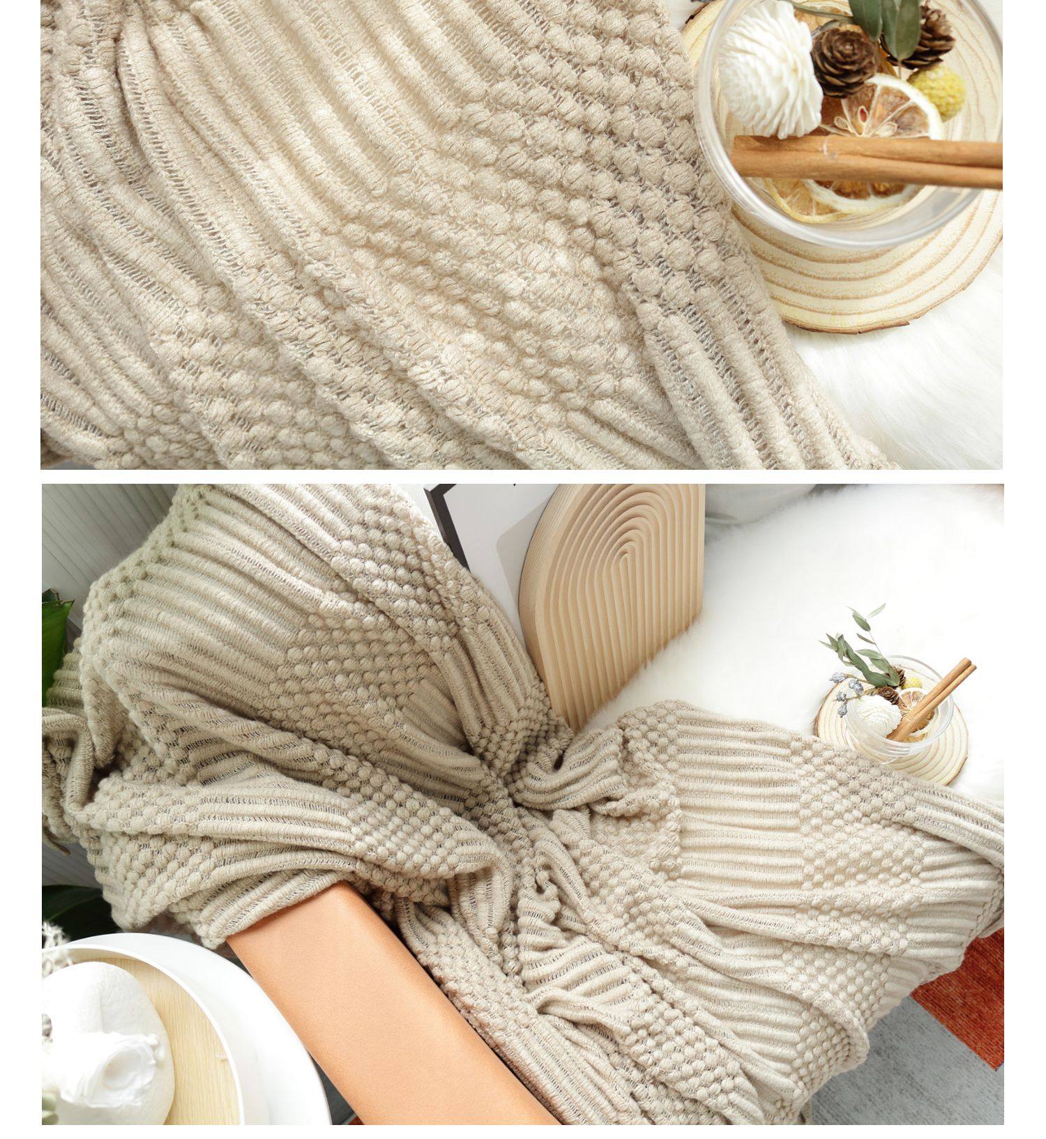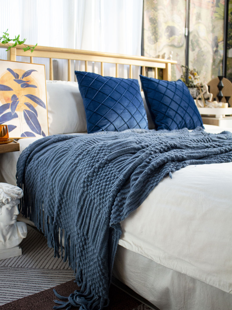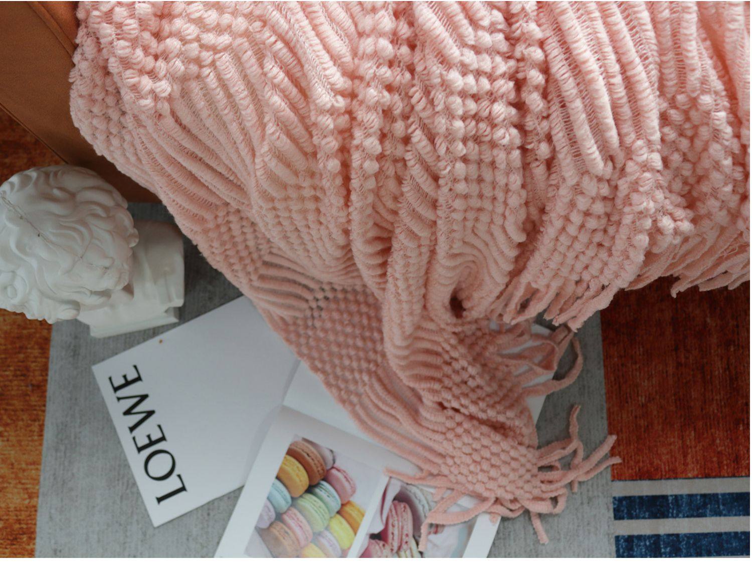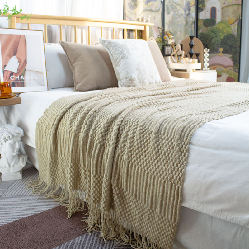 北欧美式纯色菠萝纹浅灰色沙发毯桔色搭巾针织毯样板装饰毯床尾毯