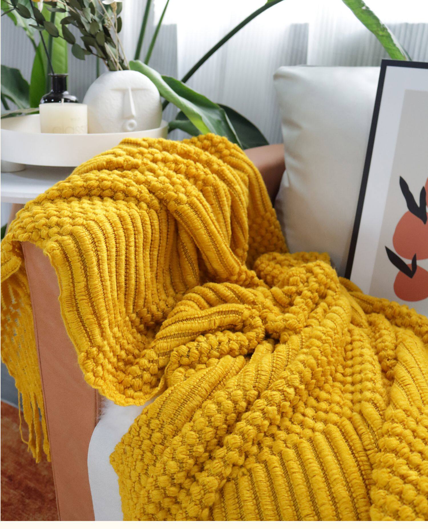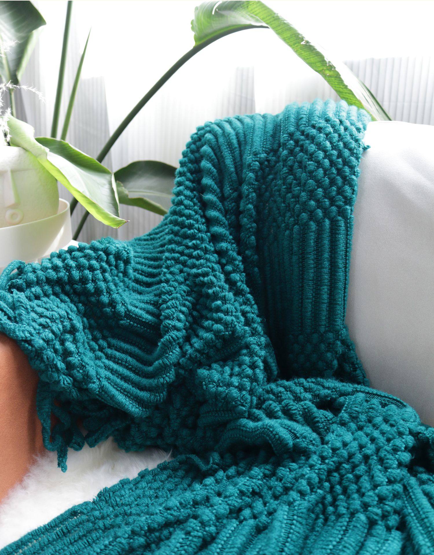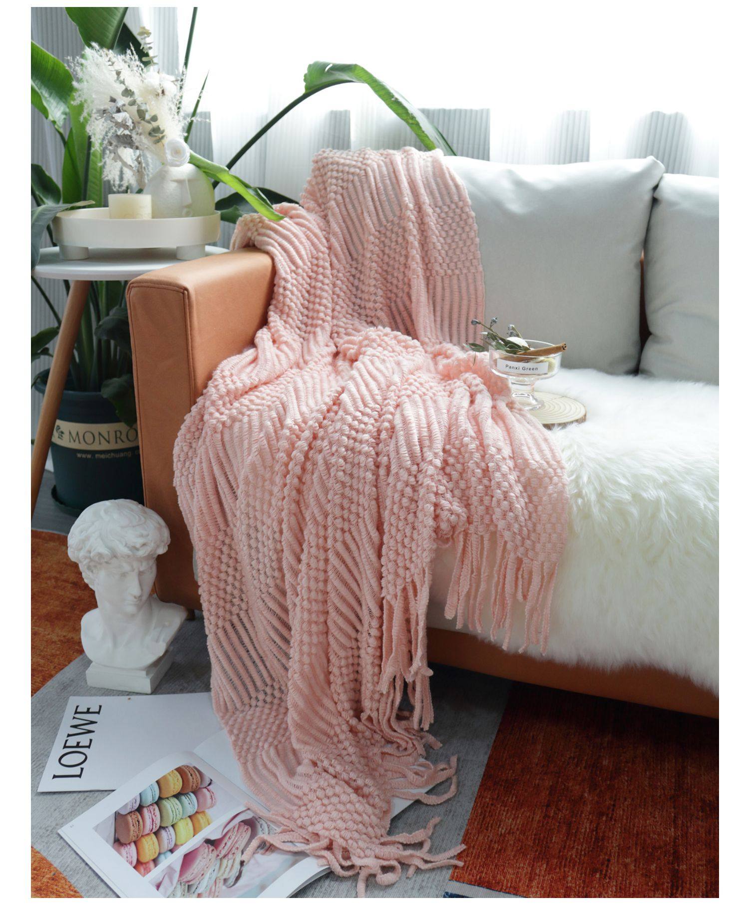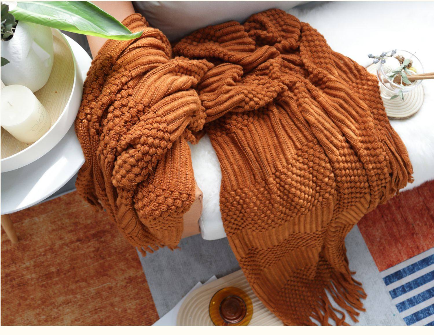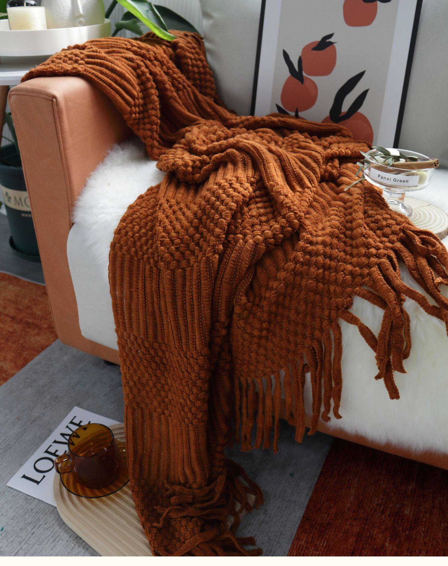 北欧美式纯色菠萝纹浅灰色沙发毯桔色搭巾针织毯样板装饰毯床尾毯