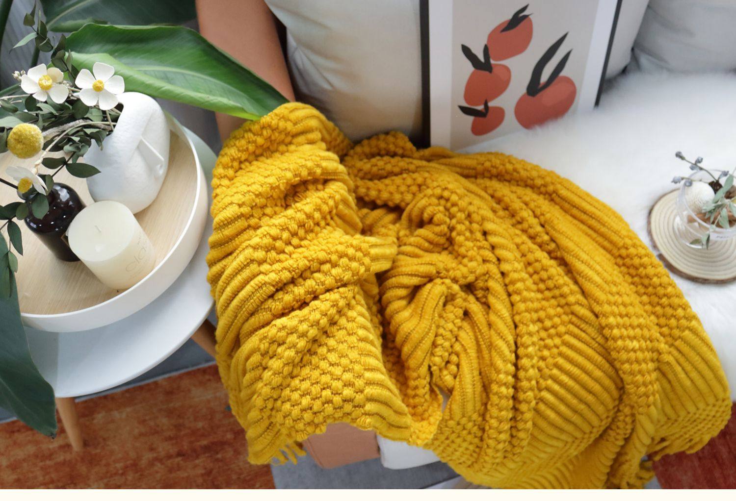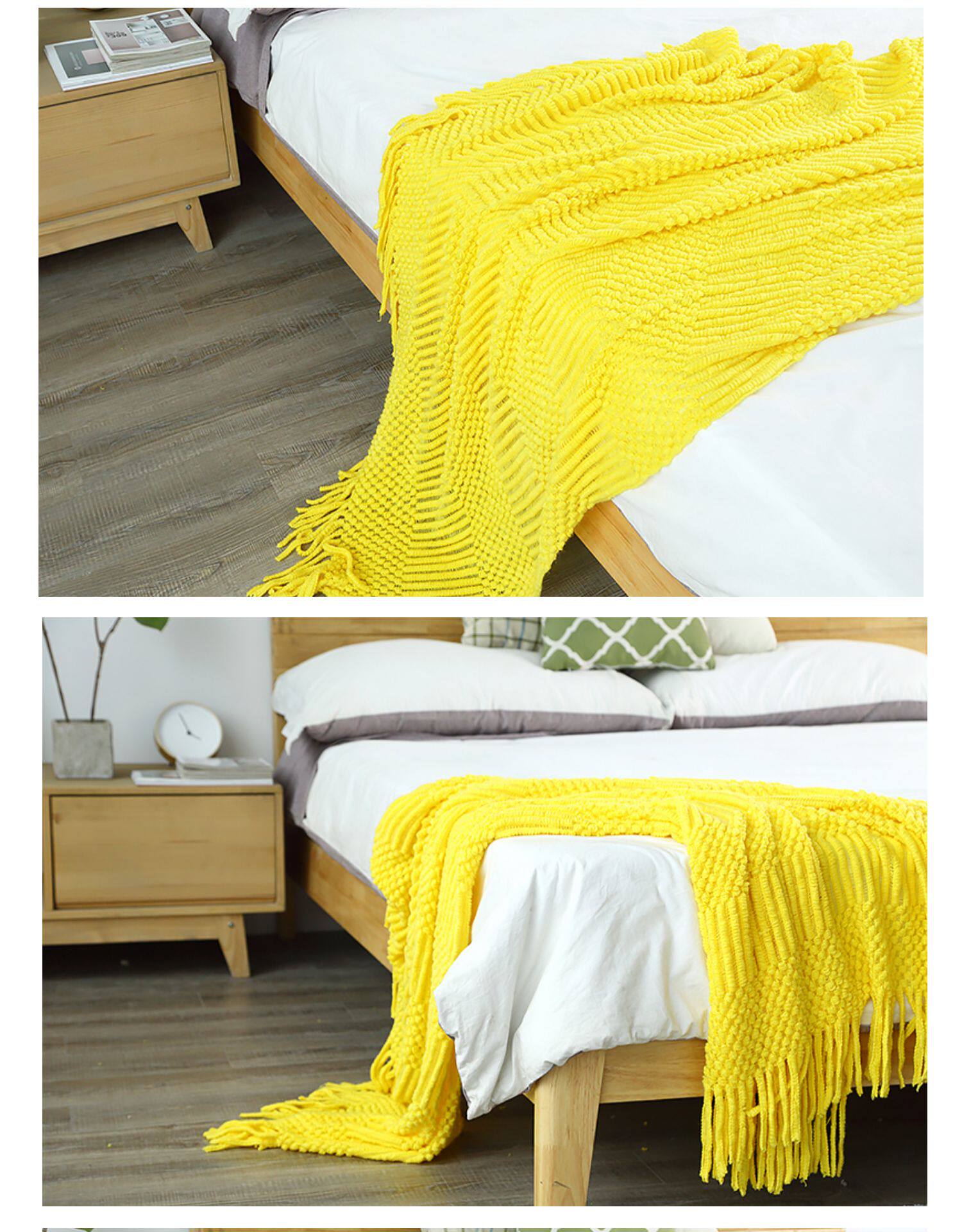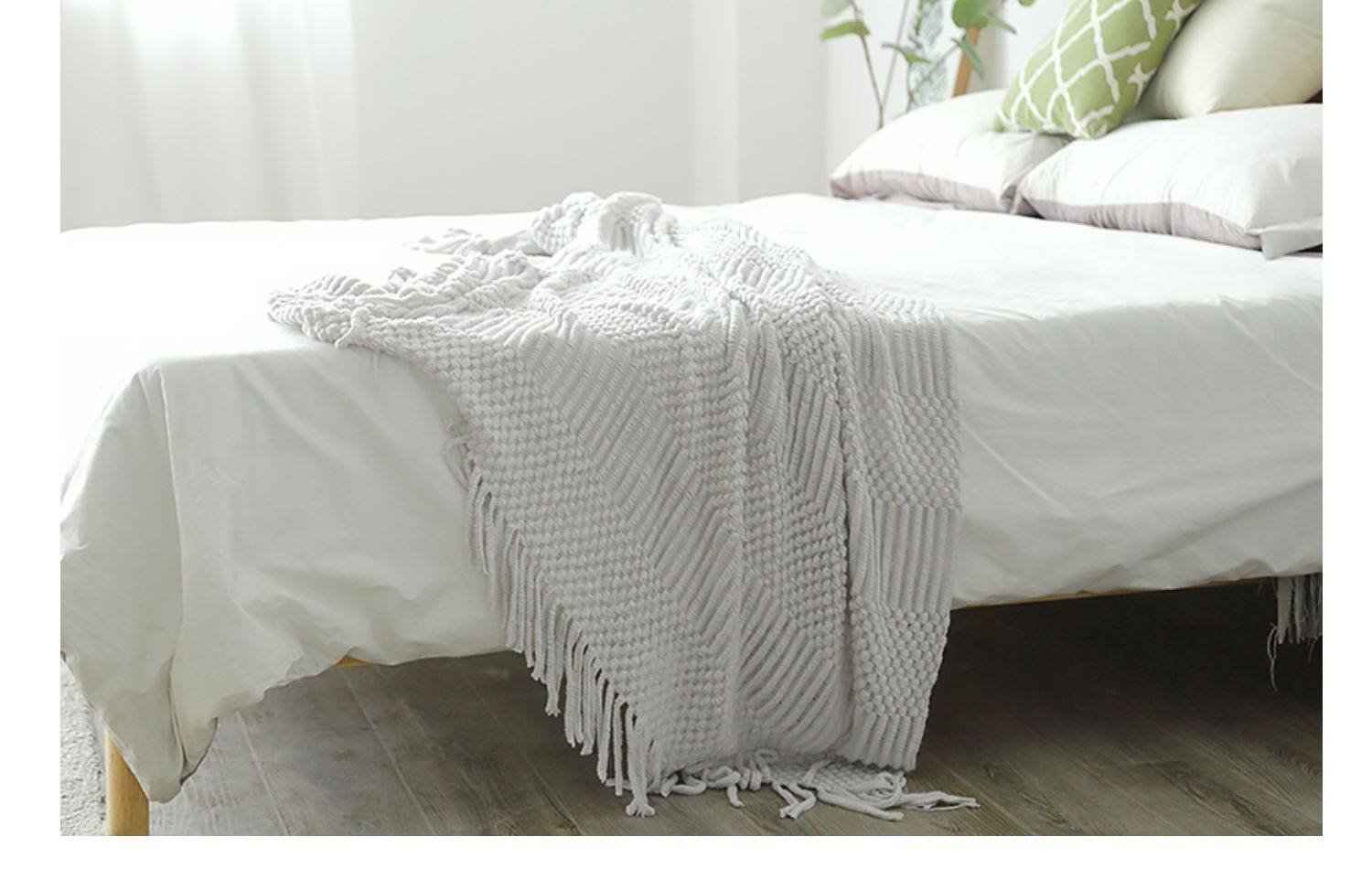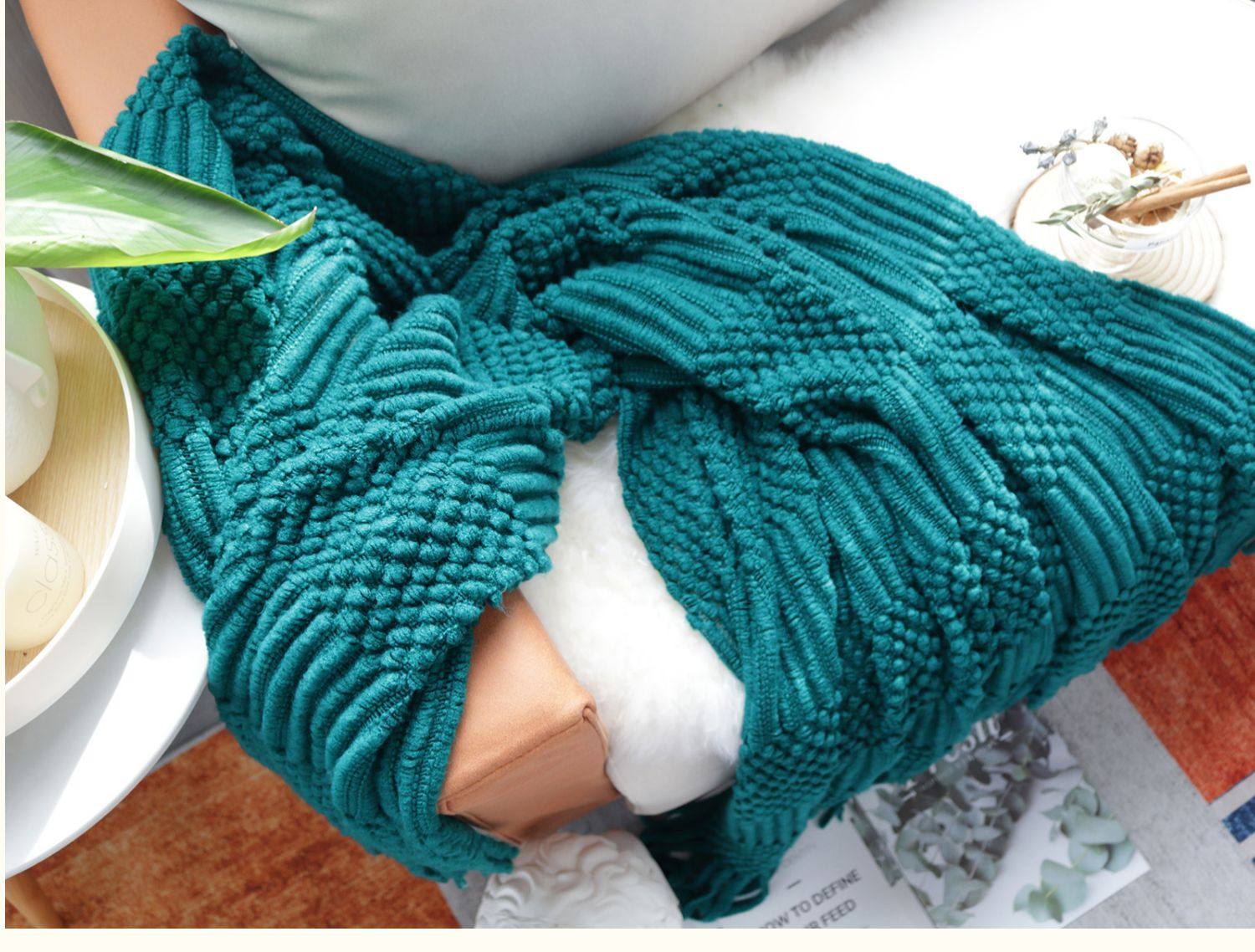 北欧美式纯色菠萝纹浅灰色沙发毯桔色搭巾针织毯样板装饰毯床尾毯