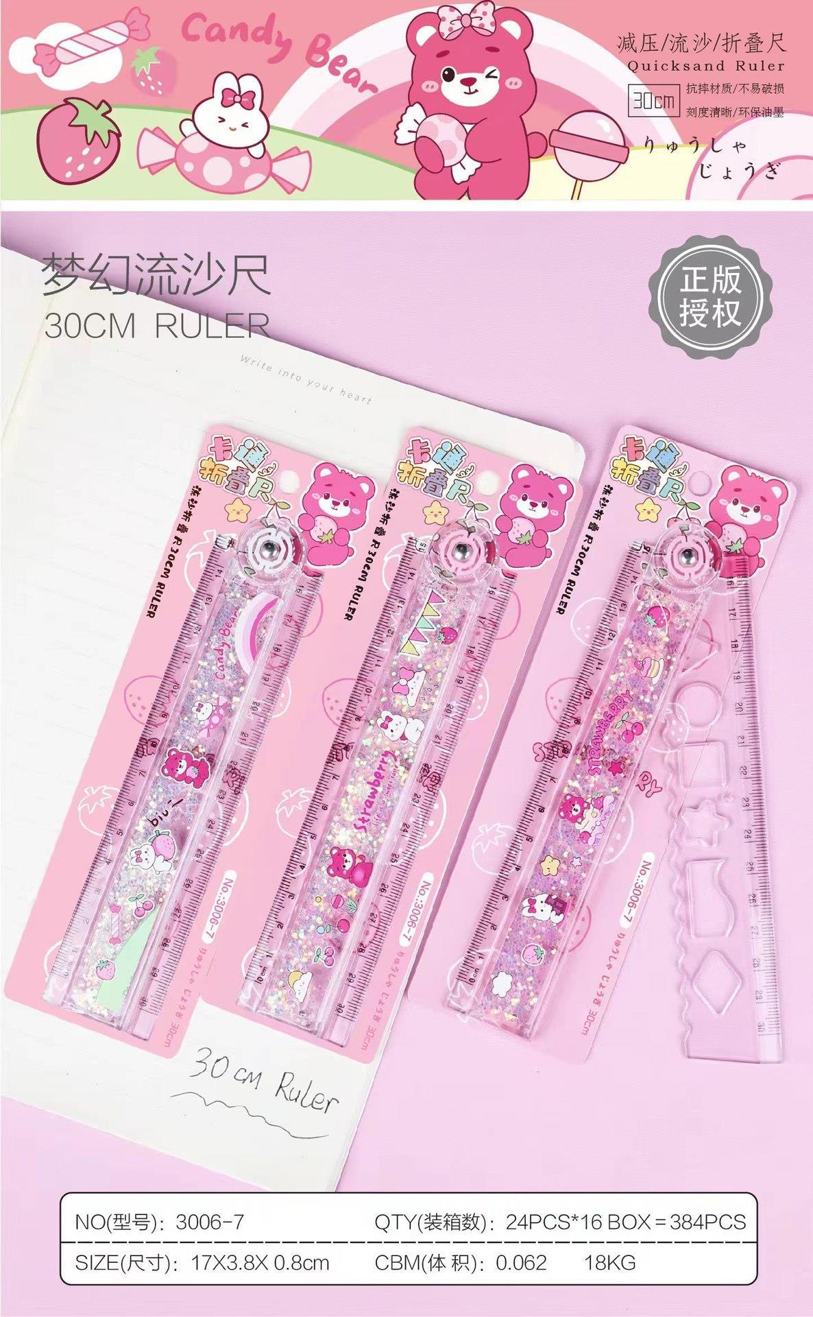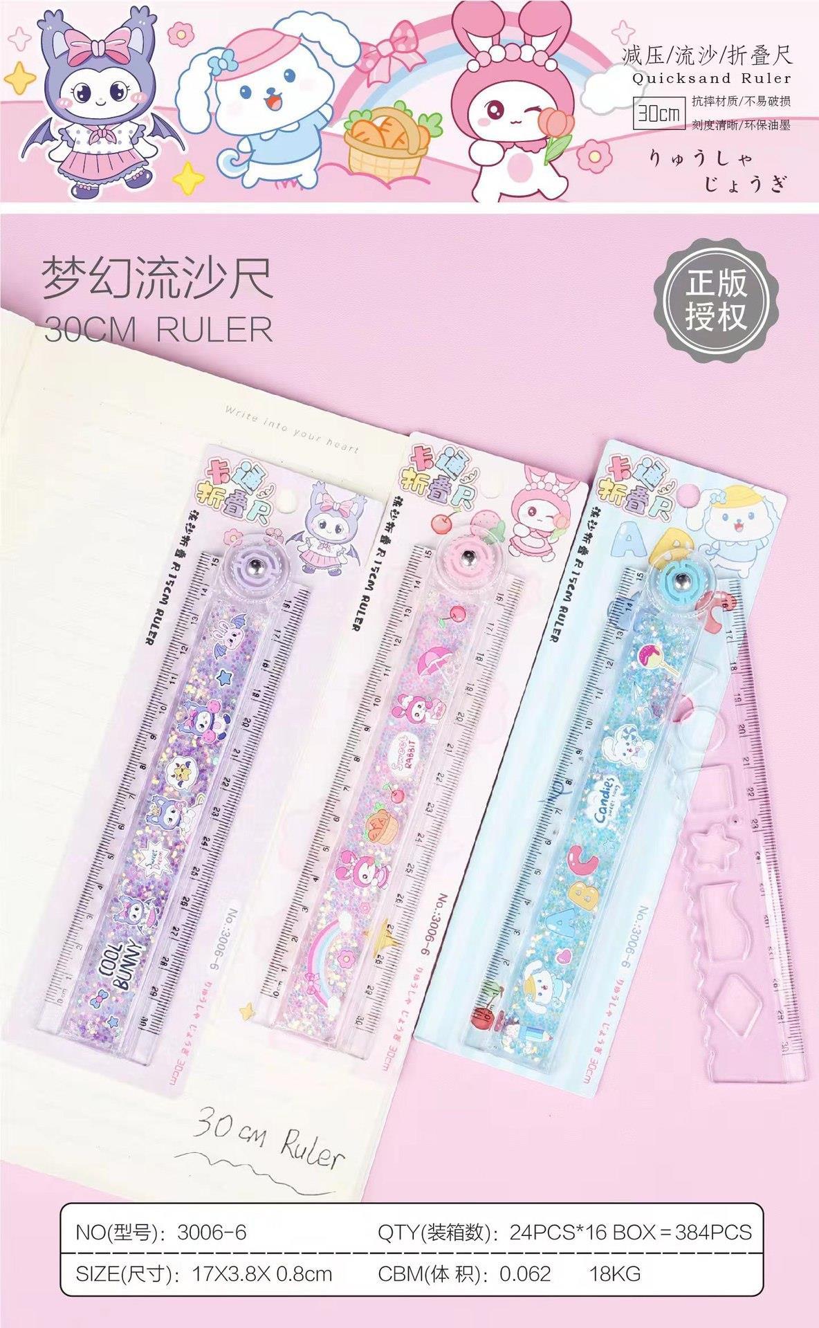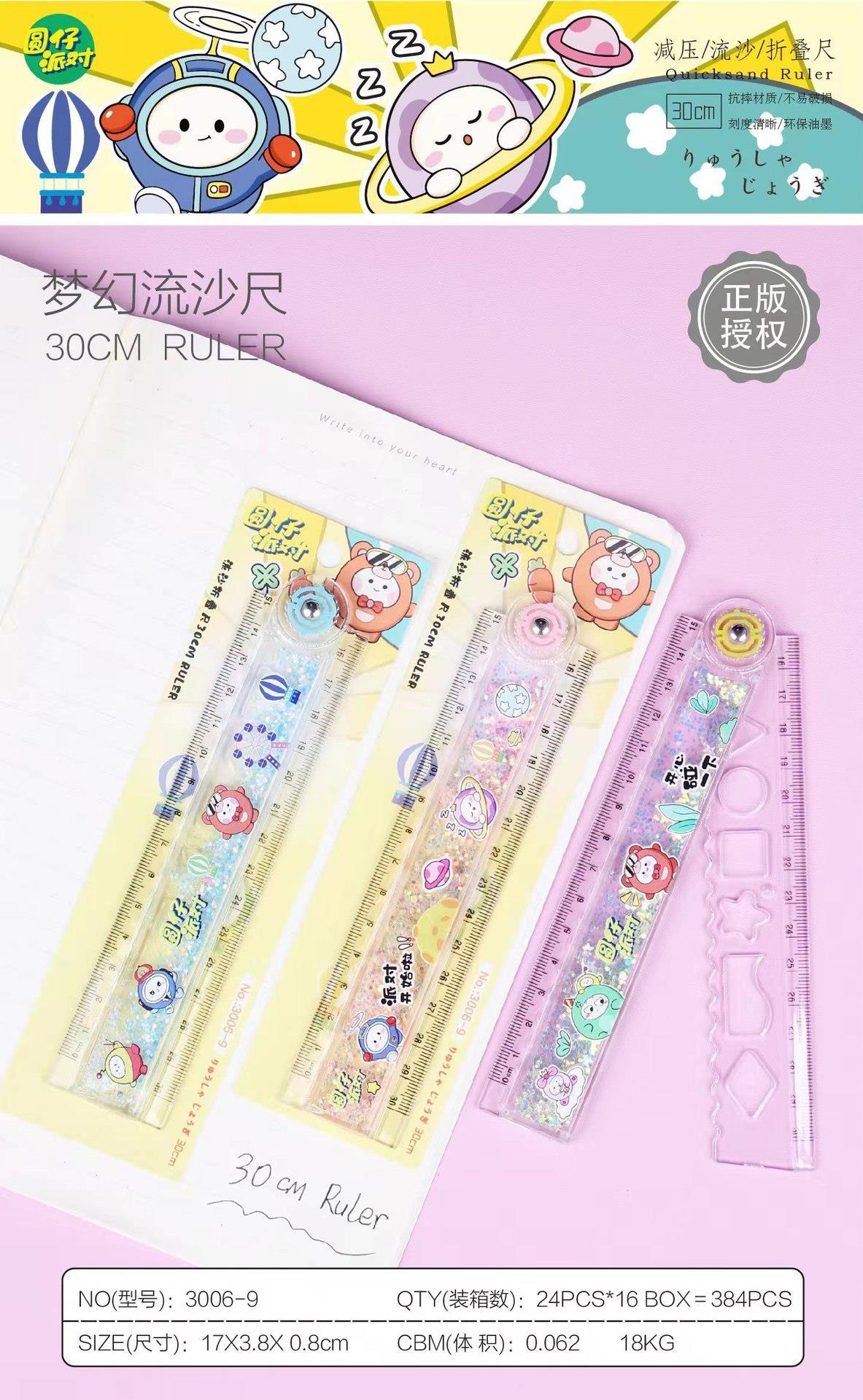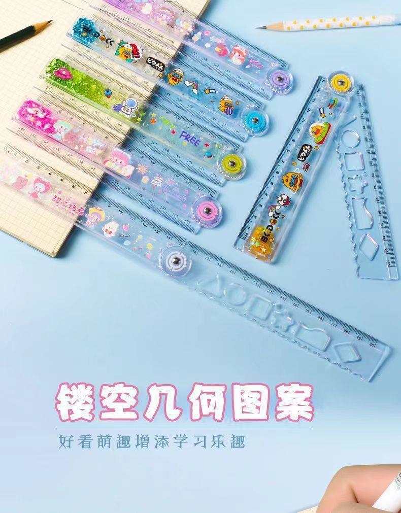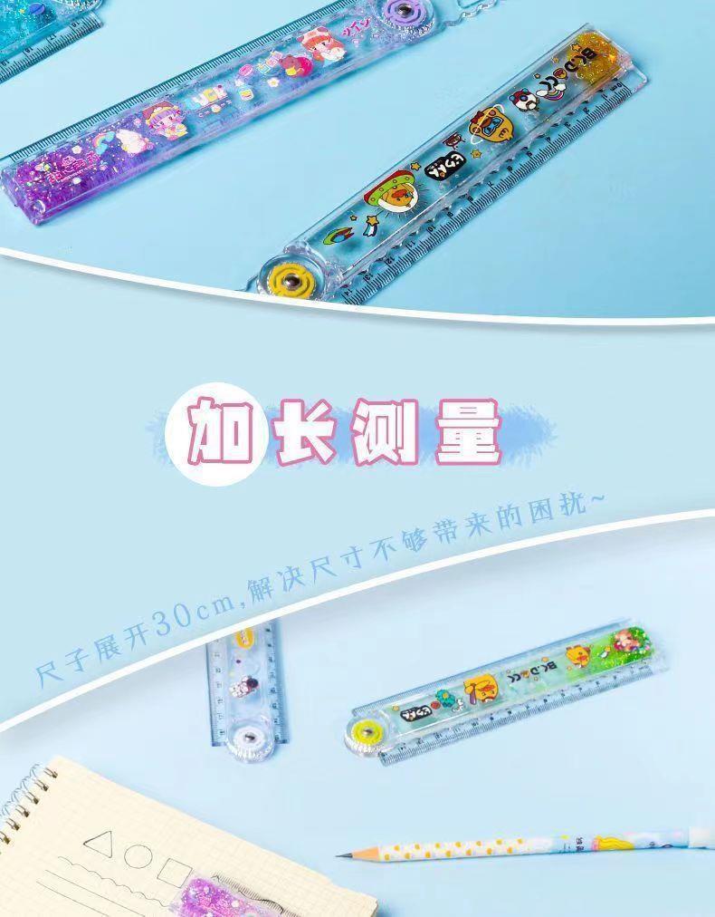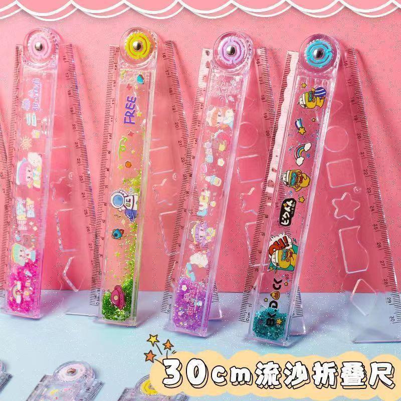 创意可爱流沙折叠尺子小学生透明便携直尺卡通波浪尺儿童镂空格尺