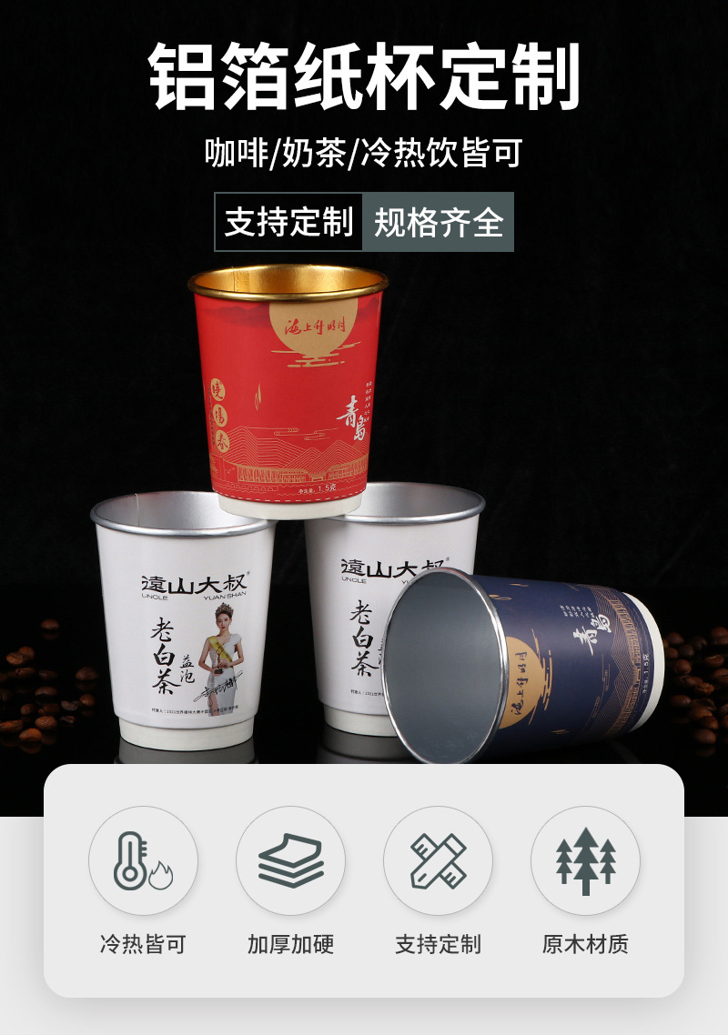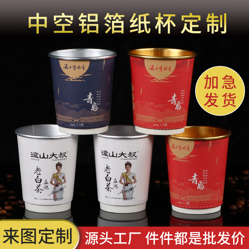 厂家铝箔一次性纸杯定制铝箔金箔茶叶杯子加厚隔热公司会客杯定做