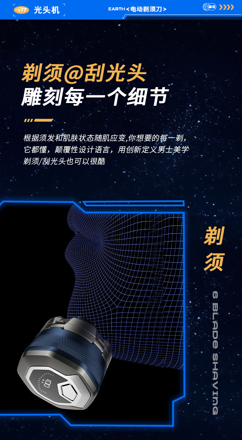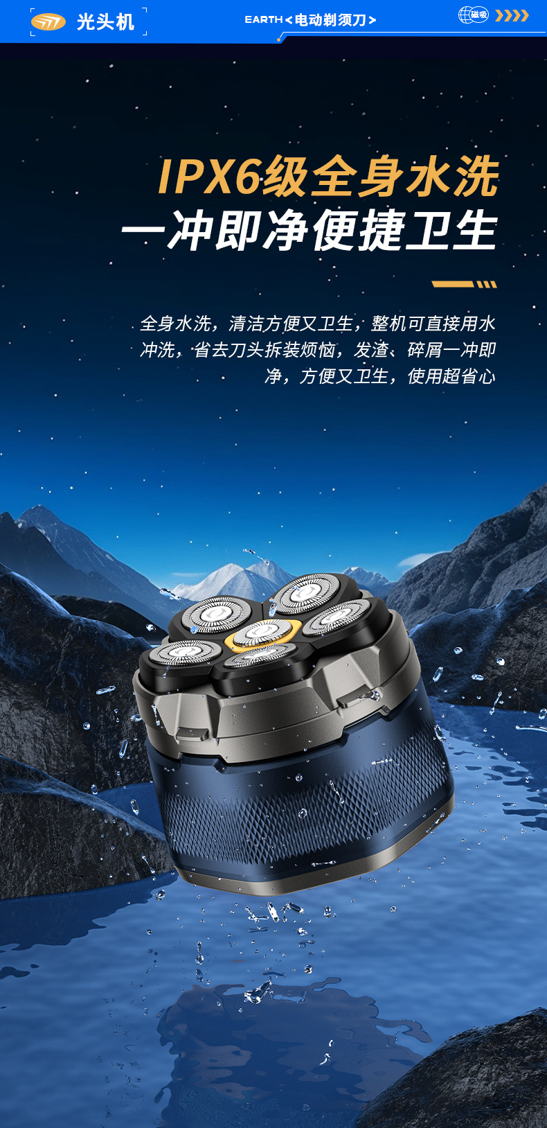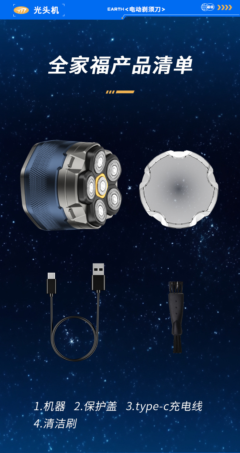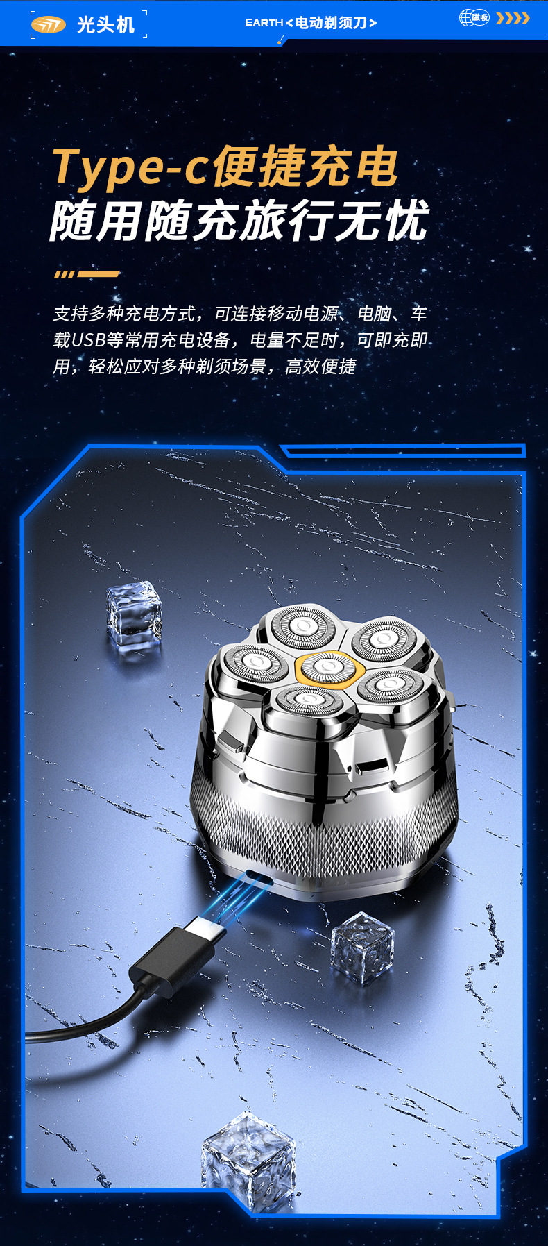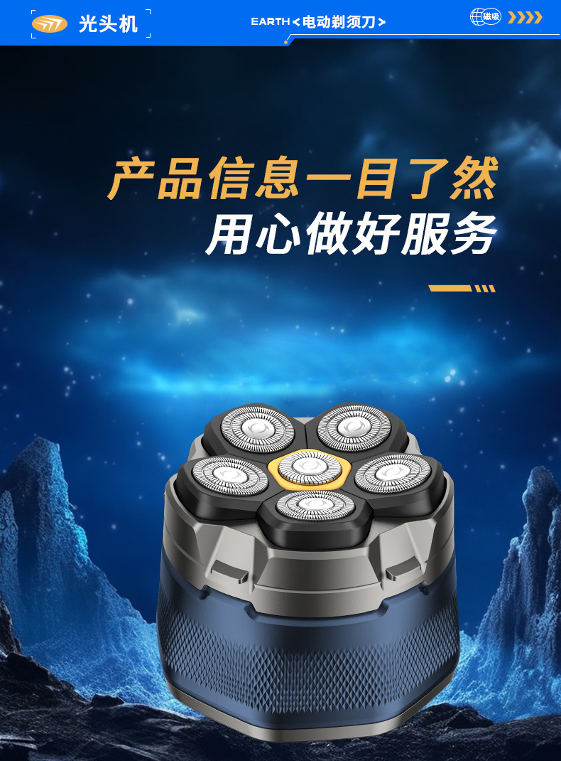 磁吸六刀头刮光头神器全身水洗数显电动剃须刀自助剃光头剃胡须刀