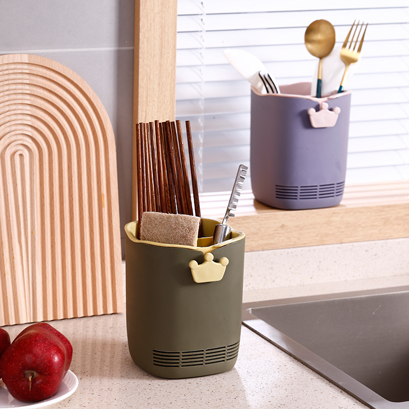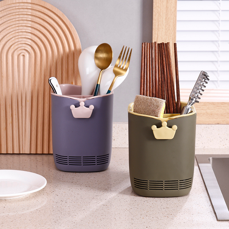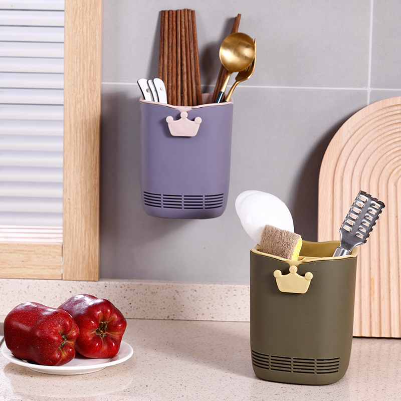 厨房家用创意免打孔壁挂筷子笼厨房刀叉勺筷子篓沥水多功能筷子筒