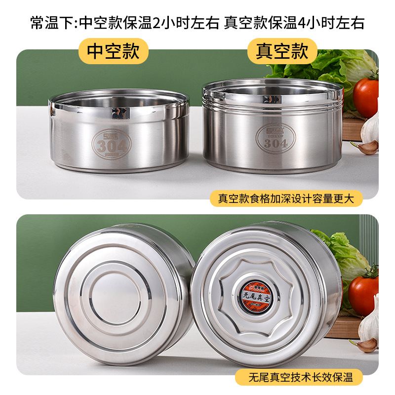 顺家宜批发304不锈钢真空保温多层饭盒 户外野餐密封提锅双层提篮