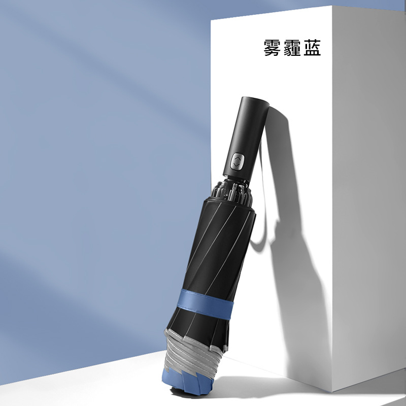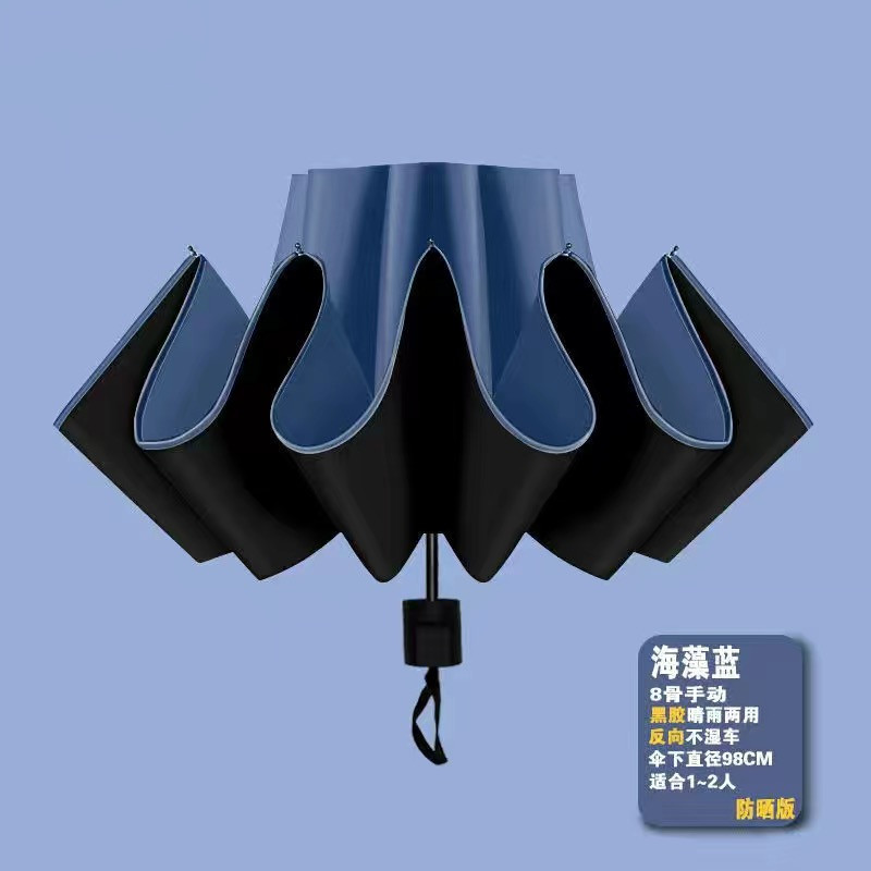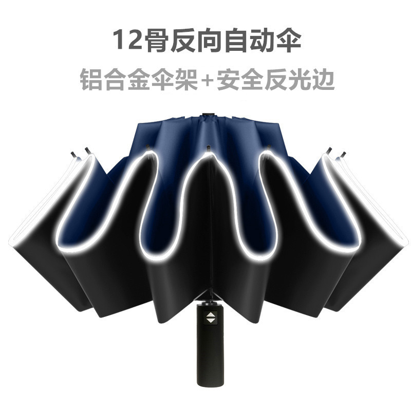 晴雨伞 全自动12骨大号三折黑胶防晒遮阳伞铝骨汽车反向收折叠伞