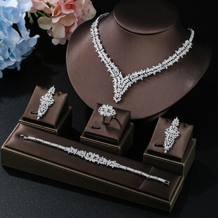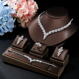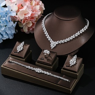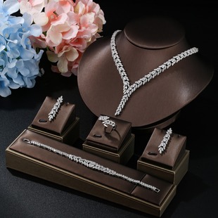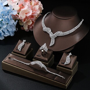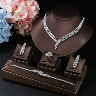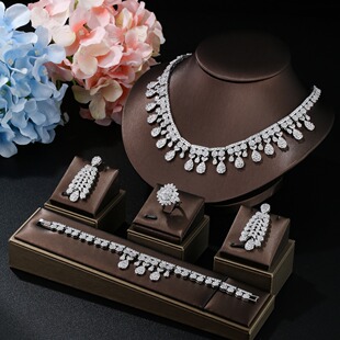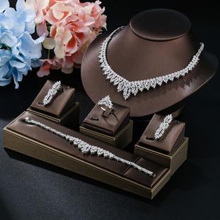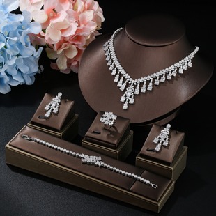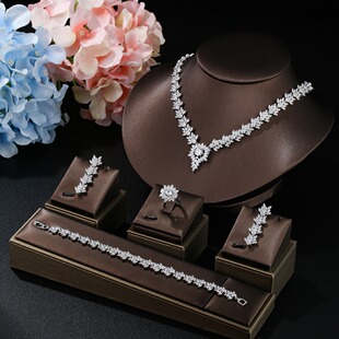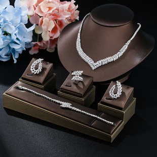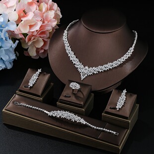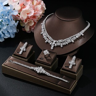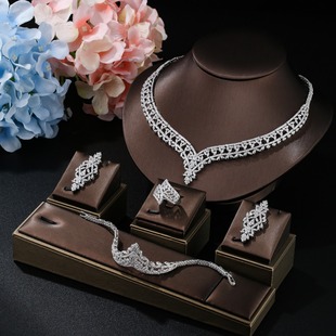 新款四件装新娘套装铜微镶锆石婚礼配饰项链耳环手链戒指