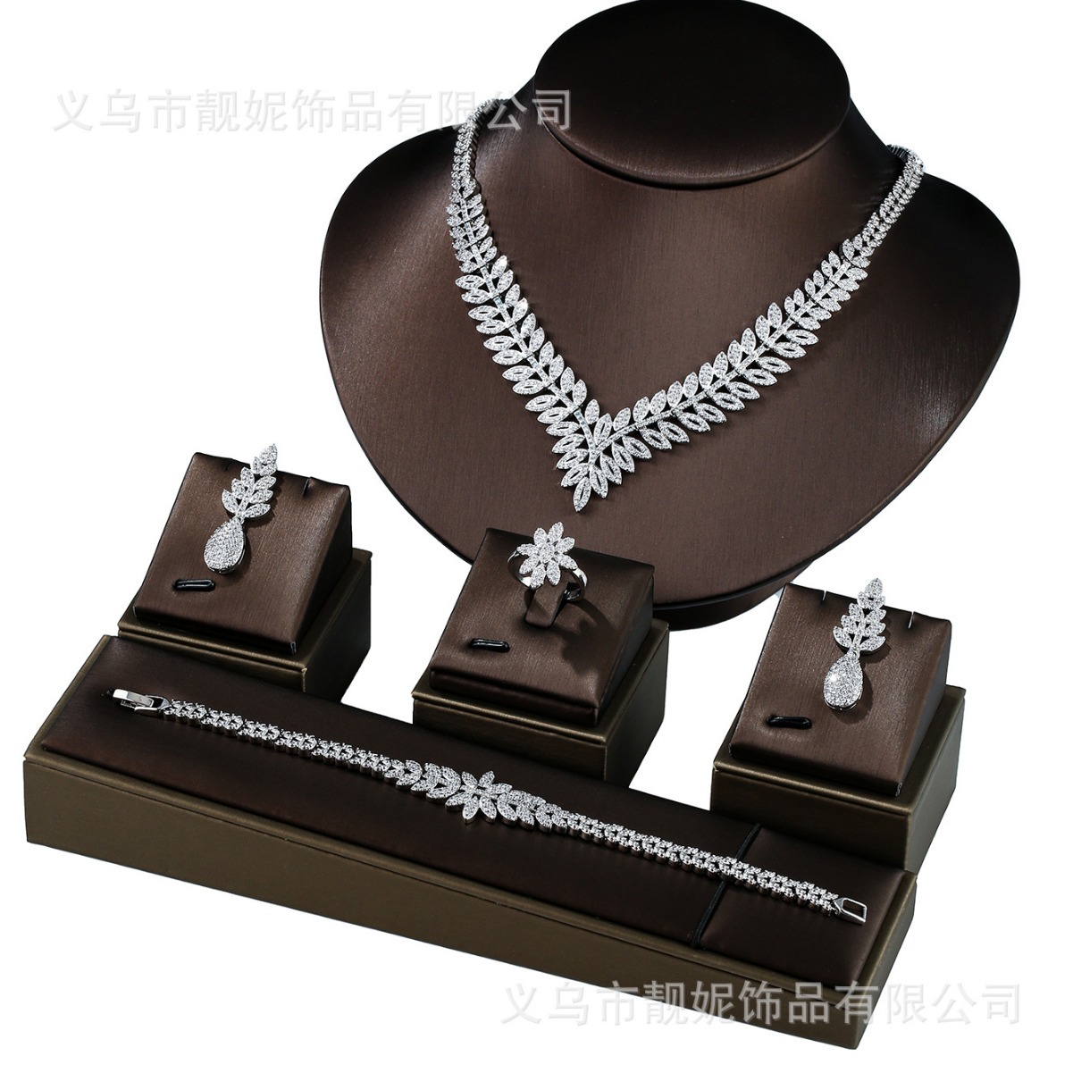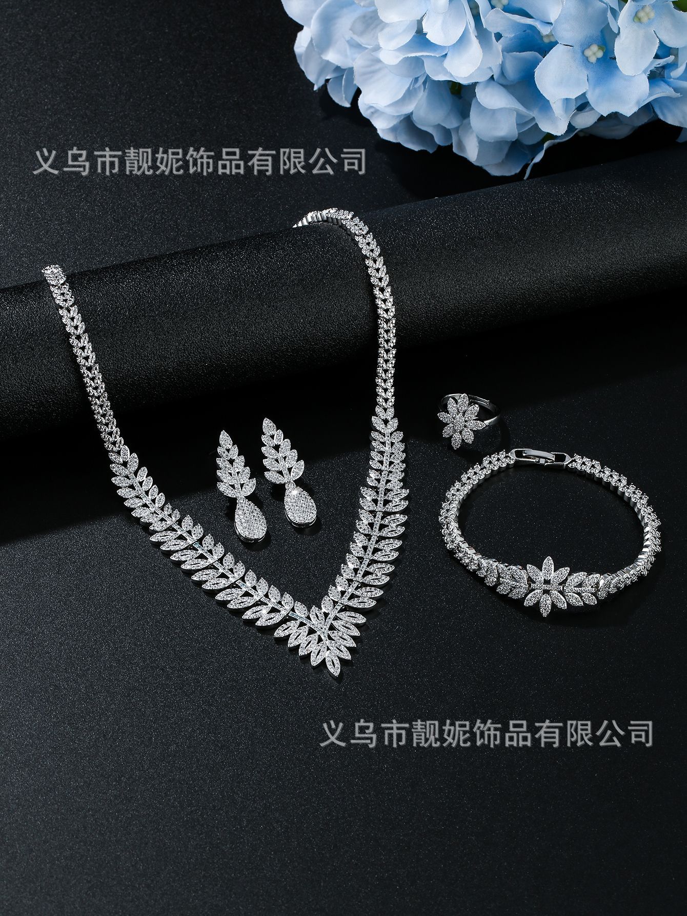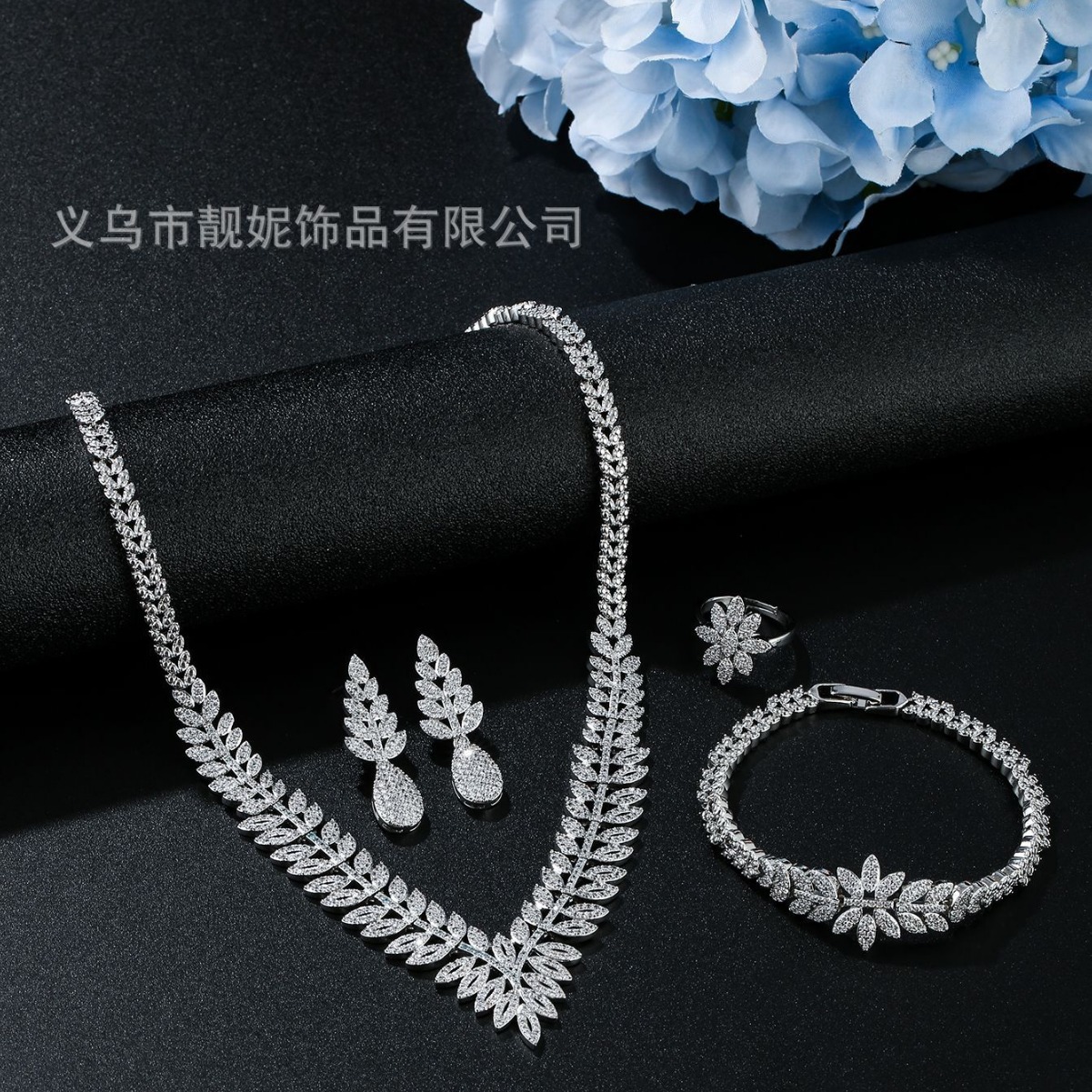 新款四件装新娘套装铜微镶锆石婚礼配饰项链耳环手链戒指