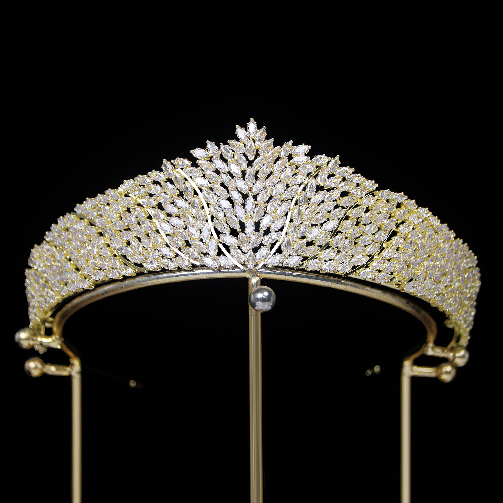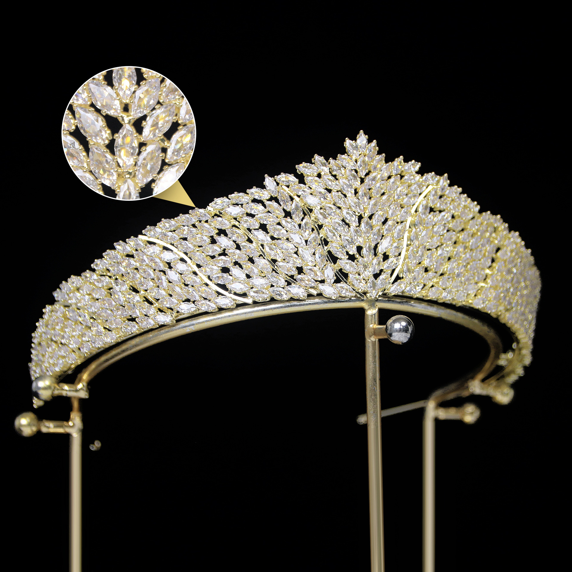 跨境批发新款欧美锆石新娘皇冠头饰金属电镀韩式带钻王冠婚礼发饰
