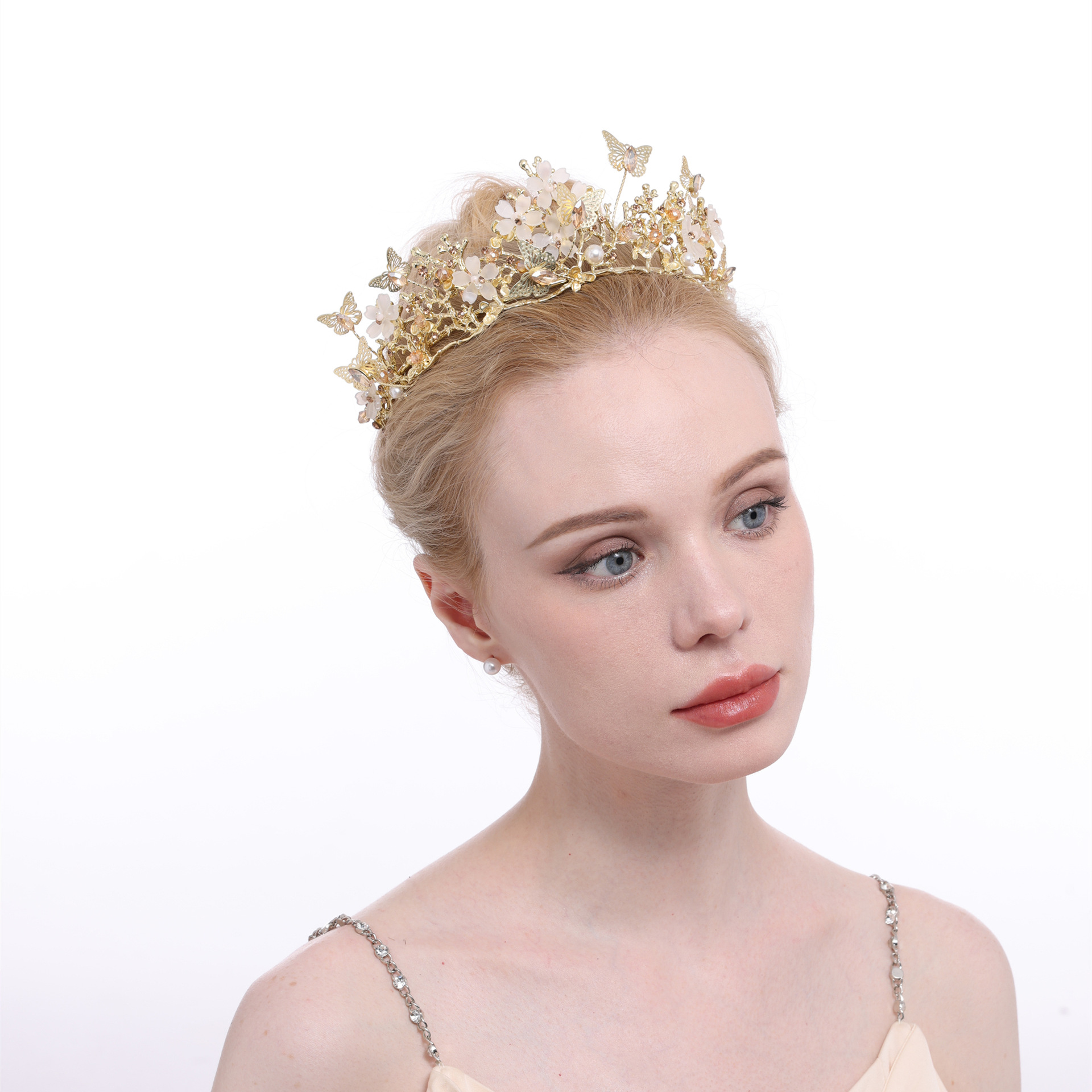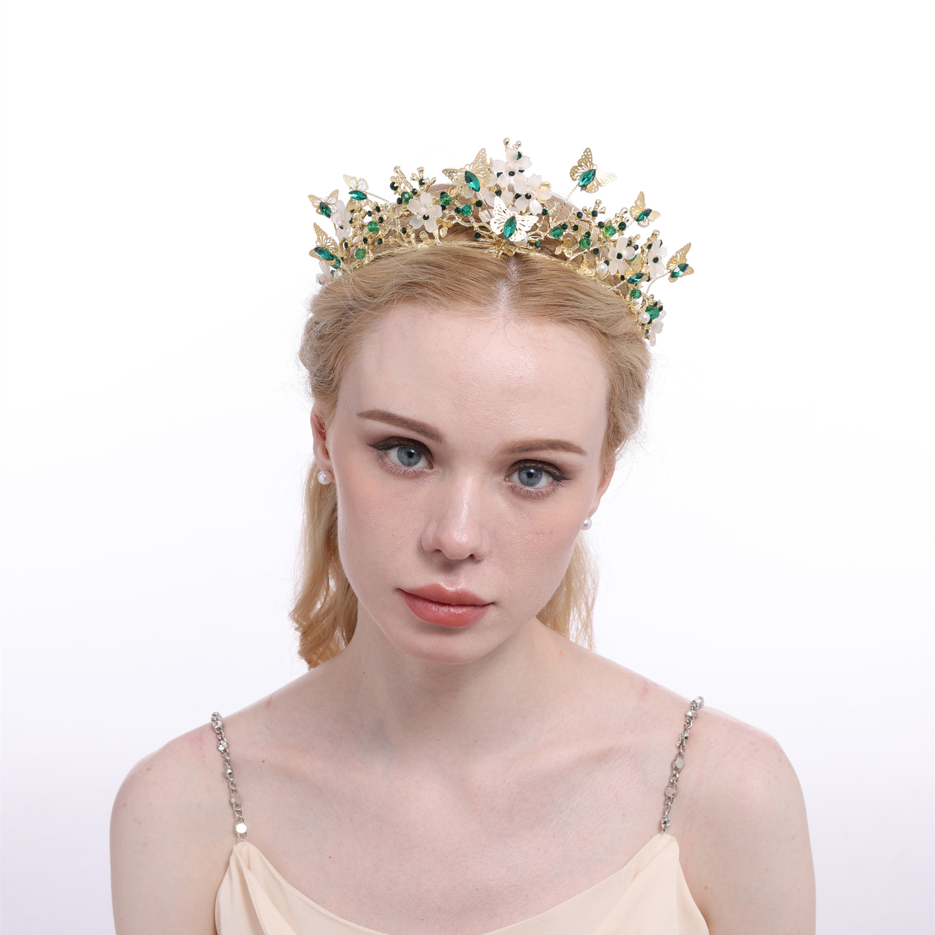合金跨境春季爆款复古新娘皇冠欧美古风电镀发饰手工皇冠花环头饰