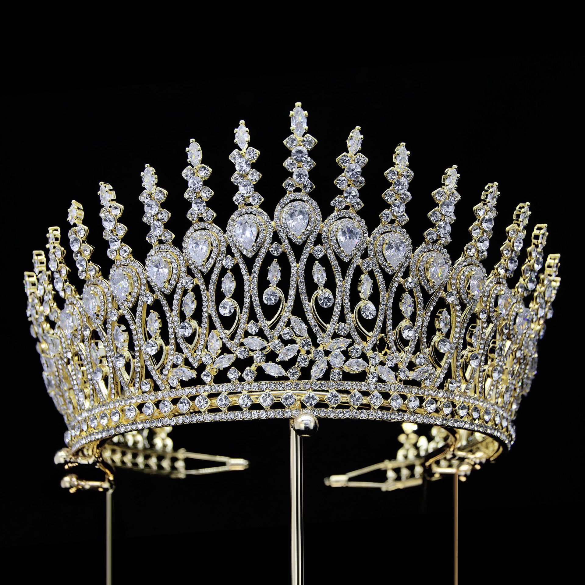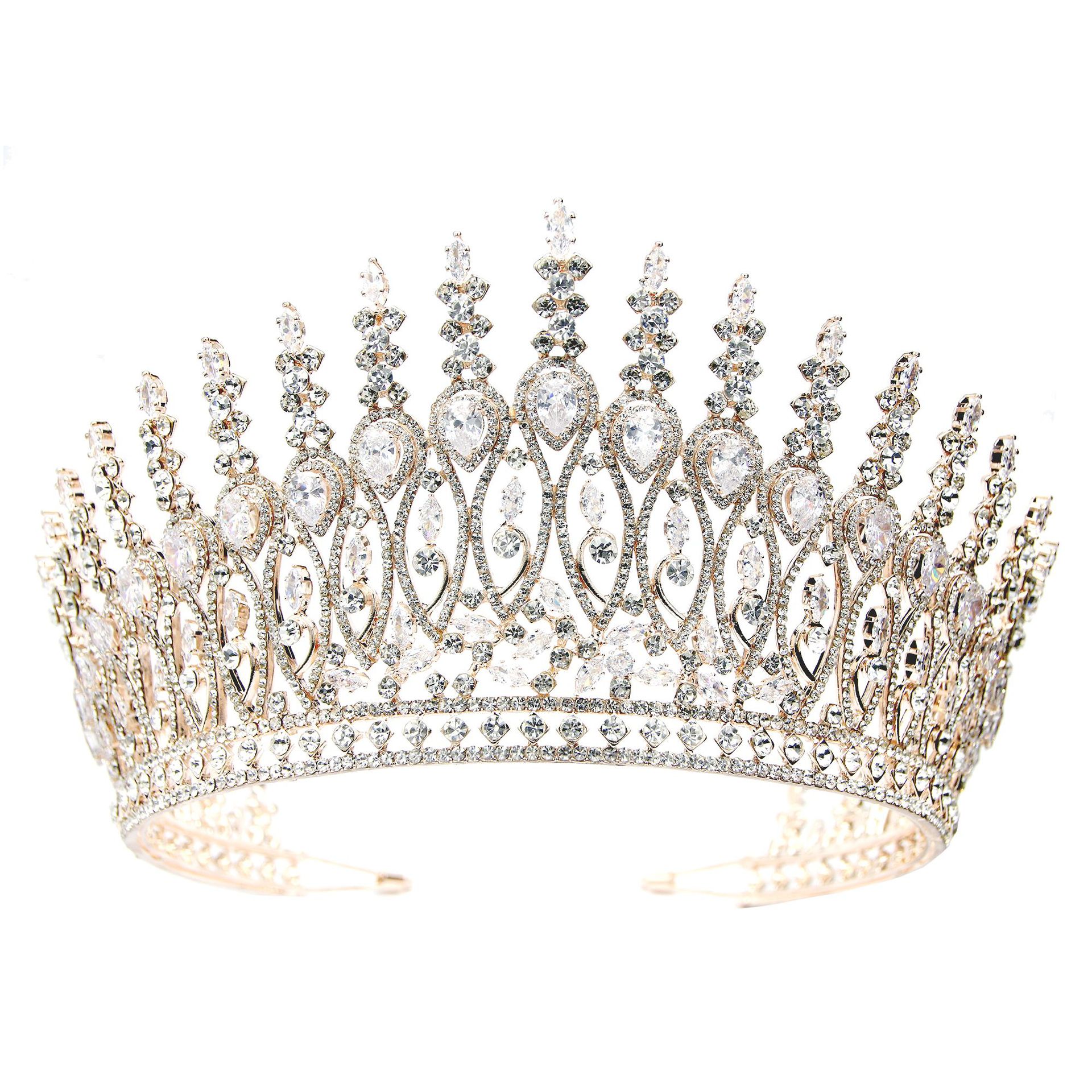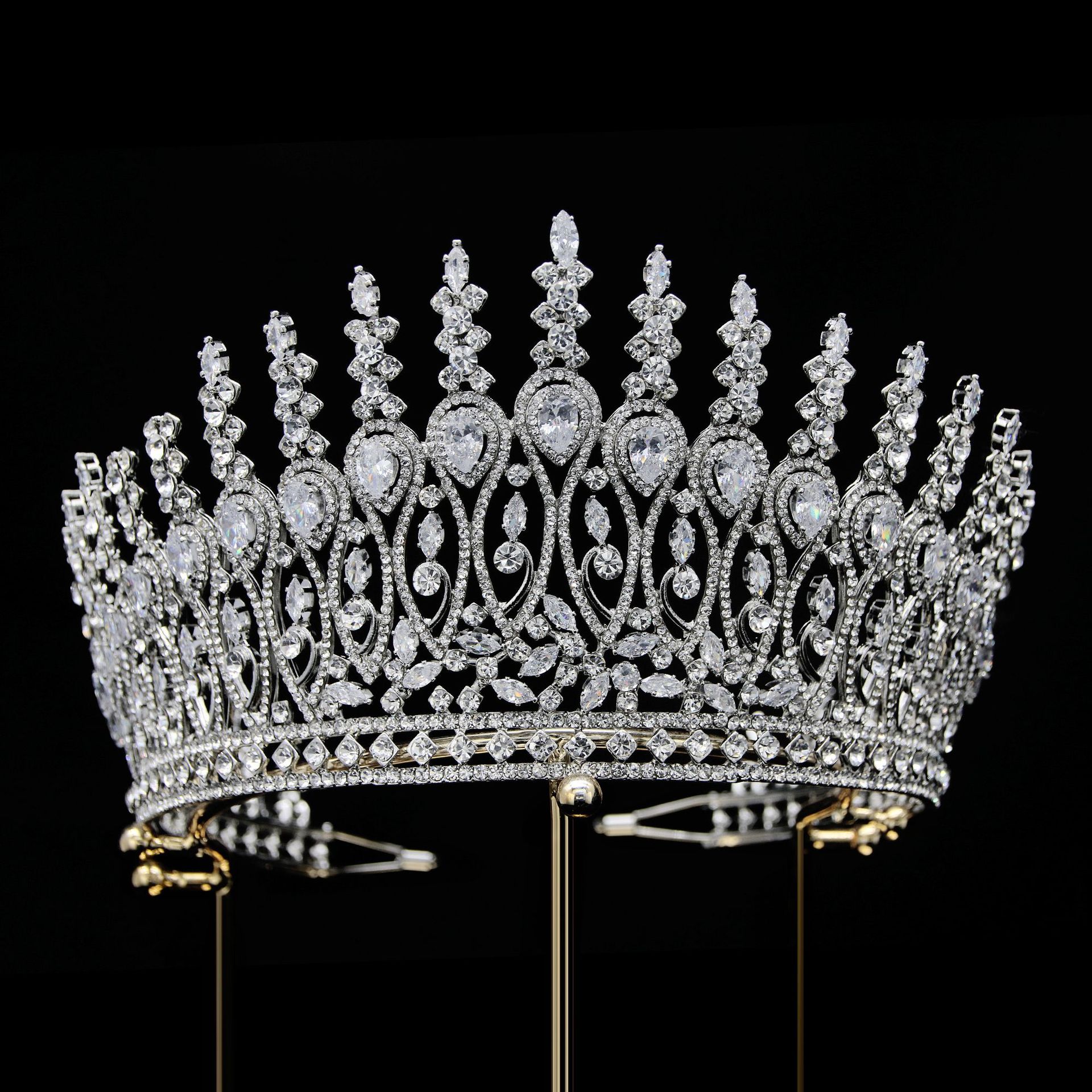 跨境夏季超大号欧美韩国新娘皇冠头饰公主王冠婚礼电镀锆石发饰