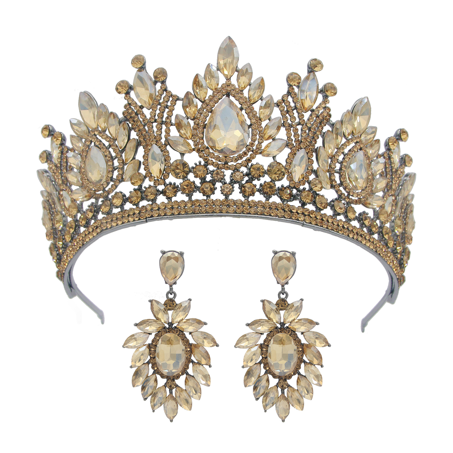 跨境批发巴洛克欧美选美新娘皇冠头饰合金电镀水晶婚礼发箍发饰