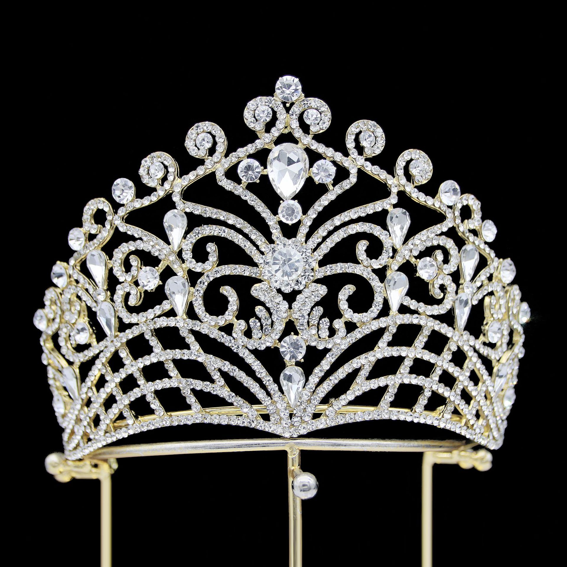 跨境批发巴洛克欧美选美新娘皇冠头饰合金电镀水晶婚礼发箍王冠