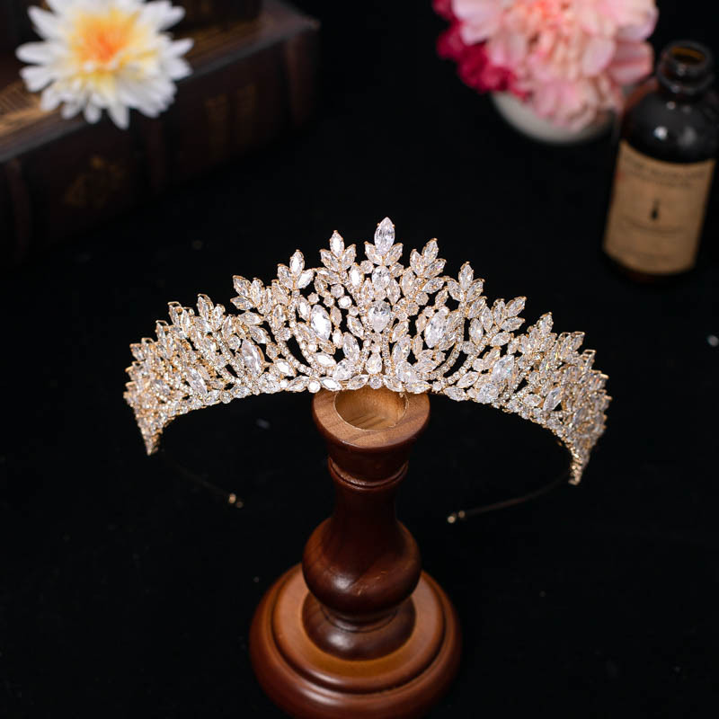 跨境批发新款欧美锆石新娘皇冠头饰金属电镀韩式带钻王冠婚礼发饰