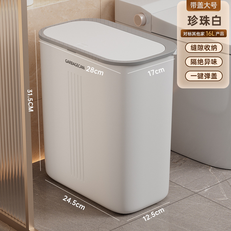 卫生间垃圾桶家用厕所用大号带盖带高颜值盖加厚窄款按压式垃圾桶