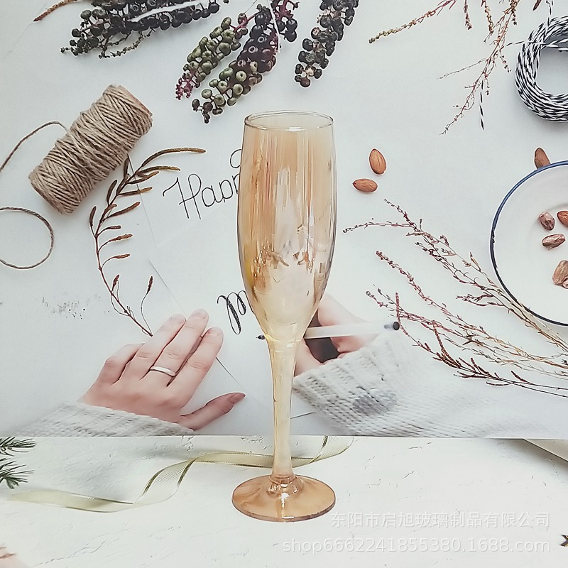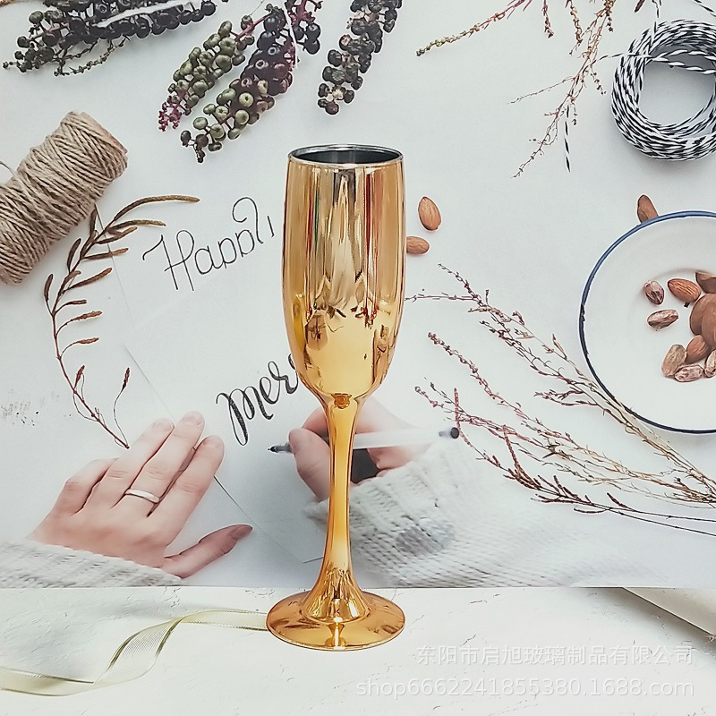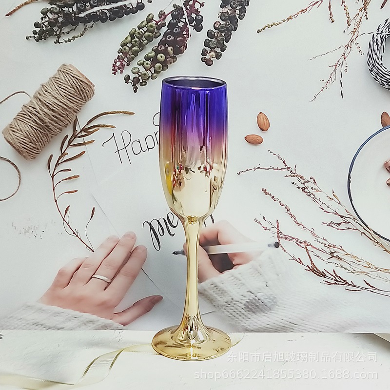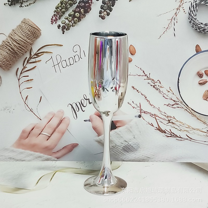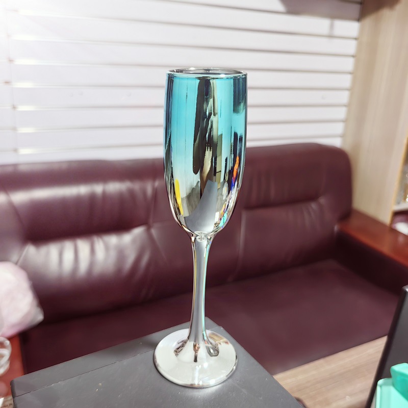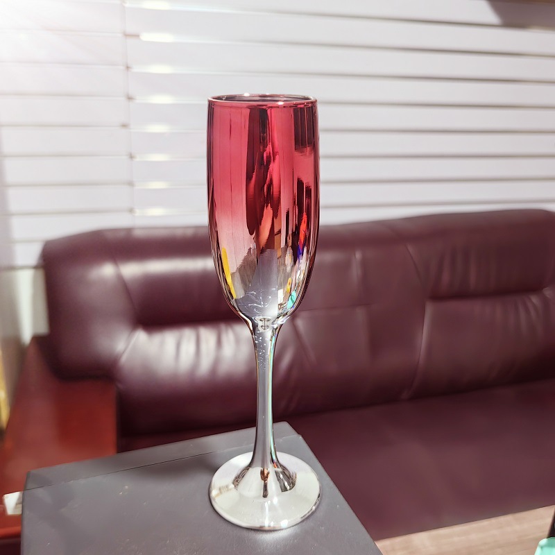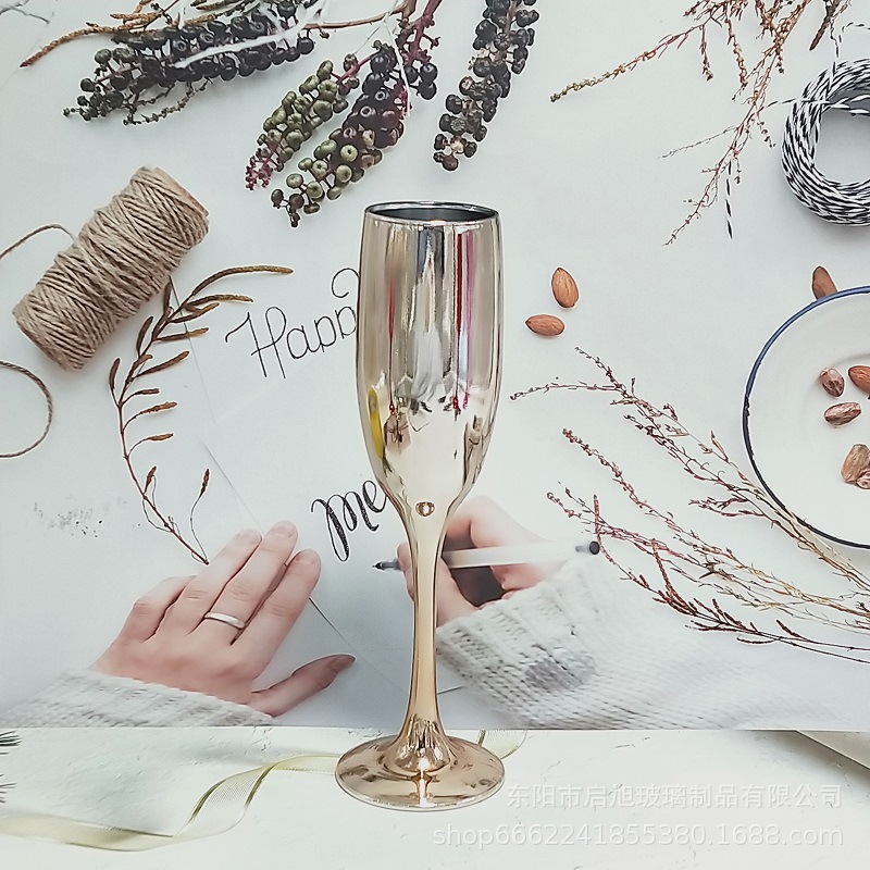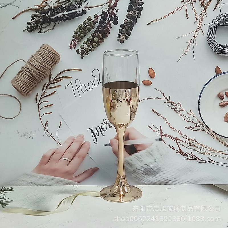厂家直销笛形香槟杯3796电镀工艺品 195ml无铅纳钙玻璃高脚香槟杯