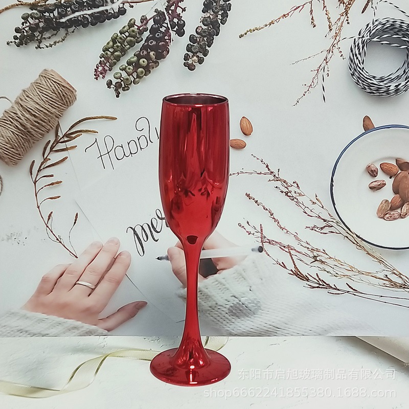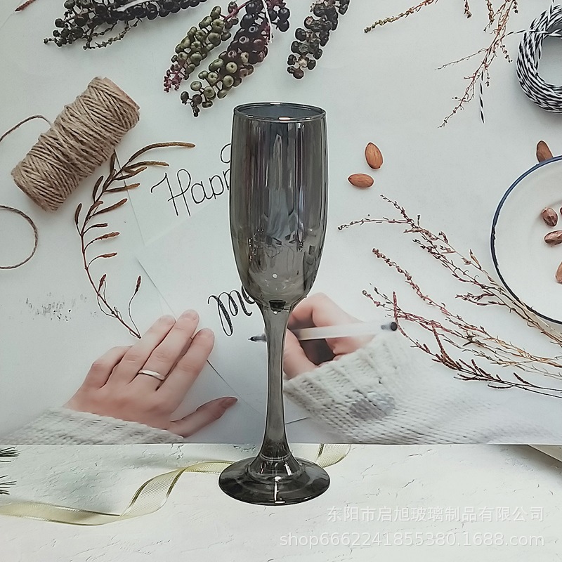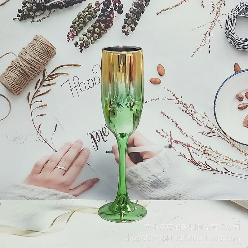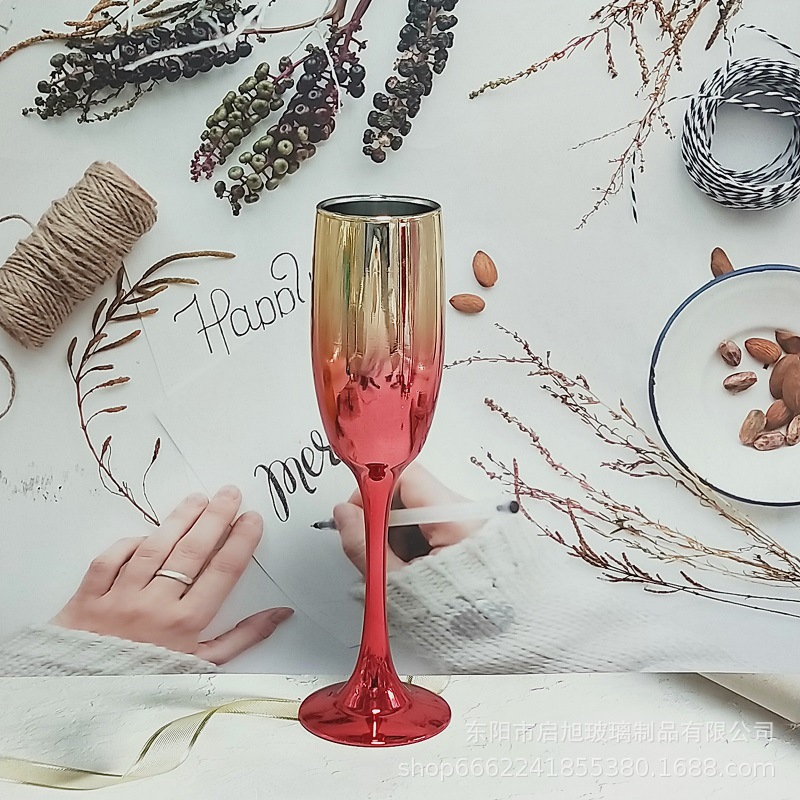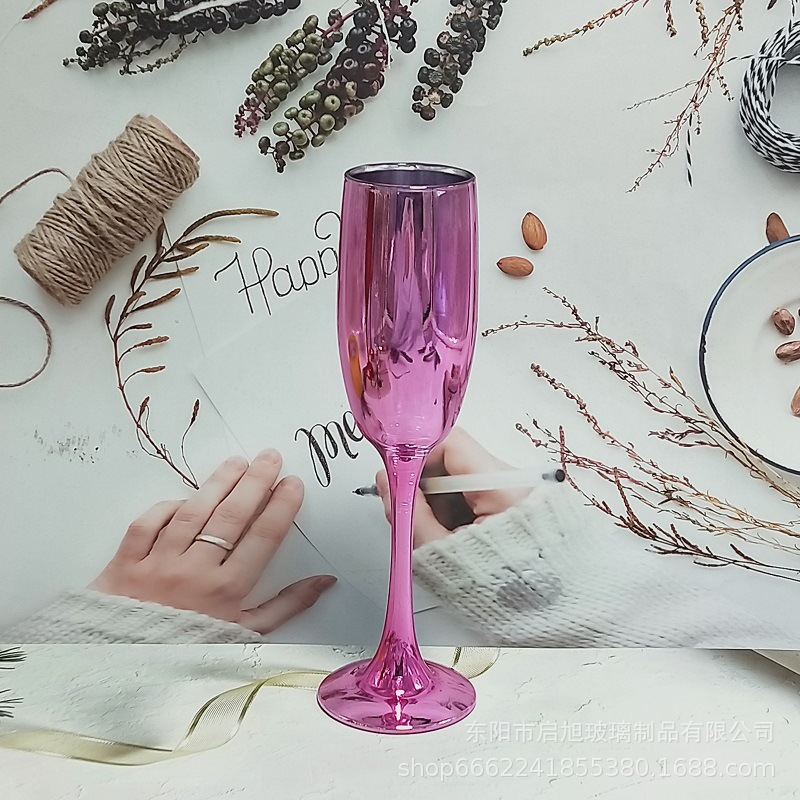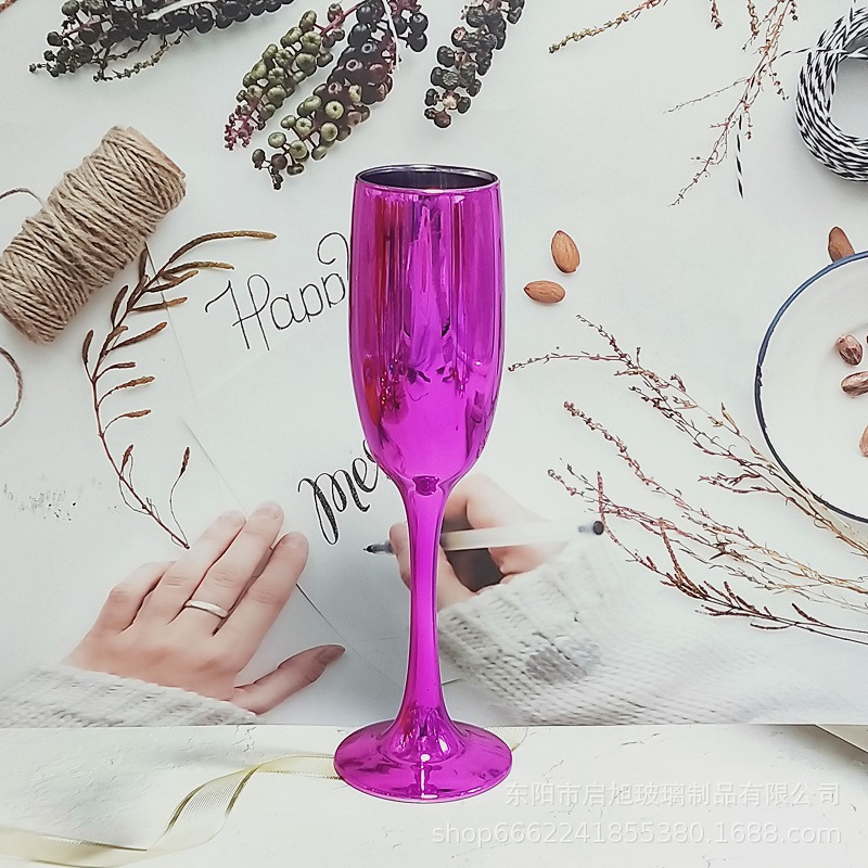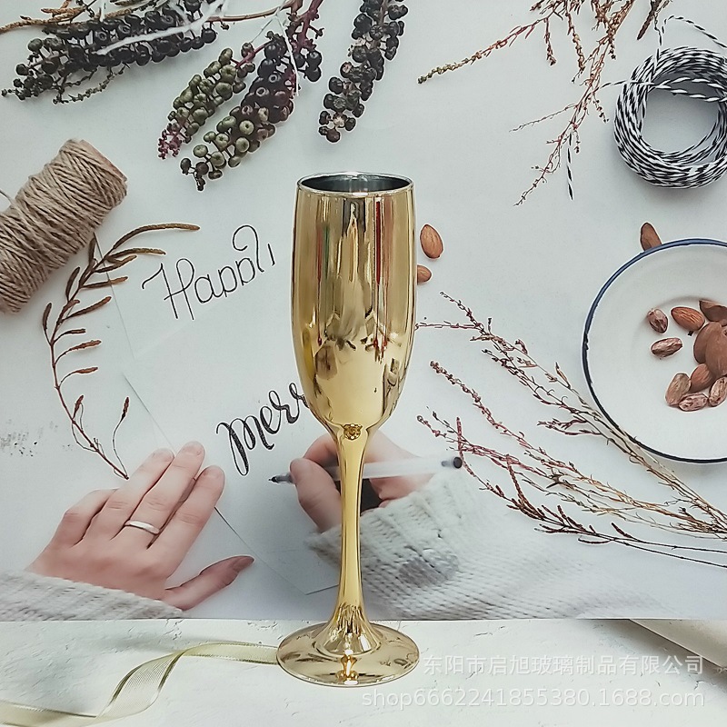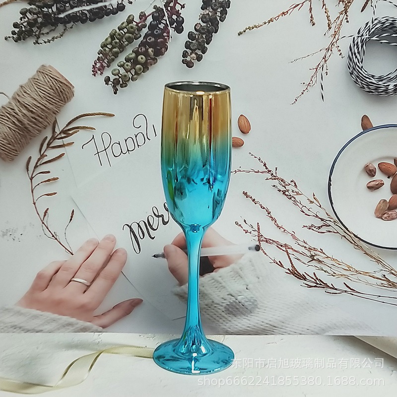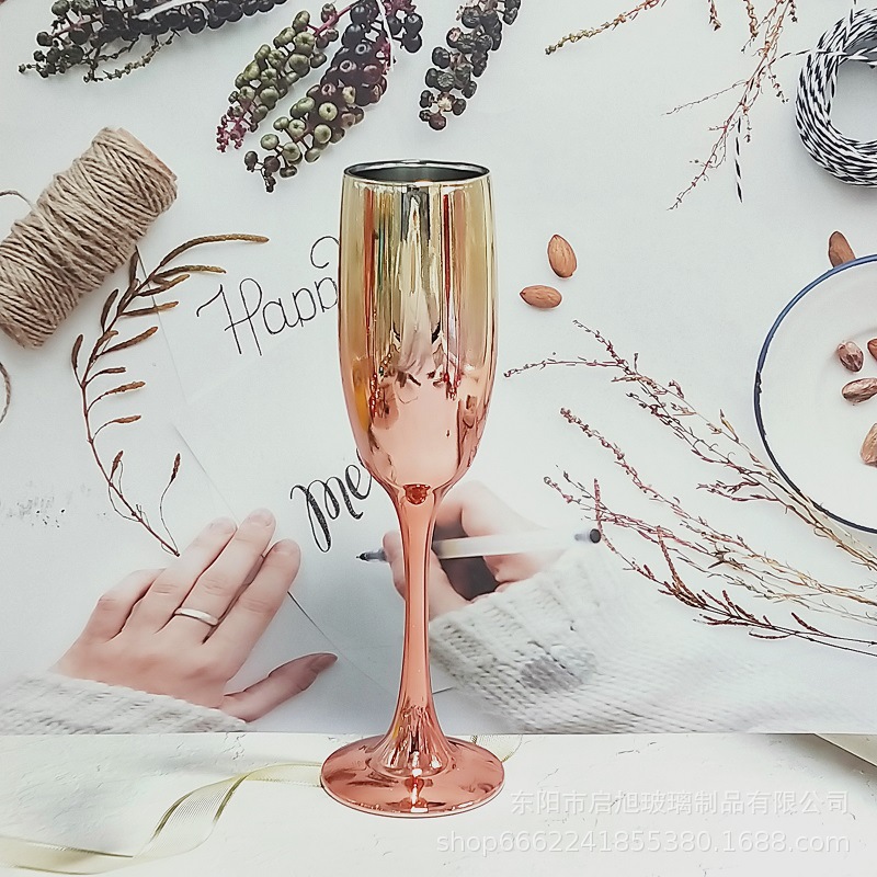 厂家直销笛形香槟杯3796电镀工艺品 195ml无铅纳钙玻璃高脚香槟杯