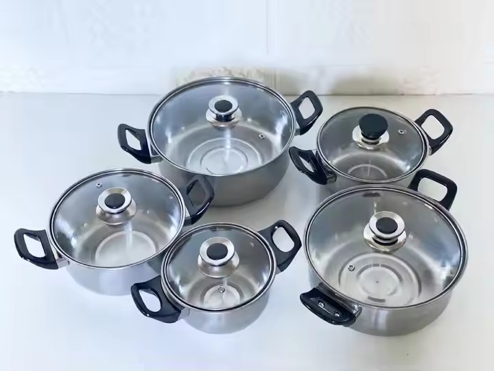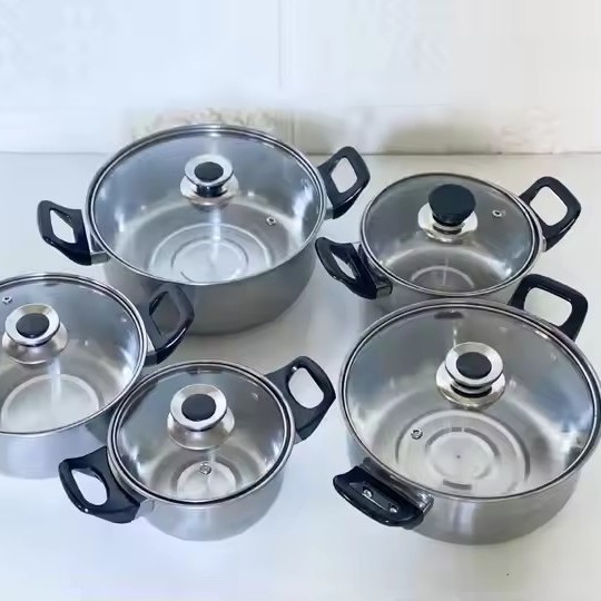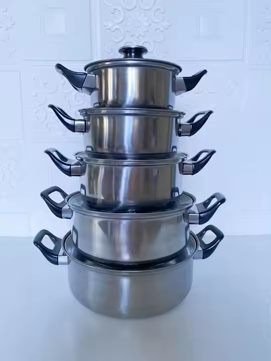 出口不锈钢黑色柄多件套装锅 水壶汤锅奶锅 组合套装锅不锈钢汤锅