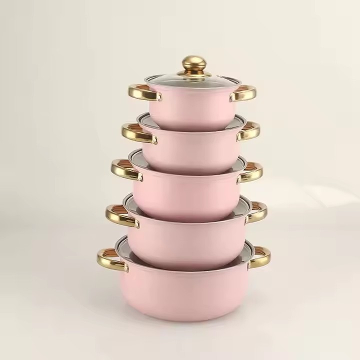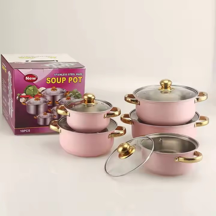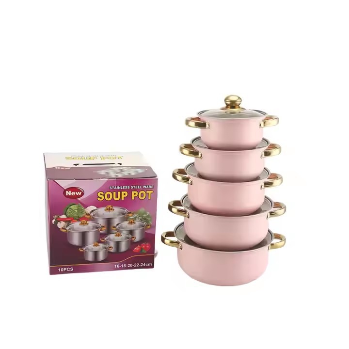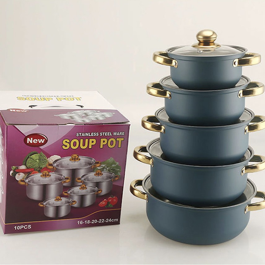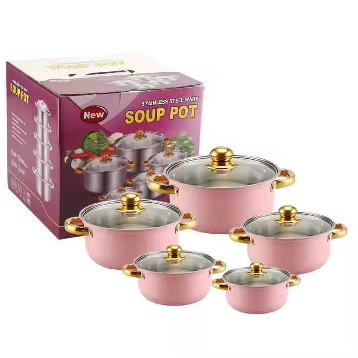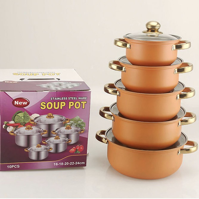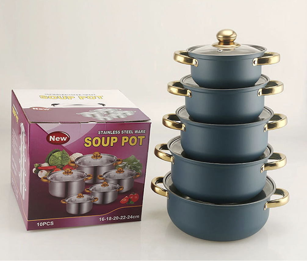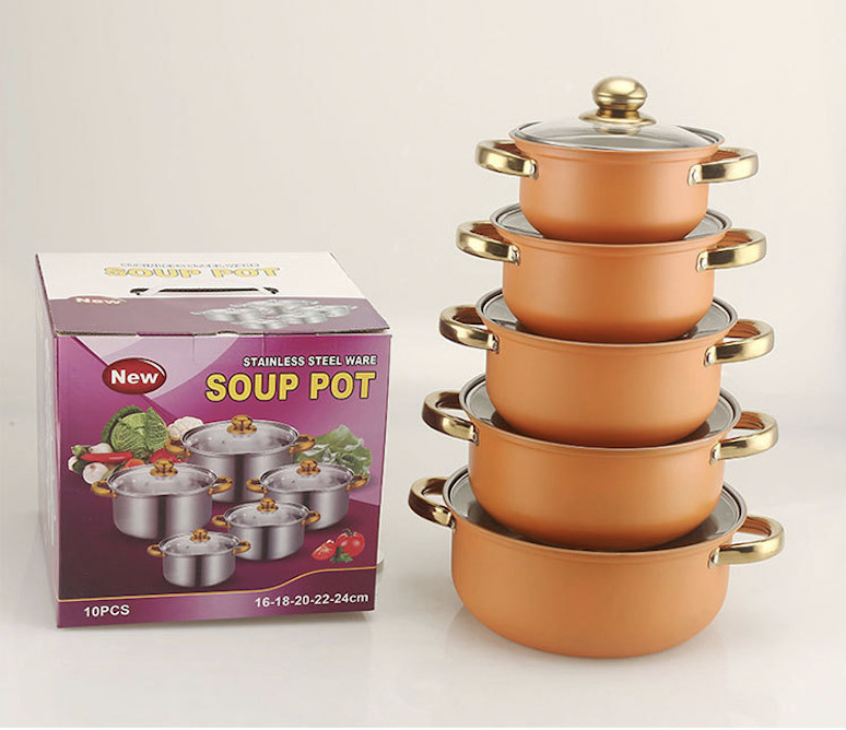 出口跨境套锅不锈钢炫彩16件套锅奶锅火锅不锈钢汤锅蒸锅礼品厨具