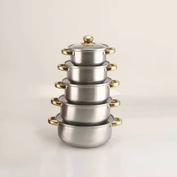 跨境管柄不锈钢10pcs出口套锅 汤锅 奶锅16-18-20-22-24cm 五件套
