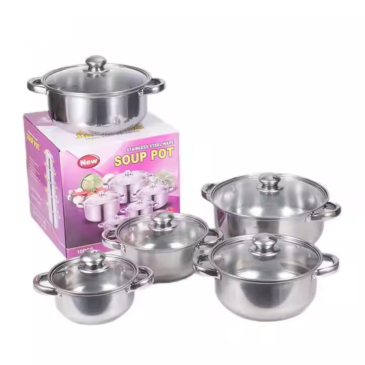 10件套不锈钢炊具套装汤锅汤锅厨房用具彩色圆柄汤锅炊具外贸厨具