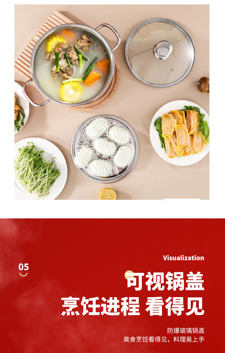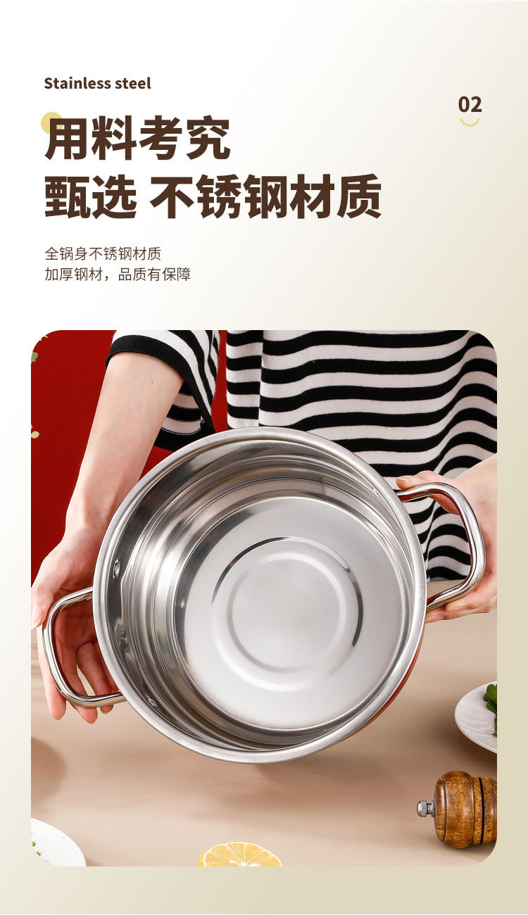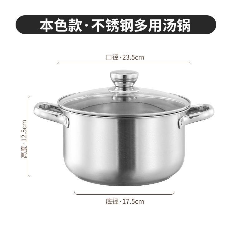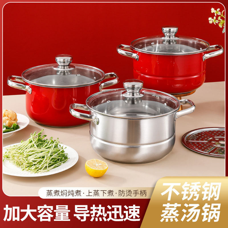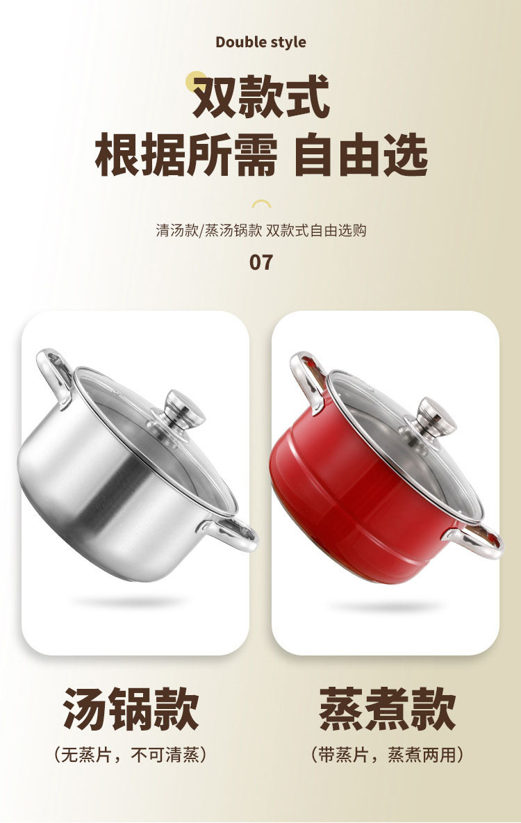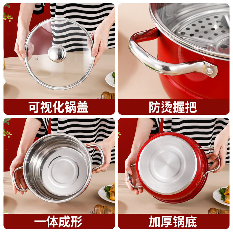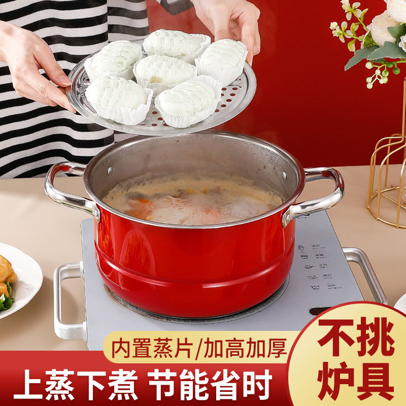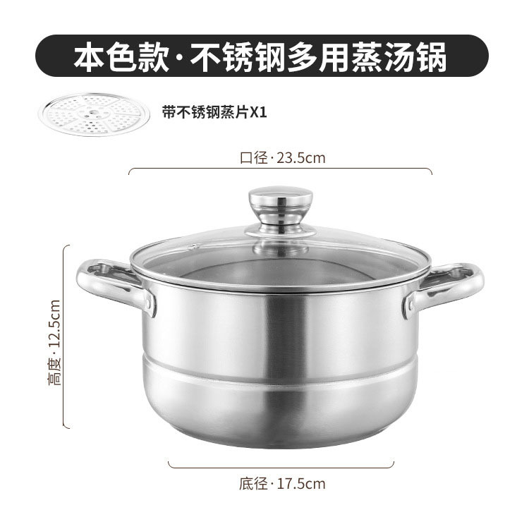 不锈钢汤锅家用带蒸片火锅多功能料理锅棉套煮粥锅通用双柄辅食锅