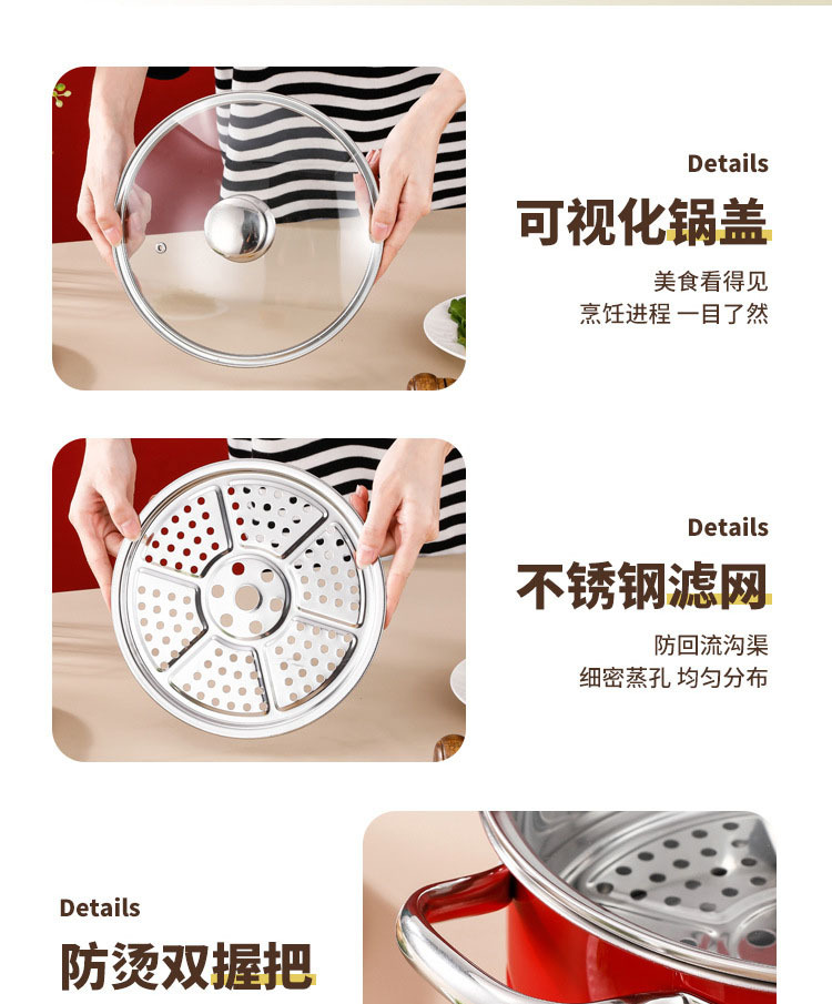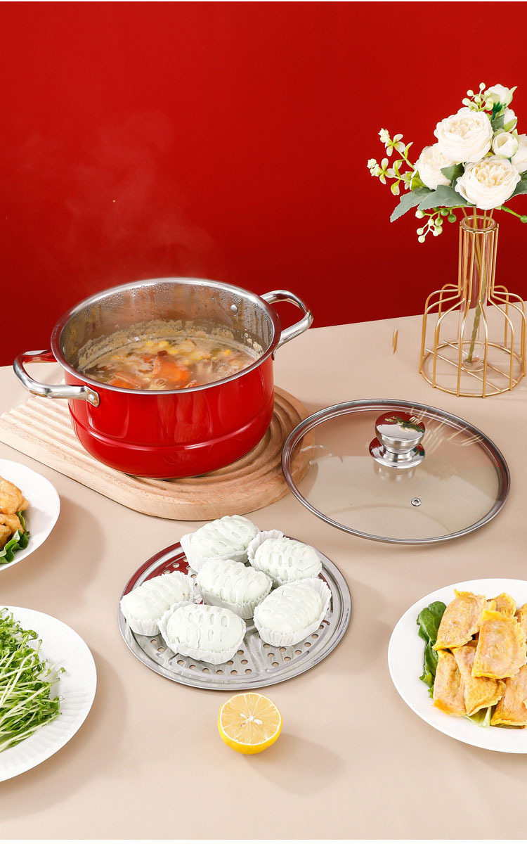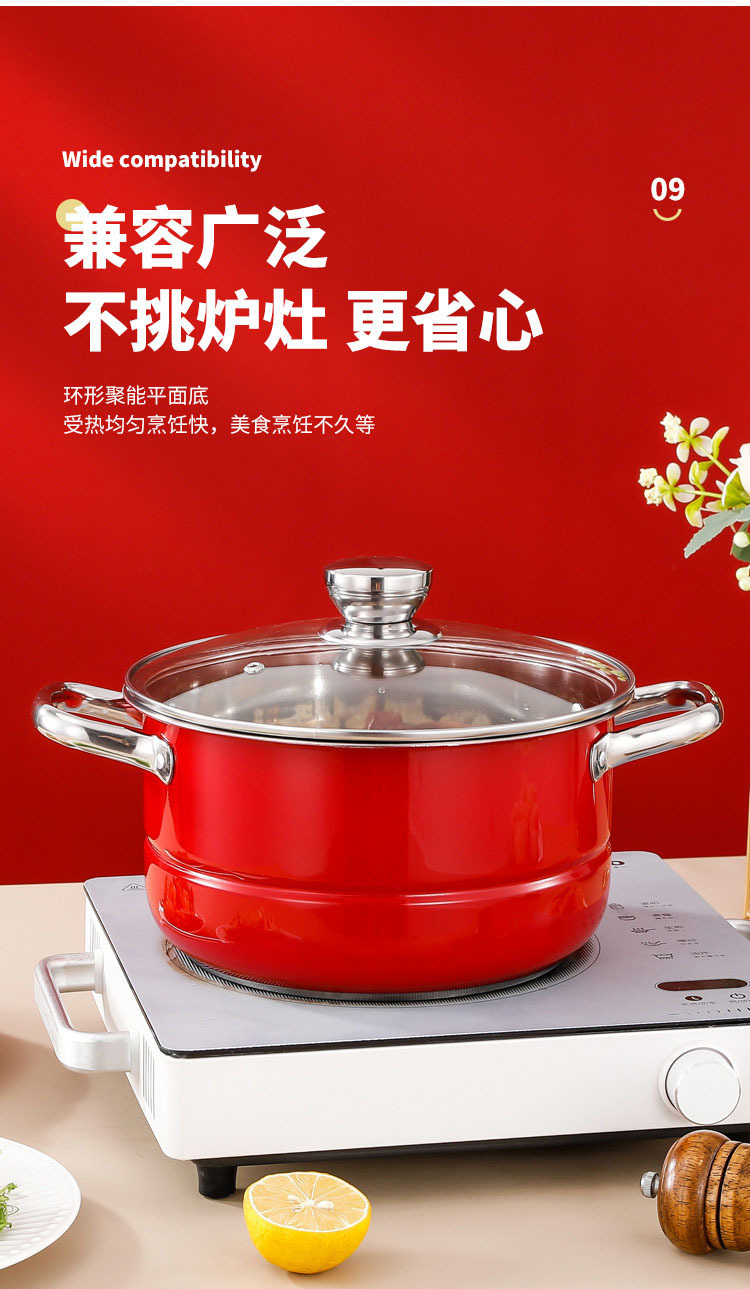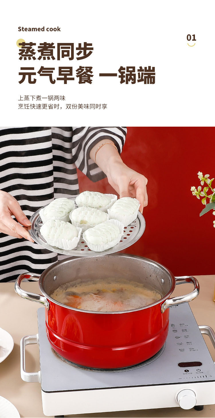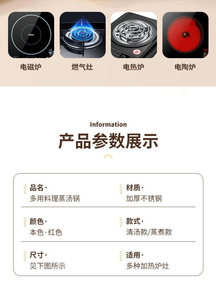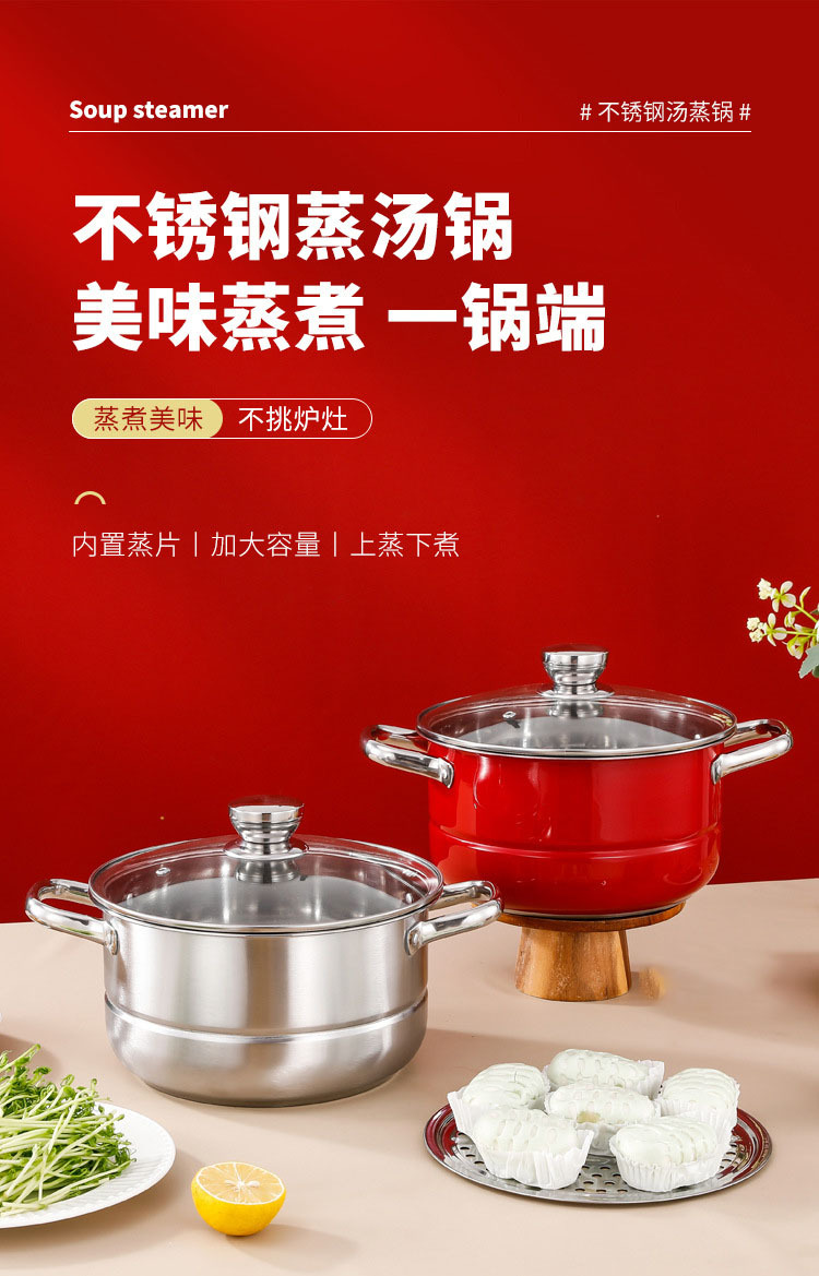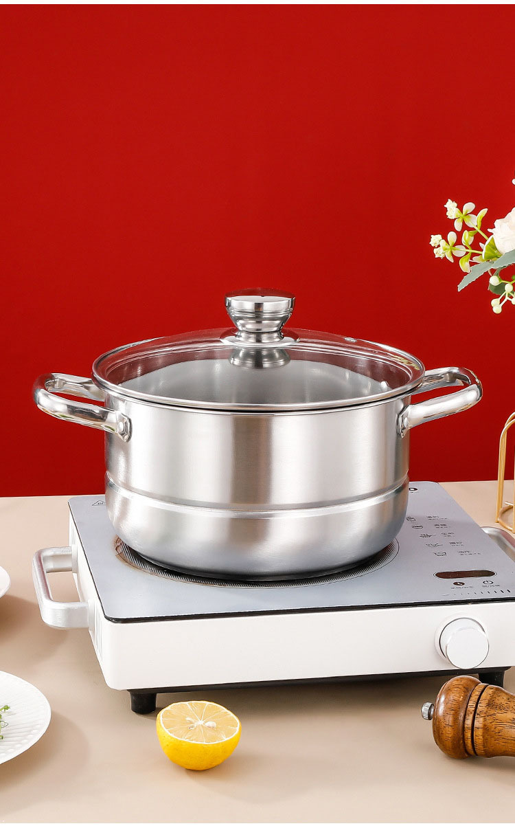 不锈钢汤锅家用带蒸片火锅多功能料理锅棉套煮粥锅通用双柄辅食锅