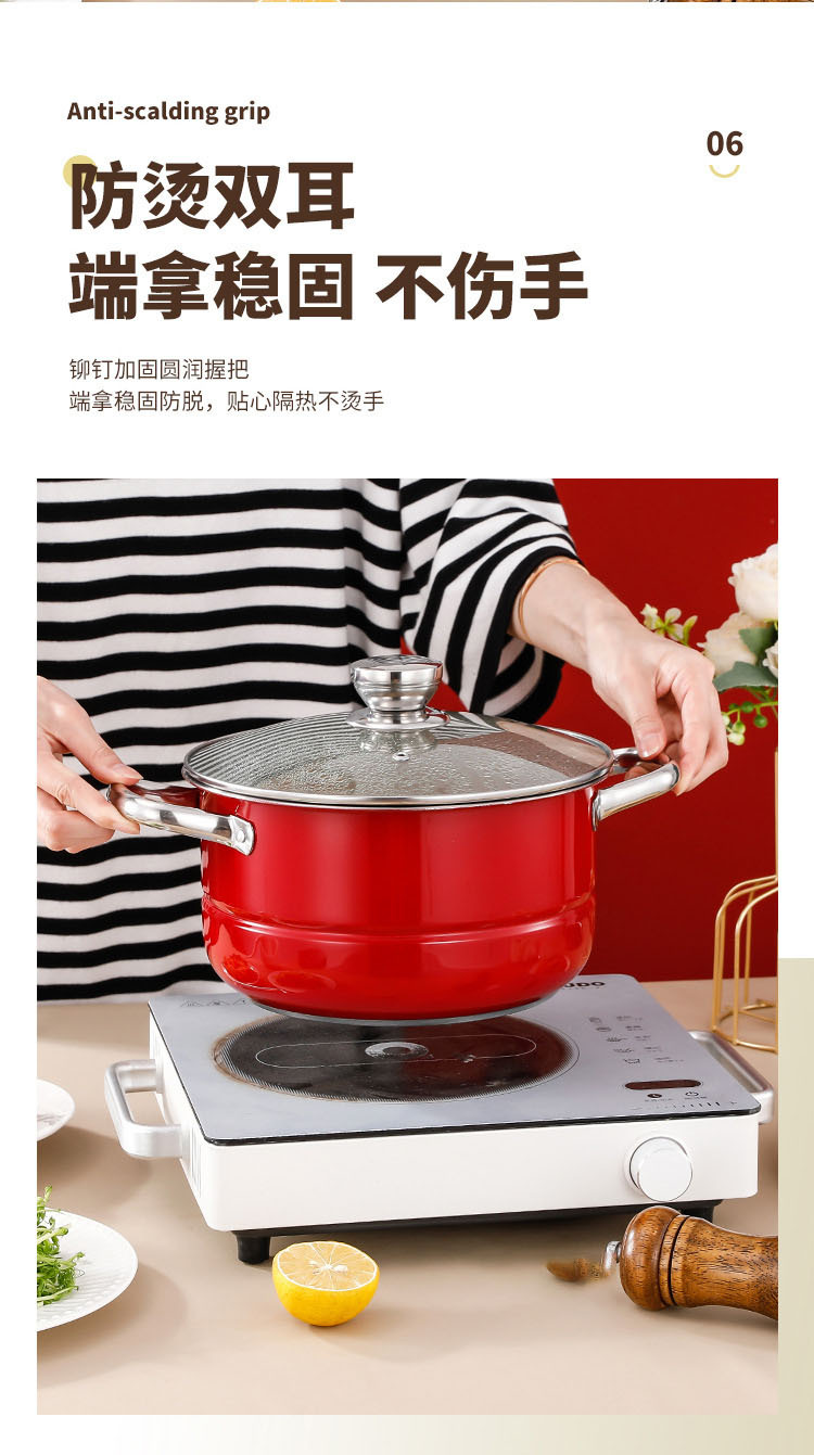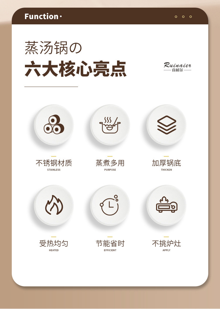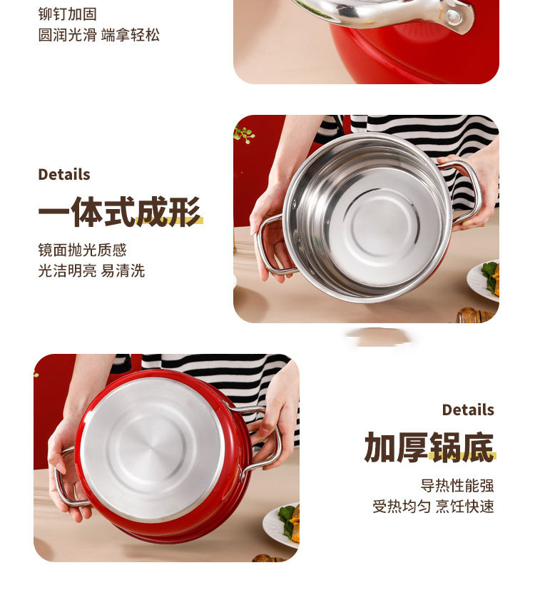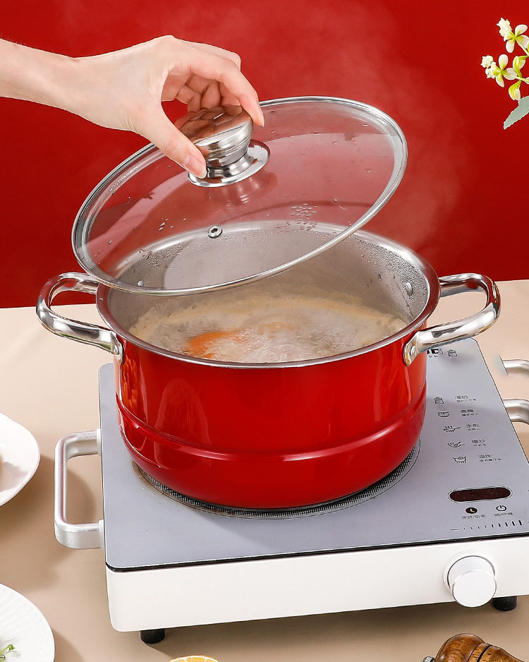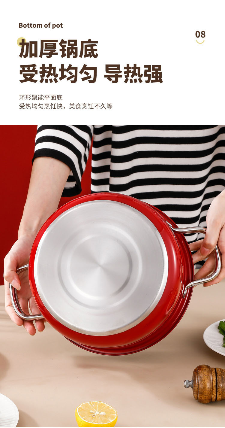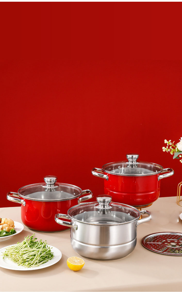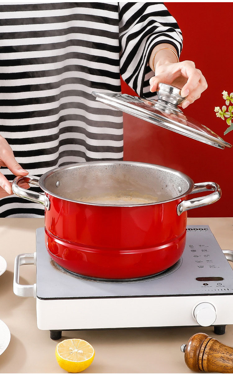不锈钢汤锅家用带蒸片火锅多功能料理锅棉套煮粥锅通用双柄辅食锅
