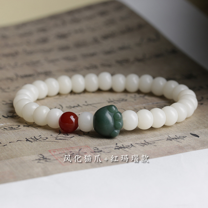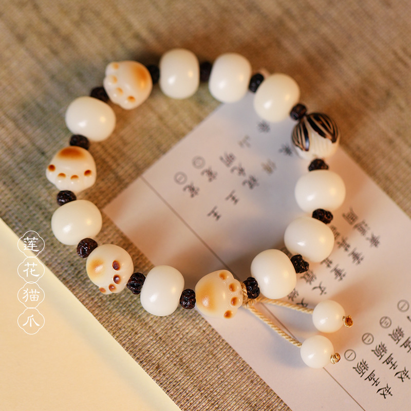 白玉菩提根手串女文玩菩提子佛珠单圈手链情侣小清新炭烧猫爪盘玩