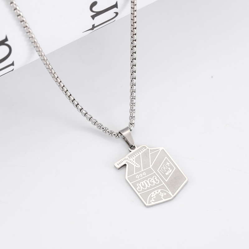 跨境欧美热销男女牛奶瓶不锈钢吊坠钛钢个性饰品项链源头商家批发