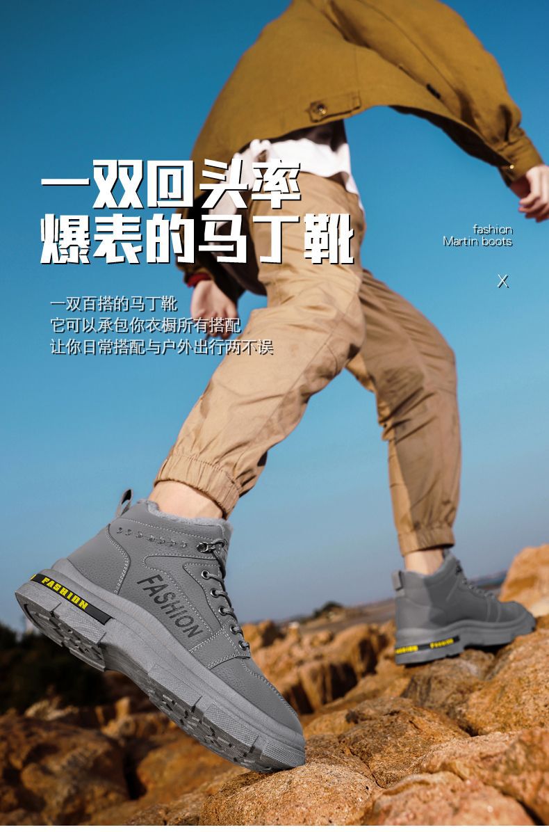 东北棉鞋男士冬季防滑加绒保暖加厚雪地靴男款高帮工装劳保马丁靴