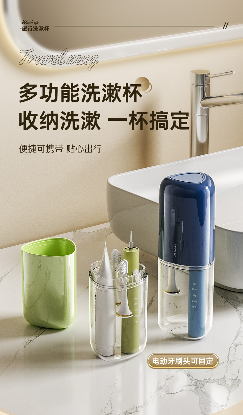 批发新款旅行洗漱杯情侣牙刷漱口杯透明牙刷盒便携式牙具收纳杯