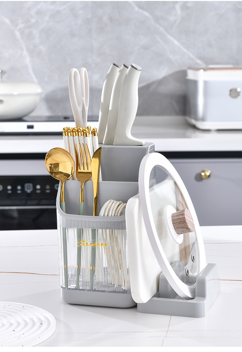 厨房多功能置物架筷子筒台面砧板架刀具收纳架锅盖架菜板架筷笼